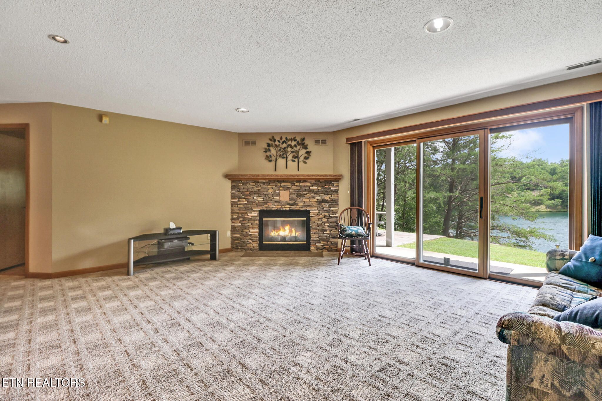 This well maintained basement ranch on Lake Glastowbury offers 1,377 sq ft on the main floor and an additional 927 sq ft of finished space on the lower level. Each level has its own natural gas furnace and each own hot water heater and a new roof in 2022. New windows and doors in back of the house. As you enter, you're welcomed by a spacious great room featuring a corner natural gas fireplace operated by remote and floor-to-ceiling windows that showcase breathtaking views of Lake Glastowbury. Step outside onto the wraparound deck and enjoy the serenity of lakefront living. A charming 21 x 12 three-season room features a tongue-and-groove ceiling and plenty of windows, making it the perfect space to relax. The MAIN LEVEL includes a primary suite with a walk-in closet, a luxurious soaker tub, and a separate walk-in shower. The kitchen is outfitted with abundant cabinetry with pull-outs, a JennAir electric stove, and a dining area. A large pantry and a combined half bath/laundry room add convenience. A new furnace was installed on the main level in 2022. DOWNSTAIRS, the walkout lower level offers floor-to-ceiling windows in the living area, a second corner fireplace, two bedrooms, a full bath, a kitchen, and a spacious storage room. The layout is ideal for multi-generational living or guests. A large workroom/storage or shop area is available under the three-season room. The current owner added a wall between the great room and kitchen on the main level which can be removed to create a more open-concept layout. Dock has been recently updated. Don't miss this great opportunity to enjoy lakefront living on Lake Glastowbury.