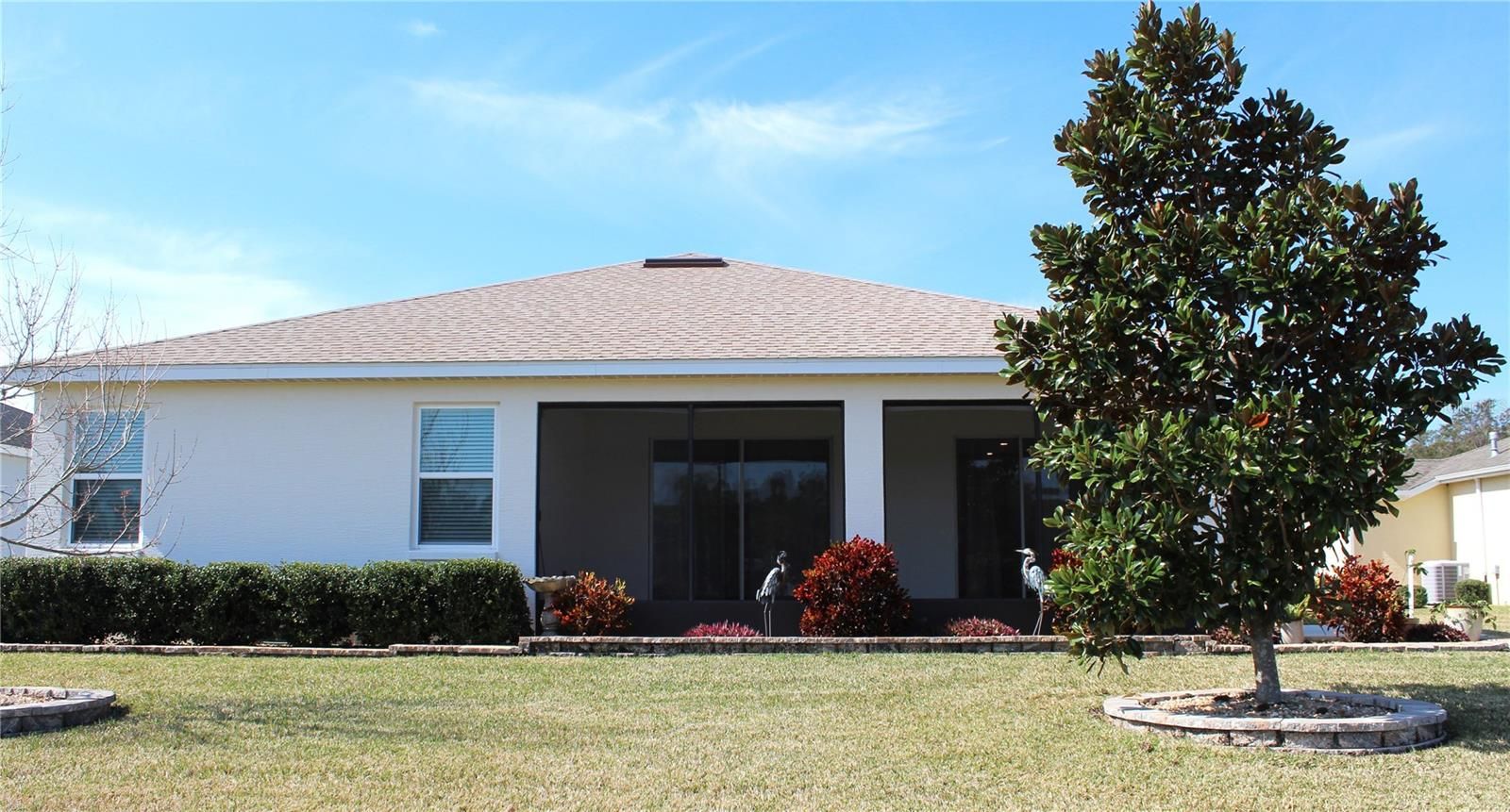 Stunning custom-built Callah II home in the 55+ community of Arlington Ridge, situated on the 9th hole tee box with golf course frontage. This highly upgraded residence features a separate laundry room off the garage entry, offering a spacious area for washer and dryer with room to add an extra refrigerator. The kitchen boasts custom, soft-close cabinets throughout and a large, entertaining-friendly island with cabinets under. Tile flooring spans the home, complemented by carpeting in the bedrooms. Abundant recessed lighting in the kitchen and living room, along with ceiling fans in all rooms, create a warm, well-lit ambiance. Notably, the home is equipped with a solar electricity system that is owned, not leased, helping to lower utility costs. The oversized 2-car garage includes a dedicated golf cart area and ample space for projects, with cabinets and a TV that will remain. Electric vehicle charging outlets are also available in the garage. Stepping outside, you'll find a private, screened-in lanai overlooking the 9th fairway and serene natural surroundings. Arlington Ridge is a 55+ Community, and amenities include a restaurant, tavern, coffee shop, function hall, gym, movie theater, and a new activity center. HOA fees include internet, TV and lawn service. Golf membership is available but not required. Home won't last! Motivated seller. Call to set up a showing today!