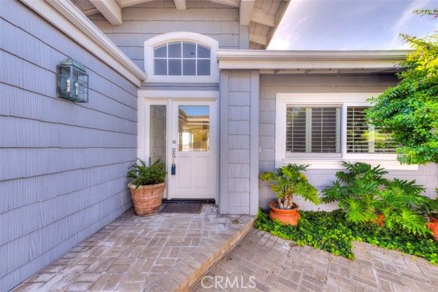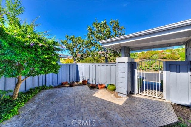 Rare opportunity to own the most desirable streets in the Terraces - Geranium Avenue, a rarely available and highly sought-after location. Perfectly elevated on a single-loaded street, this upper-level single-story residence offers exceptional privacy, natural light, and panoramic coastal scenery. This 55+ community home features 2 bedrooms plus a versatile den, ideal for a home office, reading room, or additional guest space. Beautifully maintained in its original builder condition, the home reflects pride of ownership while offering a great opportunity to personalize moving forward. Enter through a private brick courtyard with gated access and interior buzzer, creating a welcoming and secluded entry experience. Inside, the residence is light and bright, enhanced by plantation shutters, crown moulding, and large windows that capture spectacular Catalina Island, Pacific Ocean, and city lights views from the main living areas. The spacious primary suite includes a walk-in closet and dual vanity sinks, providing both comfort and functionality. Residents enjoy a relaxed coastal lifestyle with HOA-maintained landscaping and exterior care, allowing for low-maintenance living. Community amenities are just moments away, including the pool, spa, BBQ area, clubhouse, and the nearby Oasis