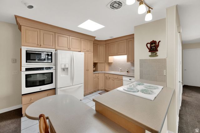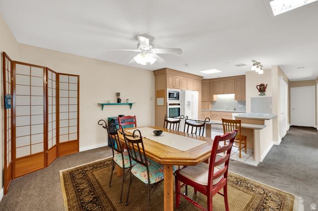 Fabulous Updated One Level Living Condominium in a highly desirable 55 + community located in one of Salt Lake's finest neighborhoods.It's open and spacious layout, along with several skylights and big pictures windows, provides and brings in lots of natural sunlight. This corner unit features many upgrades.The front door entry leads you into an open concept front room, dining area and kitchen with breakfast bar. The front room sliding door, that leads out to a private patio, was replaced in 2023. There is newer carpet (8 years old) and paint throughout main floor. The kitchen features maple cabinets, tiled floor and backsplash, lots of storage cabinets and counter space and appliance center. Included in the kitchen is: 6 month old microwave, newer convection oven, range, dishwasher, disposal and refrigerator. 2 spacious bedrooms. One bedroom has a closet and skylight but no window..... perfect for an office/den or exercise room.The master bedroom has a double closet, ceiling fan, walk out with sliding doors to a second private covered patio and a master updated bath with tiled floor and shower accents and quartz counters.Hallway Guest Bath has updated cabinets (2025), new raised toilet (2023), new faucet, skylight, linen closet, and quartz countertops.(ADU approved). Master bath has shower only, hallway guest bath has tub only. Fireplace in front room is being sold "As Is". Seller does not use it.Other special features include Air Conditioner (2025), Furnace (2020), Water Heater (2023), two parking spaces (W36 and W37) with storage units included on each one, electric dryer hookups, access to crawl space in located in the floor of the master bedroom closet and sunken garbage can by front door where you put your trash bags to be picked up by HOA, double pane windows, outdoor lighting, fully landscaped ground with automatic sprinkling system, some views of the mountains, sidewalks, mature trees, membrane roof, google fiber available in sub division, and blinds included.