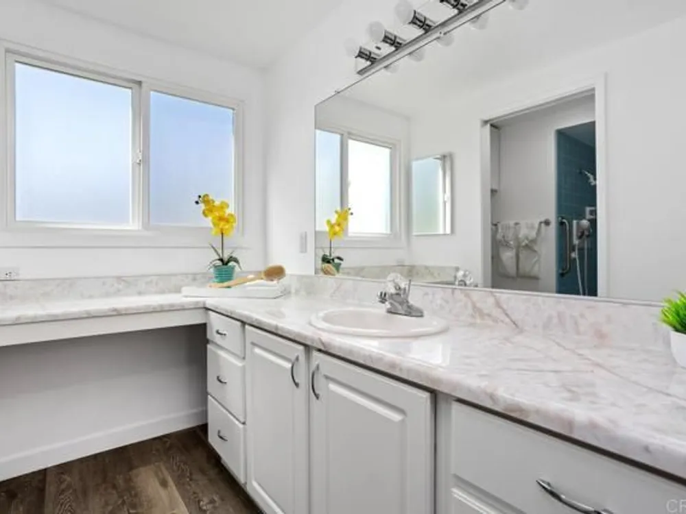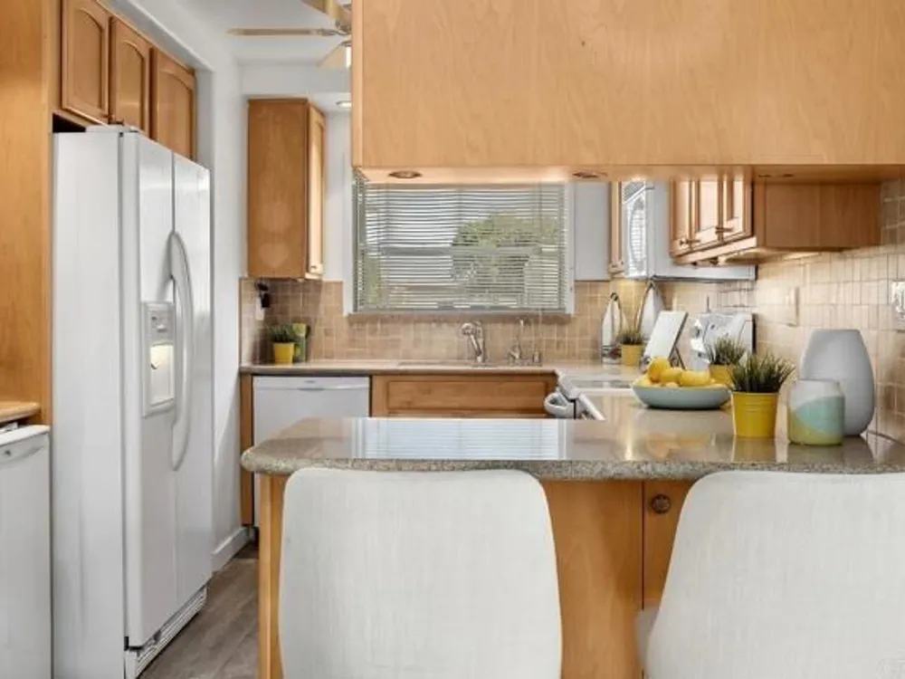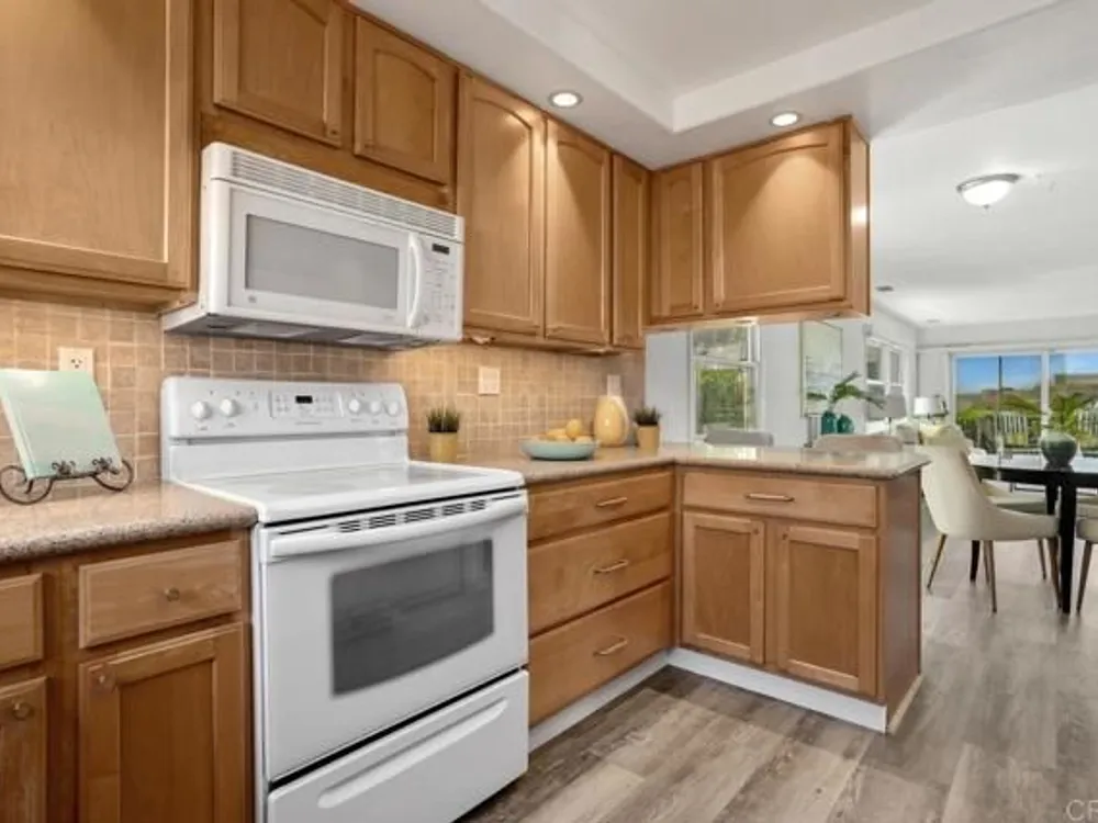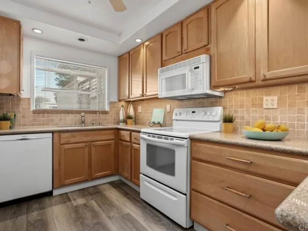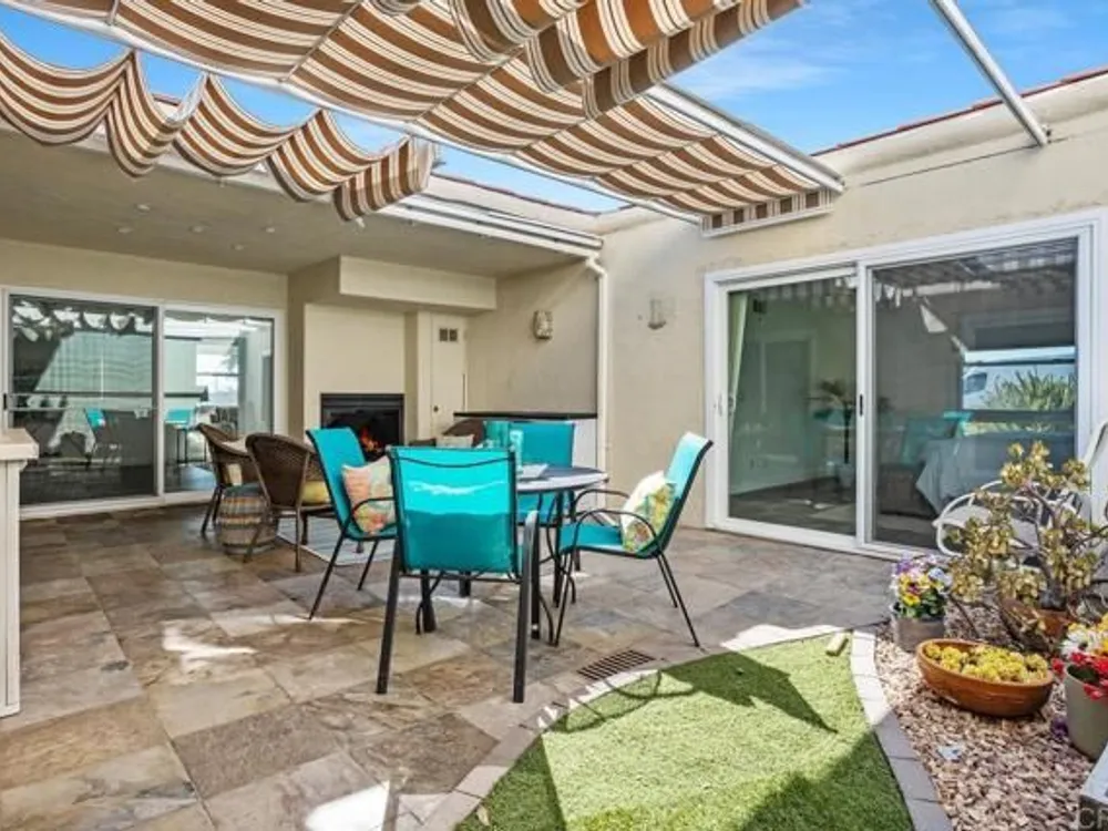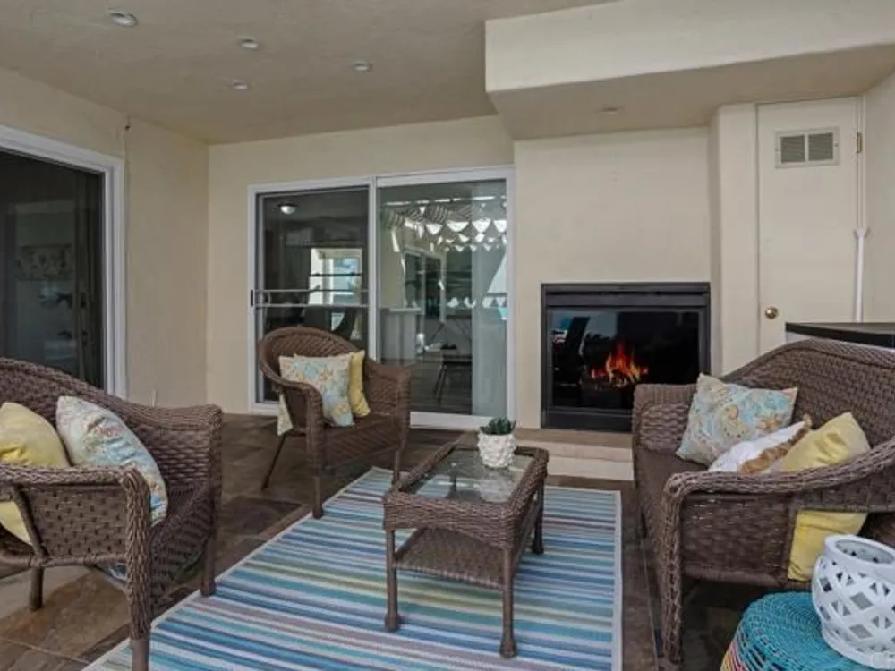 Enjoy your finest retirement life in the best that Oceana has to offer! Welcome to this wonderful 3 bedroom/2 bath home situated on a corner location for lots of light and ocean breezes in the highly desirable community of Oceana. This turnkey property is very private (only shares one full wall and one partial wall with the neighbors) and features brand new vinyl flooring and paint, a wonderful kitchen with honey maple cabinetry, pantry with pull out shelves, and granite countertops, primary suite with ceiling fan, spacious secondary bedroom with ceiling fan, and a third bedroom that is set up as a large den. There are two incredible outdoor spaces - a fantastic center courtyard accessed through the living room and both bedrooms that includes a fireplace and canned lighting as well as a sunroom off the living room. The home also features high end windows, Solatubes that bring in a ton of natural light, owned solar, tankless water heater, and more. Oceana is a premiere 55+ community. Multiple swimming pools, clubhouse, billiard room, card room, computer room, and more. Enjoy a game of pickle ball or work on your latest masterpiece in the woodshop. Located near the Sprinter station, shops, restaurants, freeways, and so much more. Welcome home!