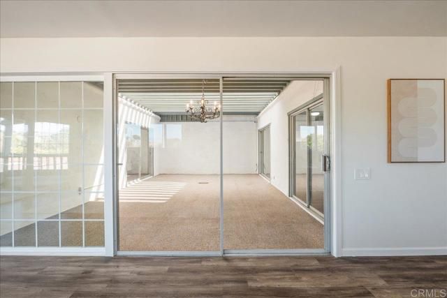 Welcome to this beautifully upgraded single-story residence in the desirable Oceana 55+ community. This charming home features laminate flooring, a modern kitchen with Corian counters, stainless steel appliances and custom backsplash, a spacious living room with large balcony, updated bathrooms, plus a front patio with HOA-approved fencing that creates a private outdoor space. The enclosed atrium/courtyard offers endless possibilities-perfect for a sunroom, office or hobby area. Conveniently located near the community entrance and clubhouse, as well as being adjacent to the Emerald Isle Golf Course. Enjoy resort-style amenities including multiple pools, clubhouse, billiards, card and computer rooms, pickleball courts, and more. The HOA covers trash pick-up, and water and sewer are included, adding convenience and peace of mind. Ideally located near the Sprinter station, shops, restaurants, and freeways, this home offers the perfect blend of comfort, convenience, and active coastal living.