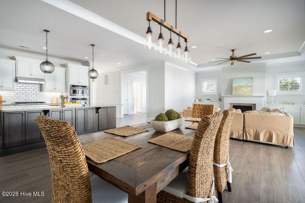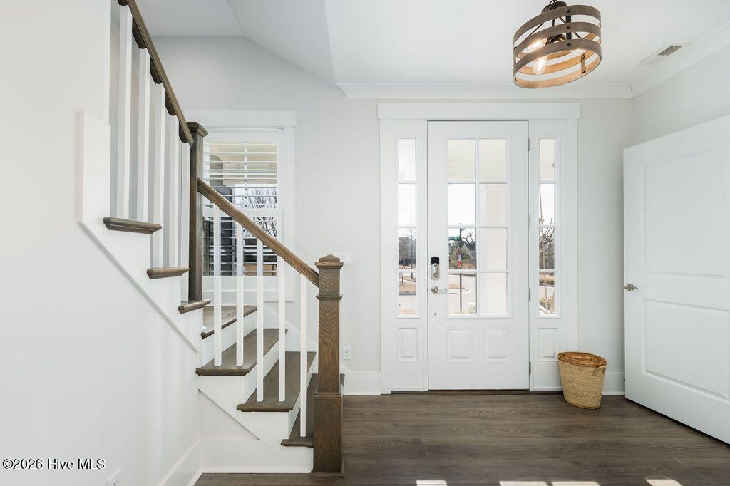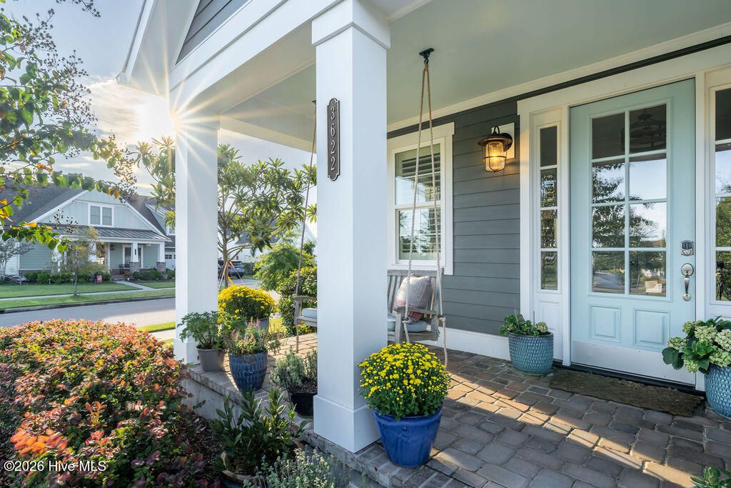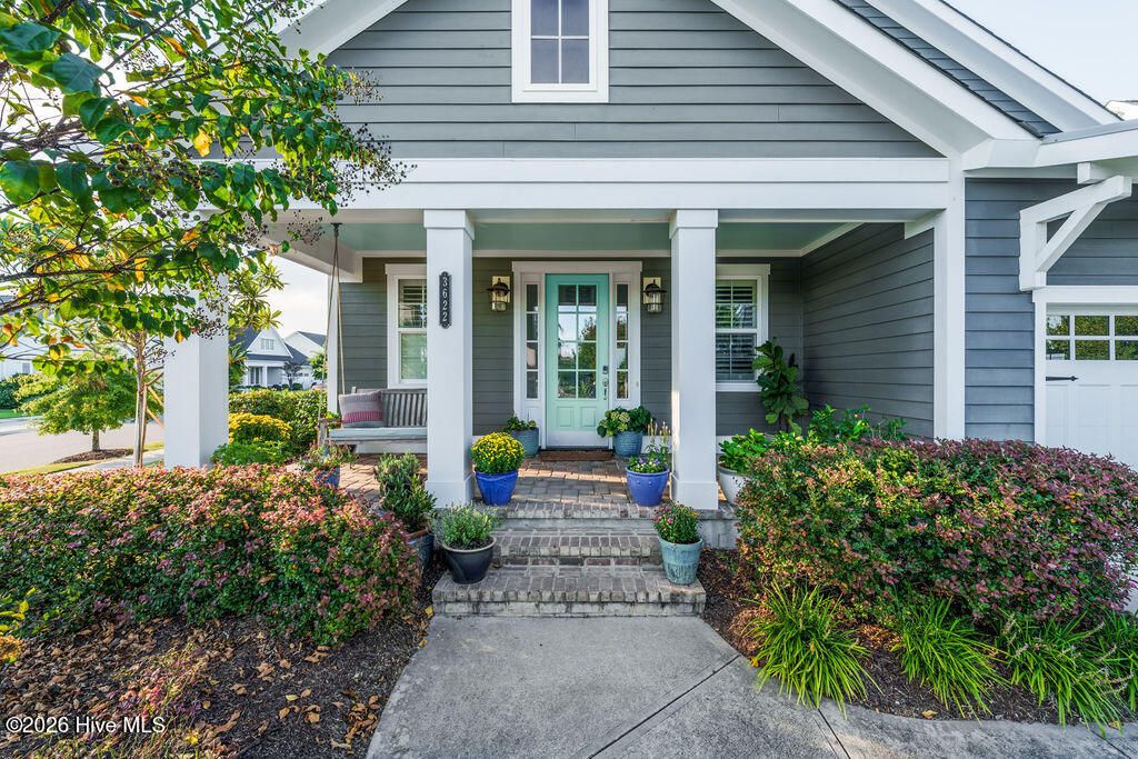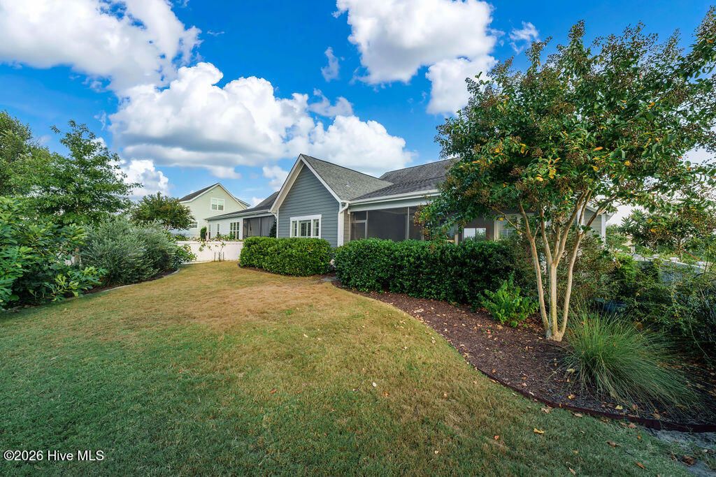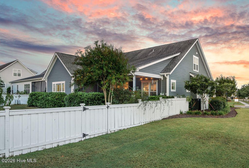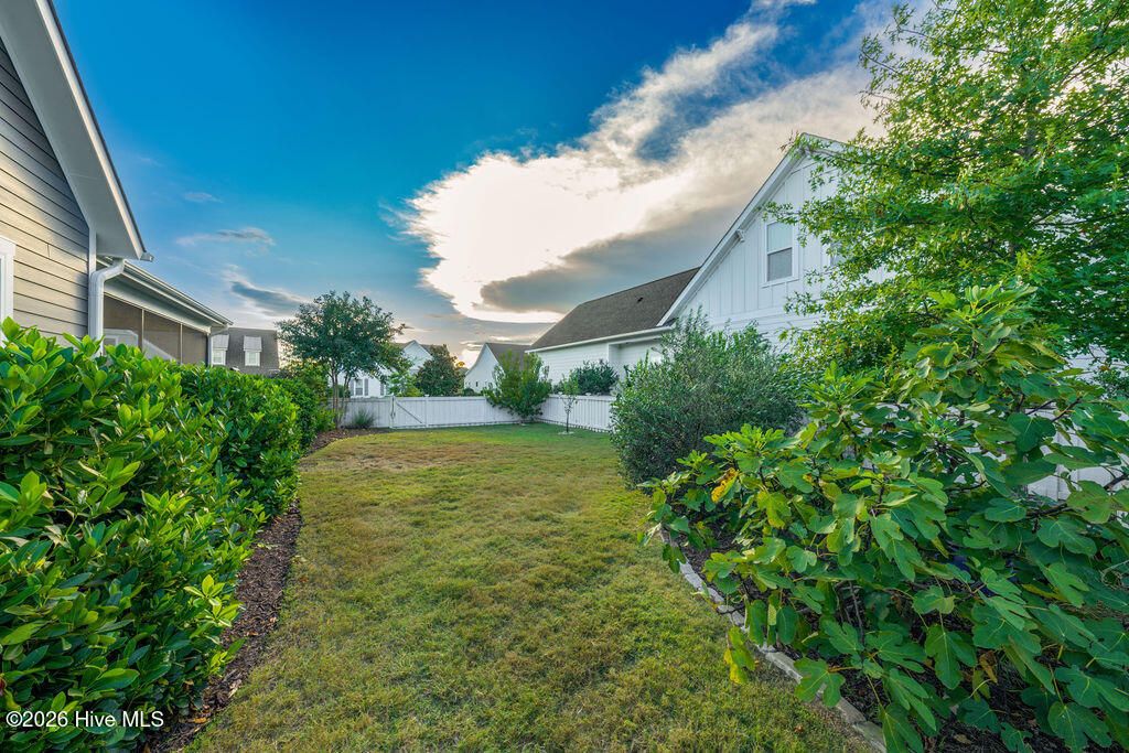 Beautifully constructed by the highly regarded Trusst Builder Group, this charming 3-bedroom, 3-full-bath home offers thoughtful design, quality craftsmanship, and inviting living spaces throughout and exceptional community amenities in Riverlights. The main level features an open-concept living room, dining area, and kitchen, creating a seamless flow ideal for both everyday living and entertaining. The kitchen is anchored by a large island with breakfast bar, abundant cabinetry, and a pantry, making it as functional as it is welcoming. A dedicated home office provides flexibility for remote work, study, or creative space. The primary bedroom is a relaxing retreat with an elegant tray ceiling, a spacious en-suite bath, and a generous walk-in closet. Upstairs, two comfortable guest bedrooms share a full bathroom, offering privacy and convenience for family or visitors. Step outside from the spacious screened in porch to a truly special backyard garden oasis, featuring an impressive collection of mature and producing fruit trees and plants, including four varieties of fig trees, nectarines, plums, mandarin orange, raspberry, olive tree, strawberries, blackberries, grapes, and loquats—a rare and delightful setting for gardeners, entertainers, or anyone who appreciates outdoor beauty and fresh harvests. Located in an amenity-rich neighborhood, residents enjoy access to a resort-style pool, clubhouse, pickleball courts, dog park, jogging paths, picnic areas, and a playground, offering something for every lifestyle. Riverlights is conveniently located just a few minutes from downtown Wilmington to the North and Carolina Beach to the South.