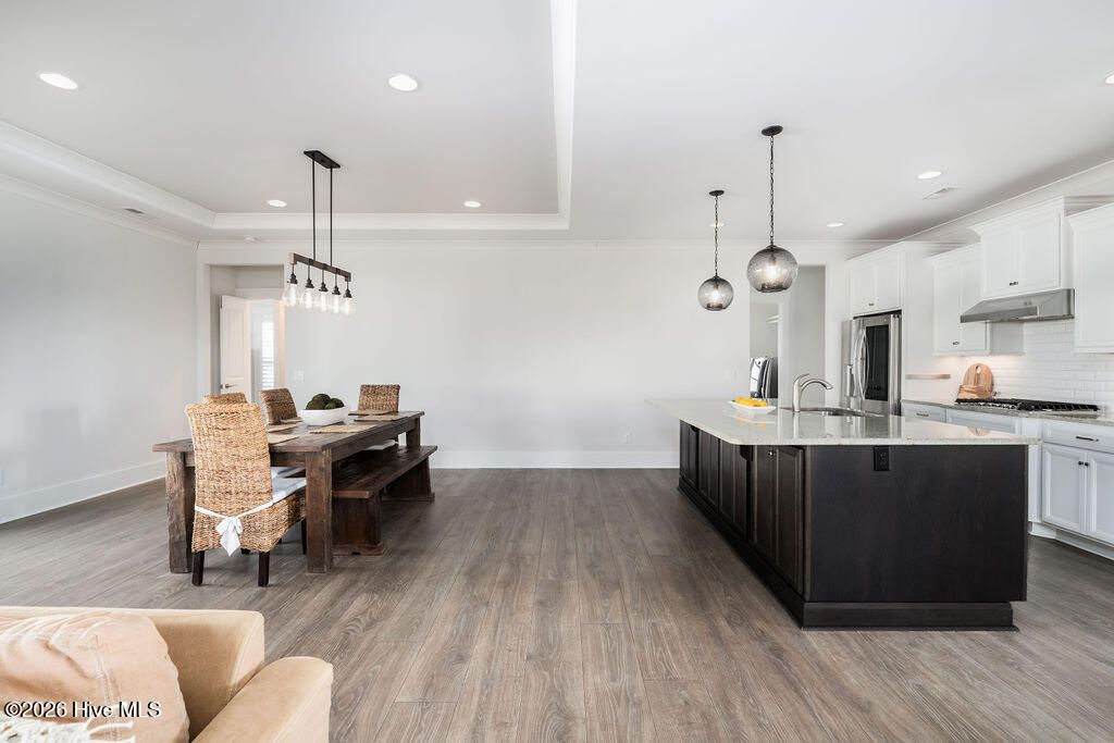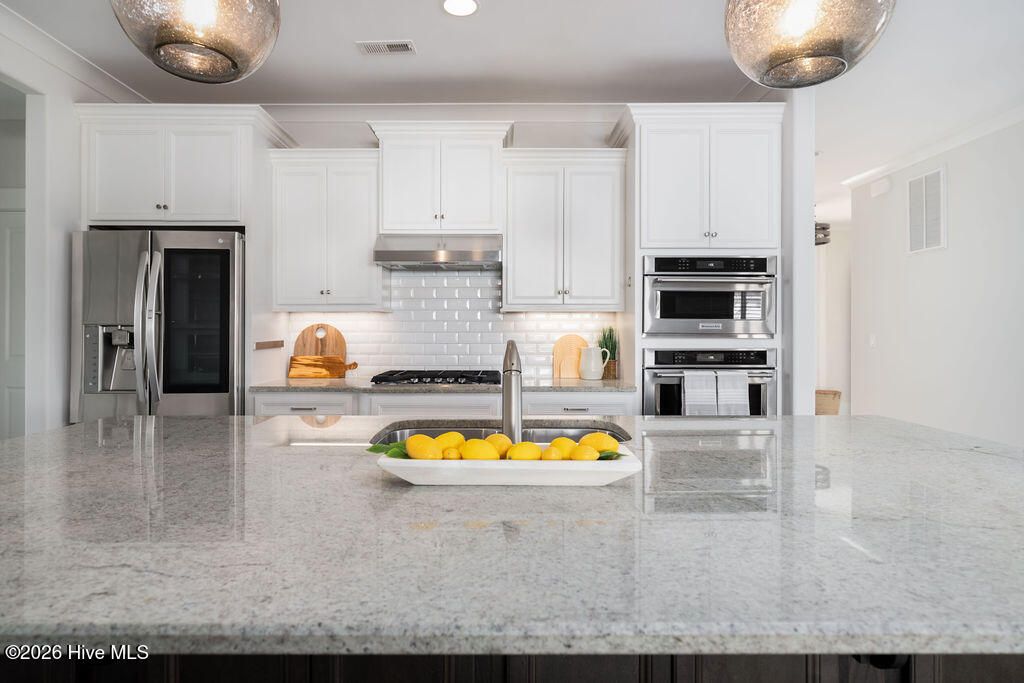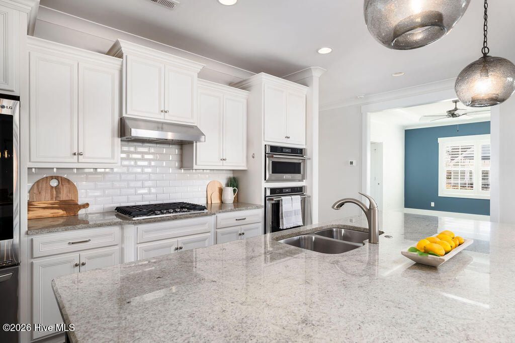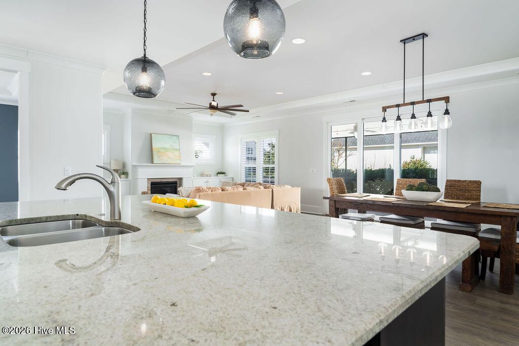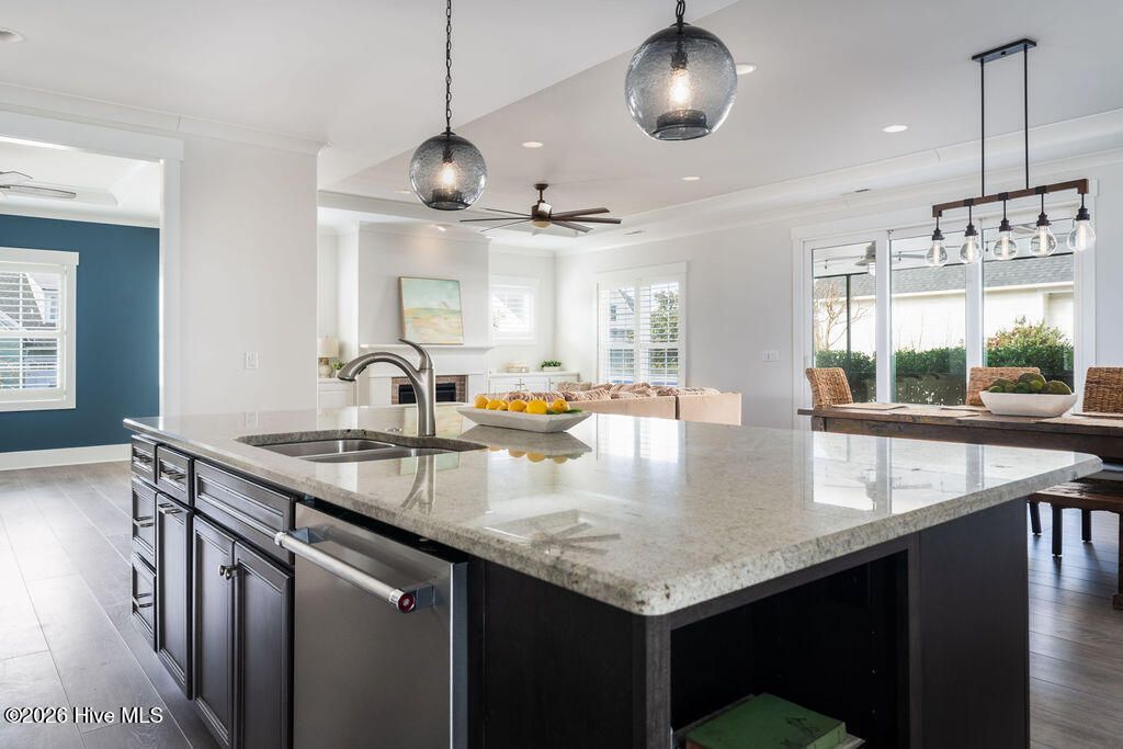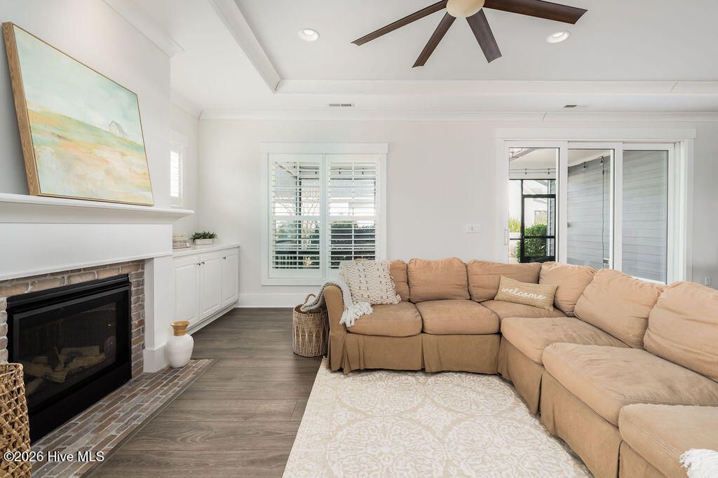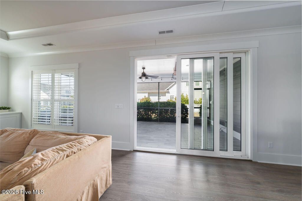 Beautifully constructed by the highly regarded Trusst Builder Group, this charming 3-bedroom, 3-full-bath home offers thoughtful design, quality craftsmanship, and inviting living spaces throughout and exceptional community amenities in Riverlights. The main level features an open-concept living room, dining area, and kitchen, creating a seamless flow ideal for both everyday living and entertaining. The kitchen is anchored by a large island with breakfast bar, abundant cabinetry, and a pantry, making it as functional as it is welcoming. A dedicated home office provides flexibility for remote work, study, or creative space. The primary bedroom is a relaxing retreat with an elegant tray ceiling, a spacious en-suite bath, and a generous walk-in closet. Upstairs, two comfortable guest bedrooms share a full bathroom, offering privacy and convenience for family or visitors. Step outside from the spacious screened in porch to a truly special backyard garden oasis, featuring an impressive collection of mature and producing fruit trees and plants, including four varieties of fig trees, nectarines, plums, mandarin orange, raspberry, olive tree, strawberries, blackberries, grapes, and loquats—a rare and delightful setting for gardeners, entertainers, or anyone who appreciates outdoor beauty and fresh harvests. Located in an amenity-rich neighborhood, residents enjoy access to a resort-style pool, clubhouse, pickleball courts, dog park, jogging paths, picnic areas, and a playground, offering something for every lifestyle. Riverlights is conveniently located just a few minutes from downtown Wilmington to the North and Carolina Beach to the South.