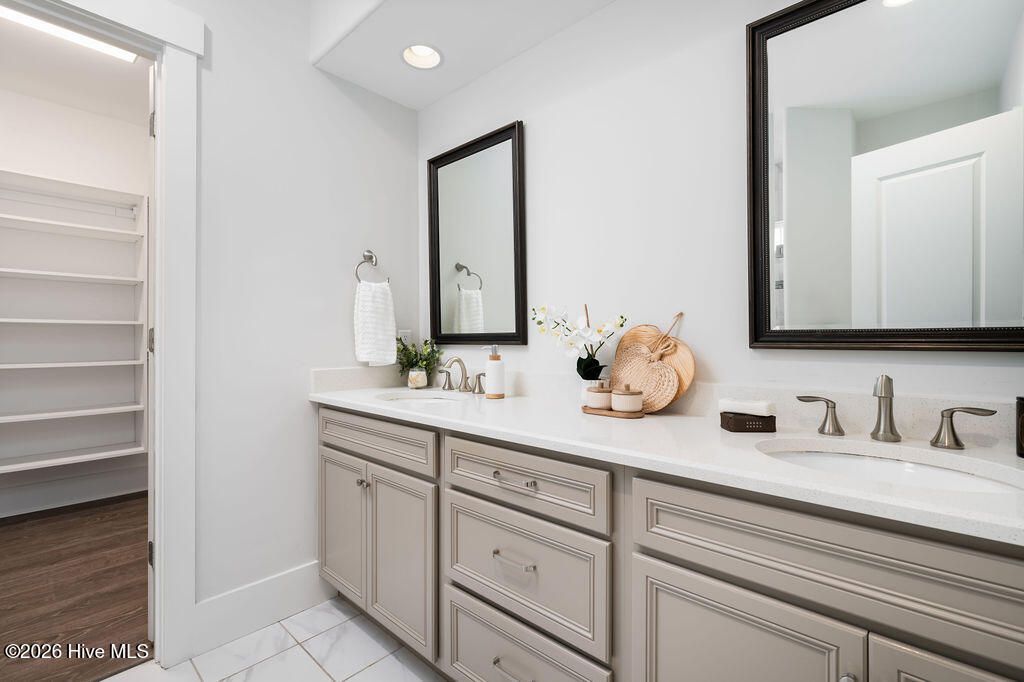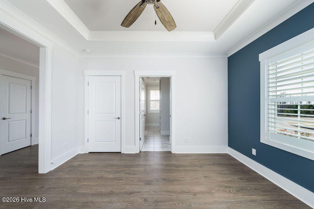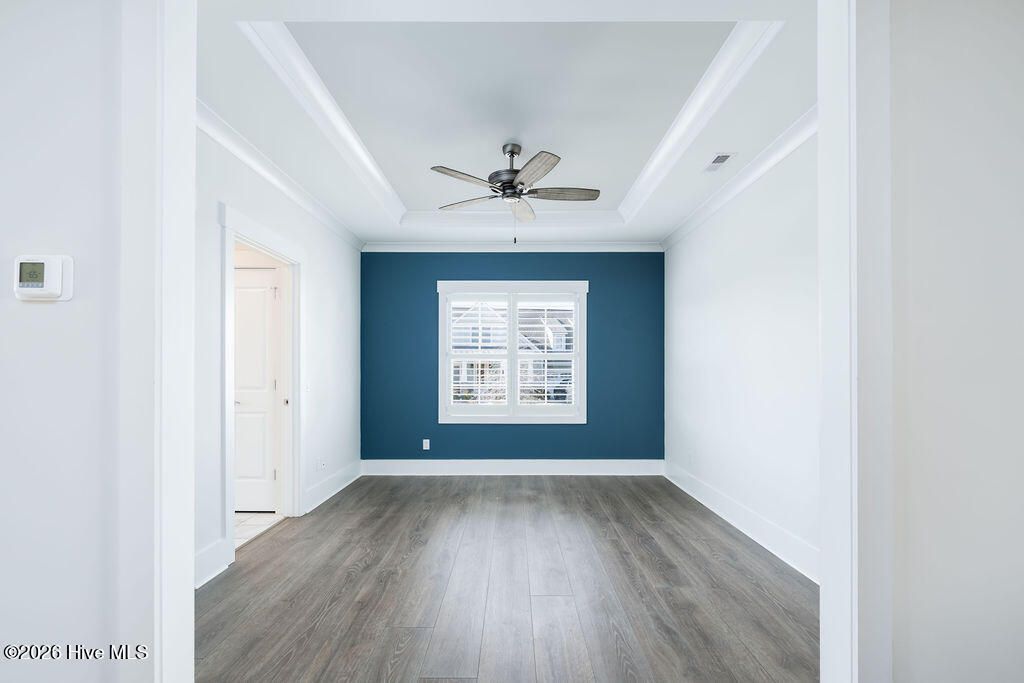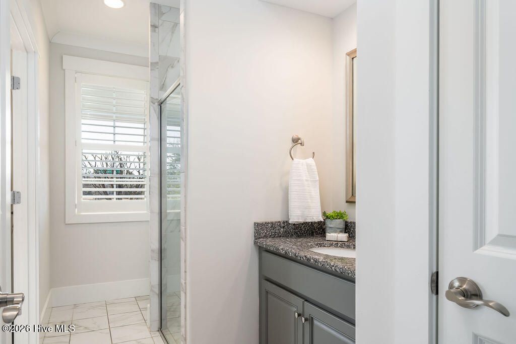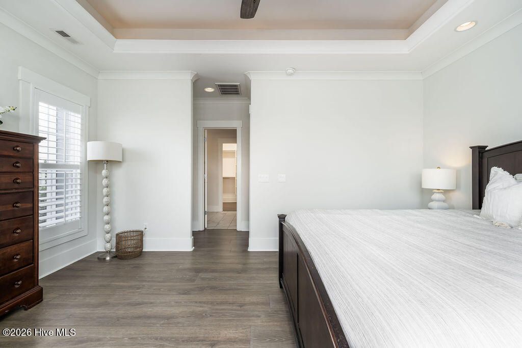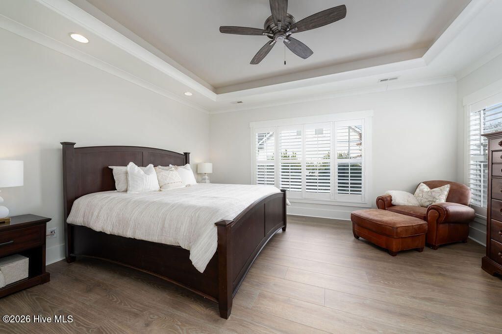 - Master Downstairs, Walk-In Closet(s), Tray Ceiling(s), High Ceilings, Mud Room, Solid Surface Counters, Kitchen Island, Pantry, Walk-In Shower, Blinds