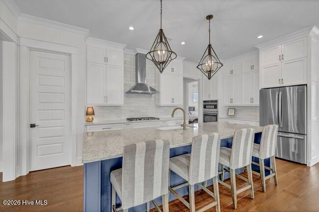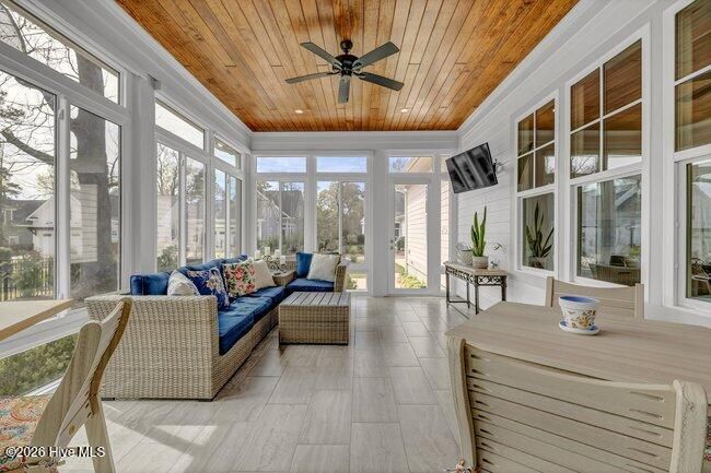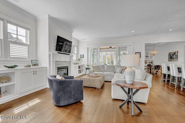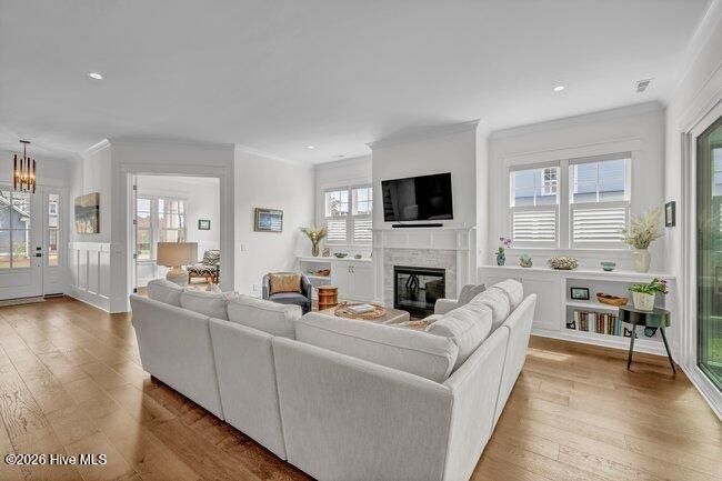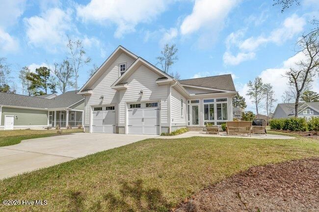 This beautiful three-bedroom, three and a half bath custom home was built by Vahue Custom Homes specifically for its current owner and was thoughtfully designed and expertly crafted with both beauty and comfort in mind. The detailed trim work, carried throughout the residence, reflects the quality you expect in a Vahue home. The owners carefully selected features that enhance ease of maintenance and peace of mind, including a whole house generator, water purification system throughout, and HVAC system with integrated air purification. Located in one of Wilmington's most desirable gated communities, River Bluffs offers an abundance of natural beauty and amenities, including a Riverwalk that stretches along the historic Cape Fear River. Built in 2022, the home has been meticulously maintained and presents as though it were just completed. Every selection was made with intention, creating a cohesive design that balances comfort and functionality. The kitchen serves as the heart of the home, offering a highly functional layout with tile backsplash, quartz countertops, and premium appliances suited for any home chef. Positioned adjacent to the main living area, it allows for easy interaction as guests gather around the oversized island or relax in the nearby family room. The dining area continues the theme of custom craftsmanship, featuring built ins and a convenient wine cooler. The main level also includes a flexible space ideal for a dedicated office or parlor. The owner's suite is located on the first floor and offers generous space, large walk-in closets, and a luxury bath with an oversized spa-inspired multi-head shower. Engineered hardwood flooring extends throughout both the upper and lower levels, adding warmth and continuity to the home. Upstairs, guests enjoy privacy and comfort with accommodations that mirror many of the features of the main suite, including a private bath, sitting area, and abundant storage. Just off the family room is a glass enclosed porch with movable panels, allowing it to adapt comfortably to the seasons. Beyond the porch, a beautifully finished patio provides an inviting outdoor living space complete with a gas firepit, perfect for enjoying evenings outdoors. This home is located just a short walk from the main pool, post office, and fitness center at Davis Square. Just outside the gate are additional amenities including a dog park, tennis courts, pickleball courts, bocce ball courts and a boat storage area. Along the river, residents enjoy a kayak and boat launch, the scenic Riverwalk, and a growing marina with boat slips available for purchase. River Bluffs is a golfcart friendly community known for its welcoming atmosphere, environmental stewardship, and exceptional quality of life.