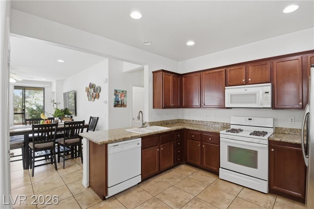 FABULOUS HOME IN BEAUTIFUL, 55+ GATED COMMUNITY: 1241 sqft 3bd/2ba/2car home with expansive livingroom, modern kitchen w/nook, granite counters & tile floors. Quiet primary bedroom separate from others with access door to rear covered patio overlooking scenic, neighborhood walking path. Low-step shower entry and extra storage in primary bathroom. Guest bedrooms on the opposite side of house. Both with ceiling fan & lite kit and sharing full guest bath. Oversized two-car garage with auto door opener. Nestled near the end of a cul-de-sac street. Stay busy in a community with loads of activities, amenities, social calendar and more. Pool, Tennis & Basketball courts, Multi-hole putting course, Fullyloaded exercise facilities, dance studio, billiard room, library, conference space & card rooms.