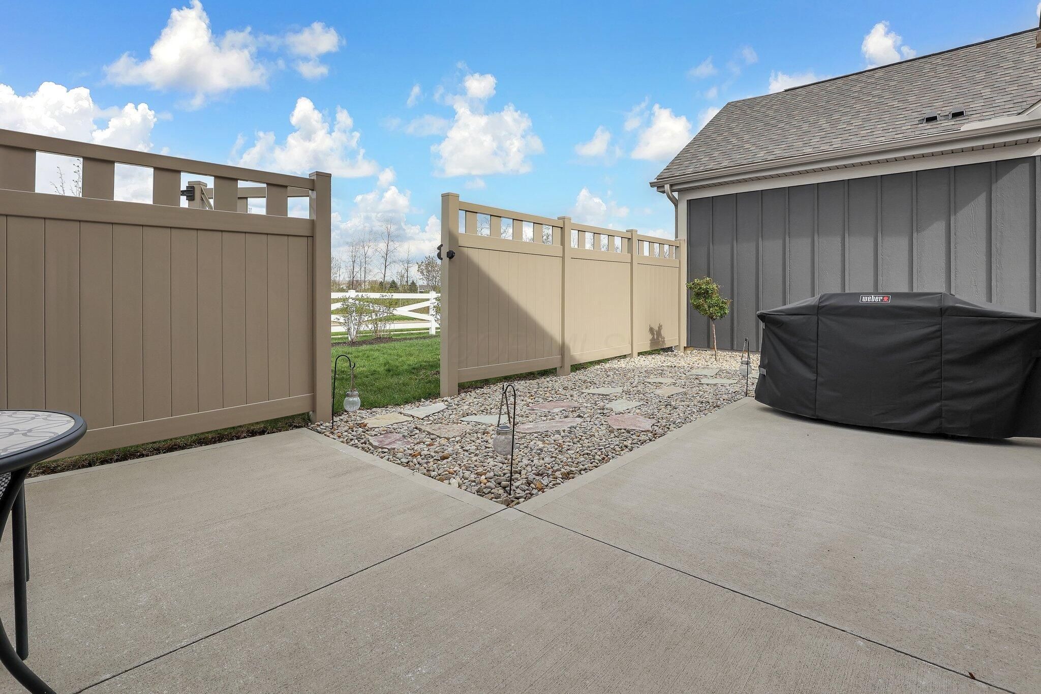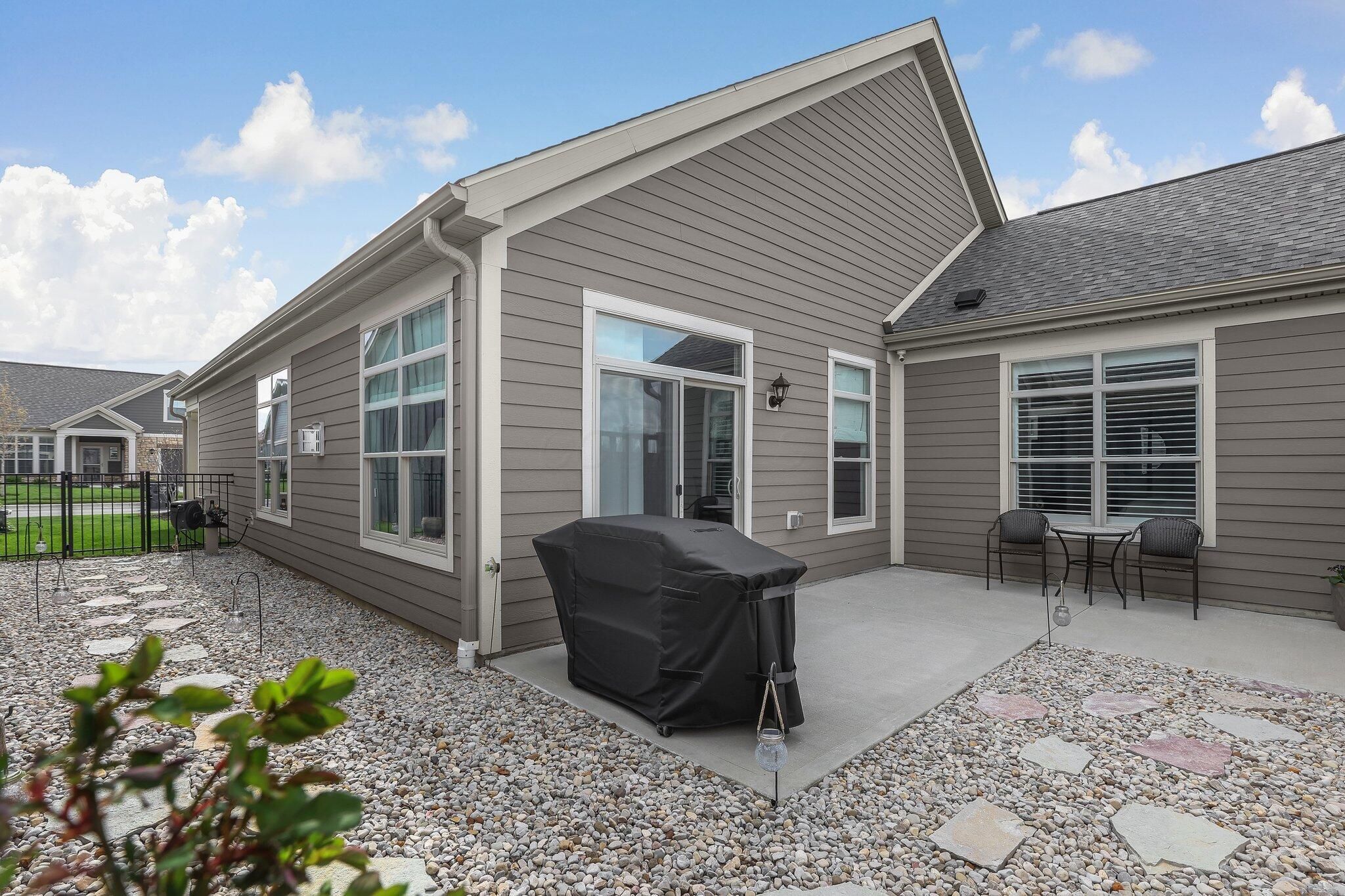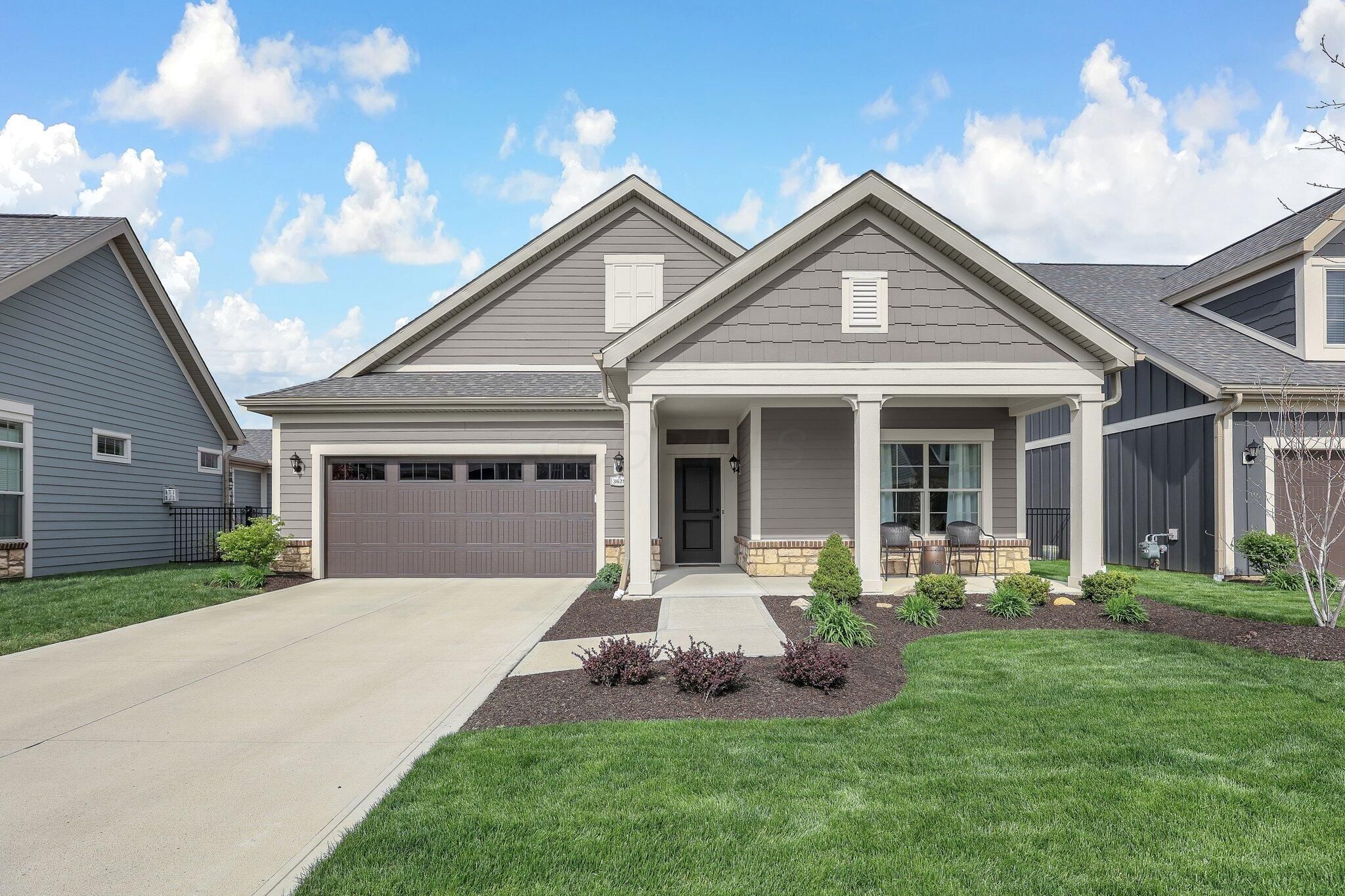 OPEN HOUSE this SUNDAY JANUARY 11TH from 1pm-3pm. Welcome to 3628 Backstretch Way, a meticulously maintained, move-in-ready gem nestled in the highly sought-after Courtyards at Beulah Park in Grove City, Ohio. This free-standing, maintenance-free home was once the model home—and it shows! With upgrades throughout and pristine condition, this one-story beauty offers the perfect blend of luxury and low-maintenance living. Featuring 2 spacious bedrooms and 2 full bathrooms, the open-concept layout is warm and inviting, highlighted by a cozy fireplace and abundant natural light. The kitchen is a chef's dream with top-of-the-line appliances, including a GE refrigerator with built-in Keurig, a gas cooktop, quartz countertops, and a stylish tile backsplash. The primary suite is a true retreat, offering a large bedroom, walk-in closet that exceeds expectations, double sink vanity, and a walk-in tiled shower. Step outside to your private back patio—fully fenced with a secure gate that opens to lush, maintenance-free green space and quiet sidewalks, ensuring privacy with no rear neighbors. Community amenities are unmatched and include a clubhouse, fitness center, pool, pickle ball court, and scenic walking paths—perfect for active and social lifestyles. Just minutes from the heart of downtown Grove City, you'll enjoy easy access to shopping, dining, and entertainment. This is more than a home; it's a lifestyle. Don't miss your chance to make it yours!