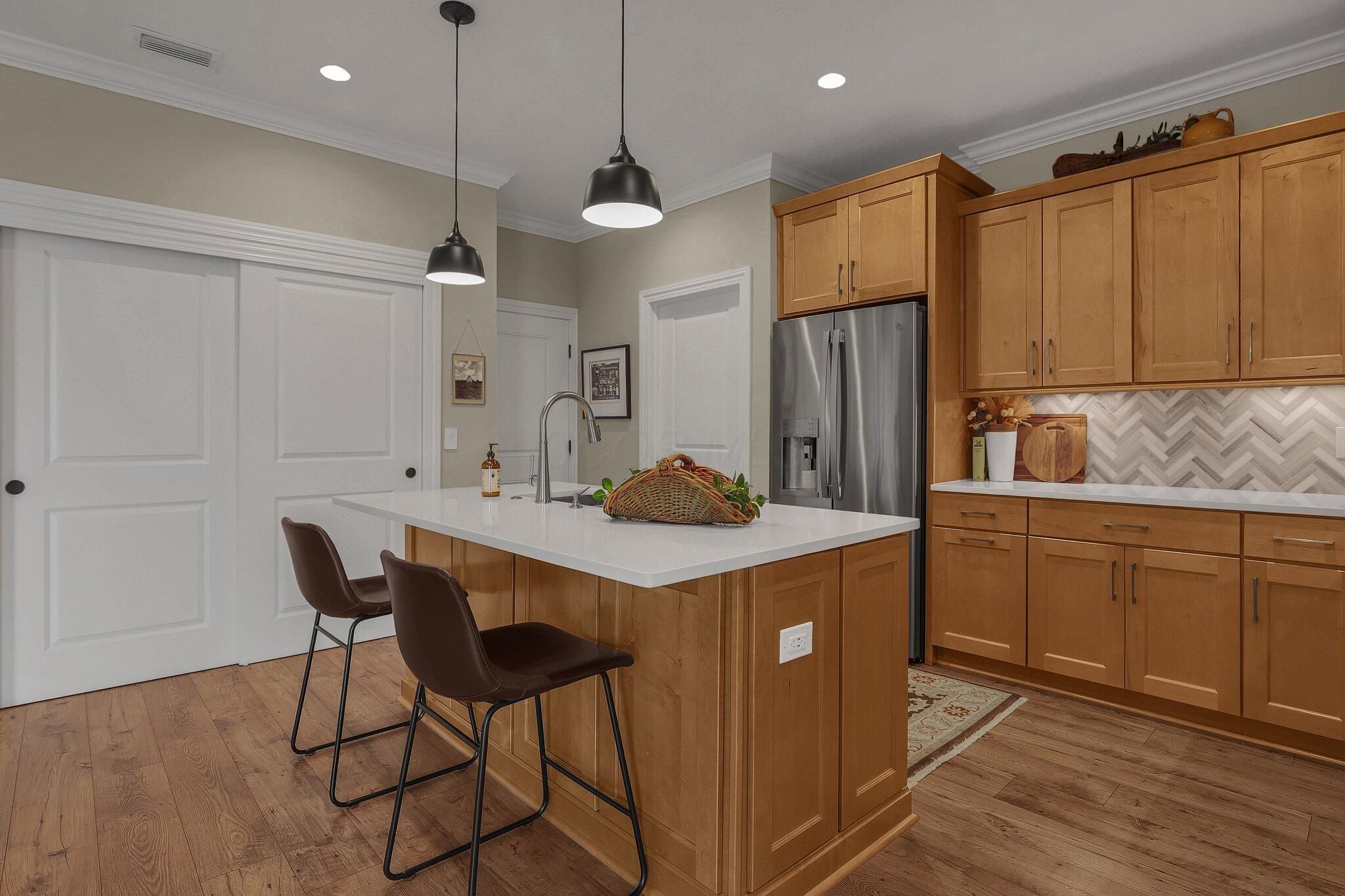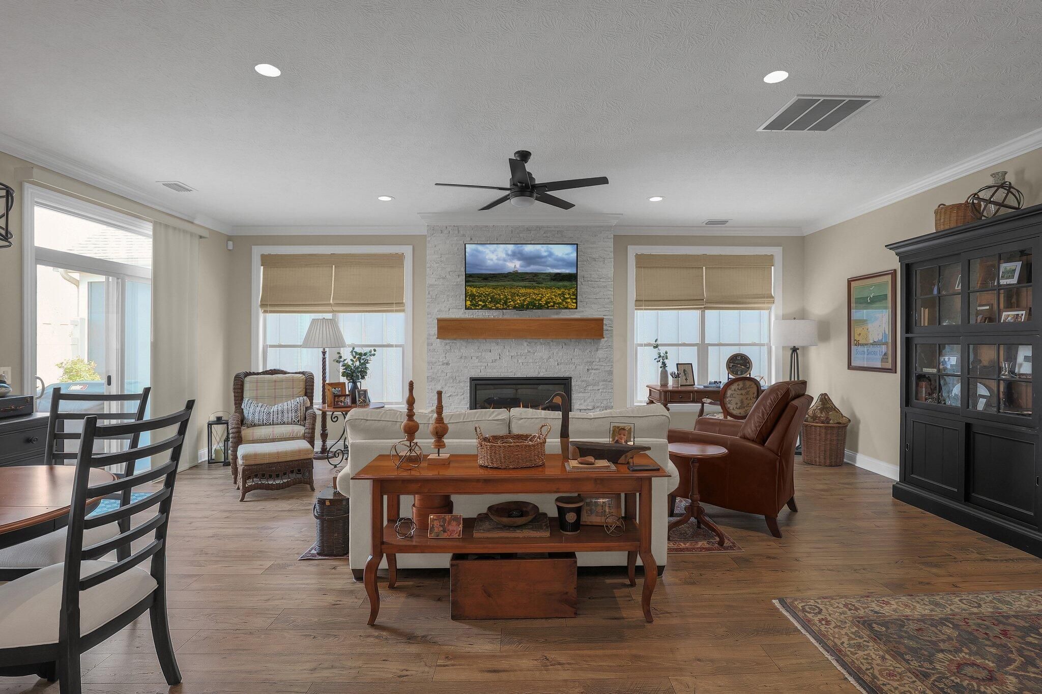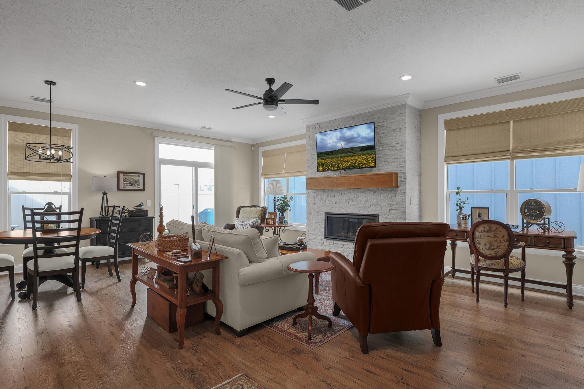OPEN HOUSE this SUNDAY JANUARY 11TH from 1pm-3pm. Welcome to 3628 Backstretch Way, a meticulously maintained, move-in-ready gem nestled in the highly sought-after Courtyards at Beulah Park in Grove City, Ohio. This free-standing, maintenance-free home was once the model home—and it shows! With upgrades throughout and pristine condition, this one-story beauty offers the perfect blend of luxury and low-maintenance living. Featuring 2 spacious bedrooms and 2 full bathrooms, the open-concept layout is warm and inviting, highlighted by a cozy fireplace and abundant natural light. The kitchen is a chef's dream with top-of-the-line appliances, including a GE refrigerator with built-in Keurig, a gas cooktop, quartz countertops, and a stylish tile backsplash. The primary suite is a true retreat, offering a large bedroom, walk-in closet that exceeds expectations, double sink vanity, and a walk-in tiled shower. Step outside to your private back patio—fully fenced with a secure gate that opens to lush, maintenance-free green space and quiet sidewalks, ensuring privacy with no rear neighbors. Community amenities are unmatched and include a clubhouse, fitness center, pool, pickle ball court, and scenic walking paths—perfect for active and social lifestyles. Just minutes from the heart of downtown Grove City, you'll enjoy easy access to shopping, dining, and entertainment. This is more than a home; it's a lifestyle. Don't miss your chance to make it yours!