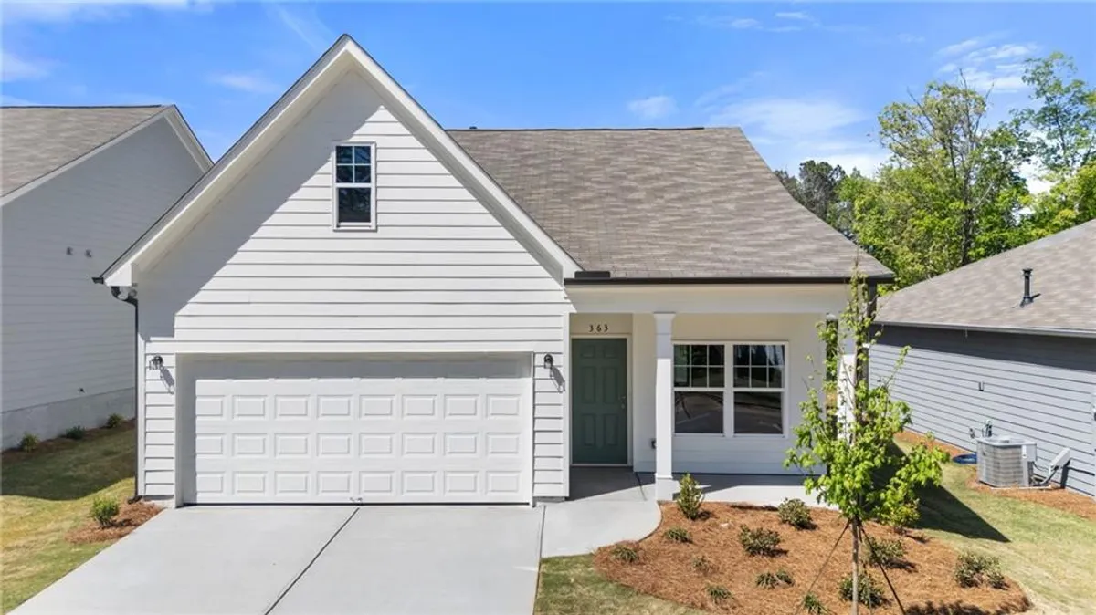 Welcome Home to Villages at Cedar Hill. Our Active Adult community in Dallas, GA. Enjoy easy living, in a highly sought after location, with lawn maintenance, beautiful interior finishes, and proximity to shopping, dining and healthcare. There are several golf courses nearby along with the County Senior Center activities. Offering all of this from a friendly price point. Don’t miss your opportunity to reside in this lovely community. Let us introduce you to the beautiful Chatham plan at Villages at Cedar Hill, our Active Adult 55+ community in North Paulding County, GA. The Chatham is a new plan and offers a bright and cheerful Family Room with an open-concept Dining area and Kitchen encompassing natural light throughout. With open concept you have LED lighting for greater flexibility of furniture placement. This home is priced for Granite in the kitchen, and Stained cabinets with a huge single bowl stainless farmhouse sink within the spacious kitchen island and has stainless appliances inclusive of Gas range & Dishwasher. The Dishwasher is neatly placed within the island. The kitchen pantry offers additional storage and is nicely tucked away near the refrigerator space. From the Kitchen you can walk out onto the Covered Patio and enjoy some outdoor space with the beverage of your choice. The Chatham boasts 2 Bedrooms and 2 Bathrooms. The Primary Bedroom is amply sized for a king-sized bed. With dual windows for natural light and prewired for ceiling fan. The Primary suite features a walk-in closet and 5-foot shower with a low-clearance entry and glass door. Separate commode room for your privacy and dual sinks along with Linen closet for your storage needs. The walk in laundry room resides between the 2 bedrooms giving easy access for all. The second bedroom is ample-sized and boasts a walk-in closet and second bathroom with tub/shower combo and single sink. A secondary linen closet with easy access to both the bathroom and laundry room for additional storage needs. This home is priced in with Elevation B, adding a covered Front Porch. The 2-car garage has ample space and houses the natural gas water heater. The home has natural gas heat, and electric air conditioning. The attached floor plan is representative of the plan. Photos are representative only. Central mailboxes with keyed entry. Active Adult 55+ community ONLY. Ready Late March 2026. Inquire with onsite agent regarding Incentives with Preferred Lender.