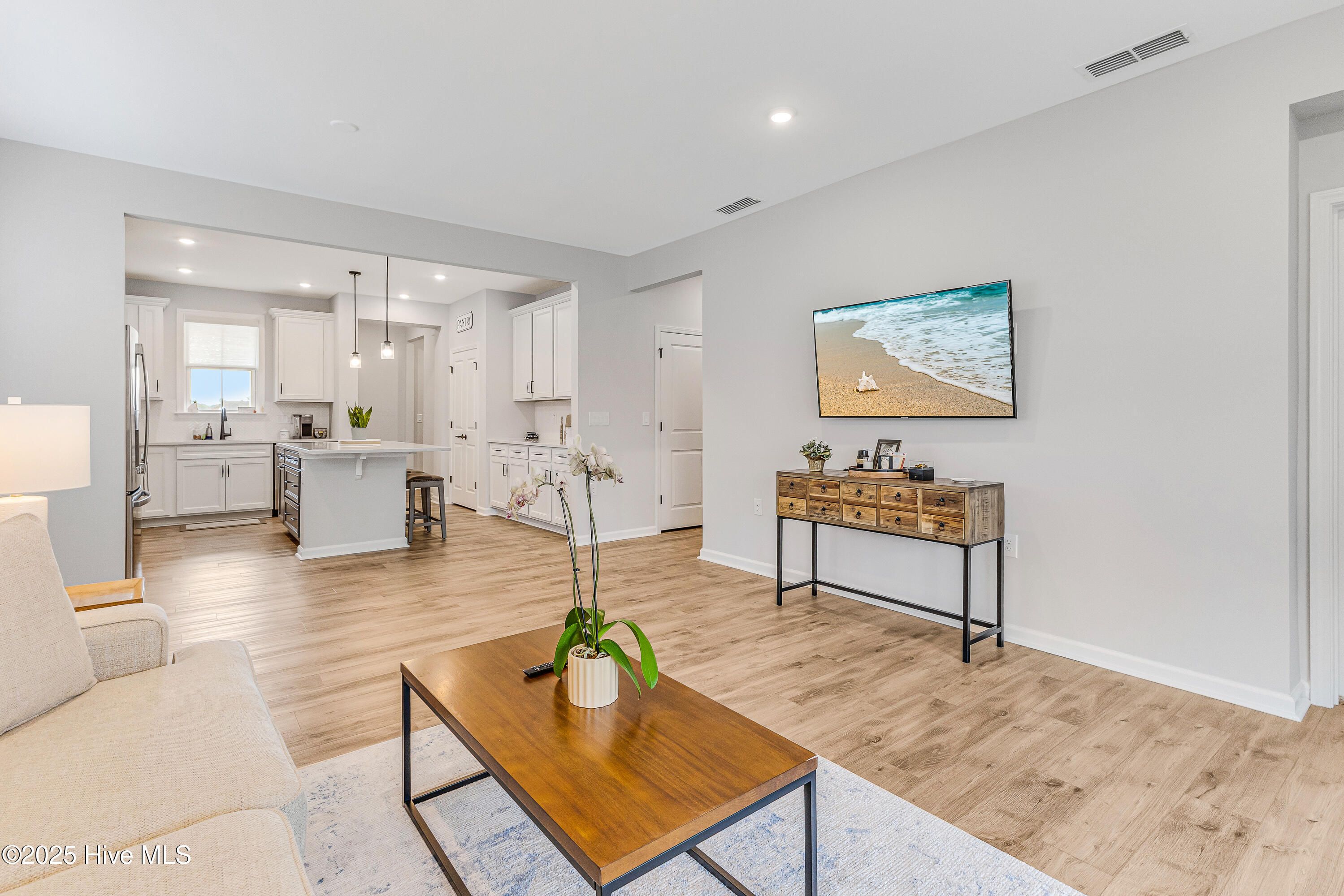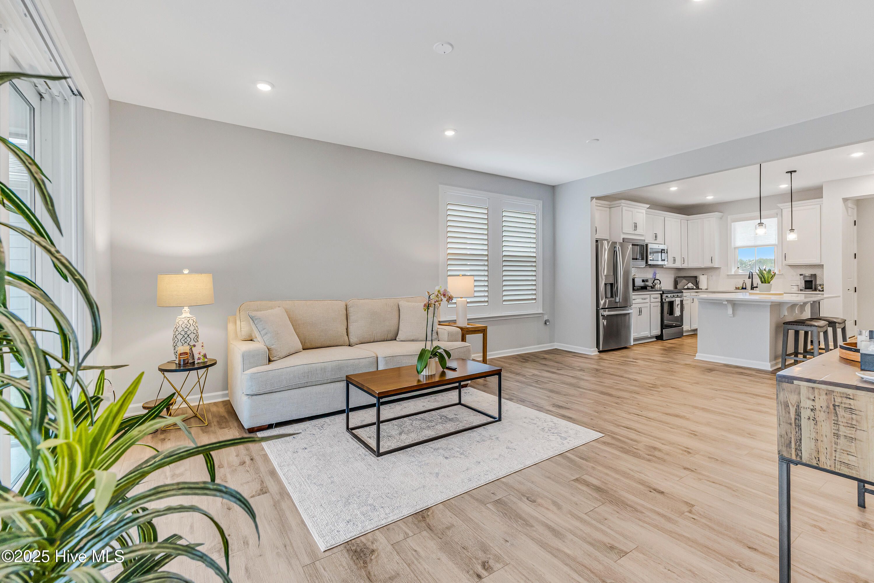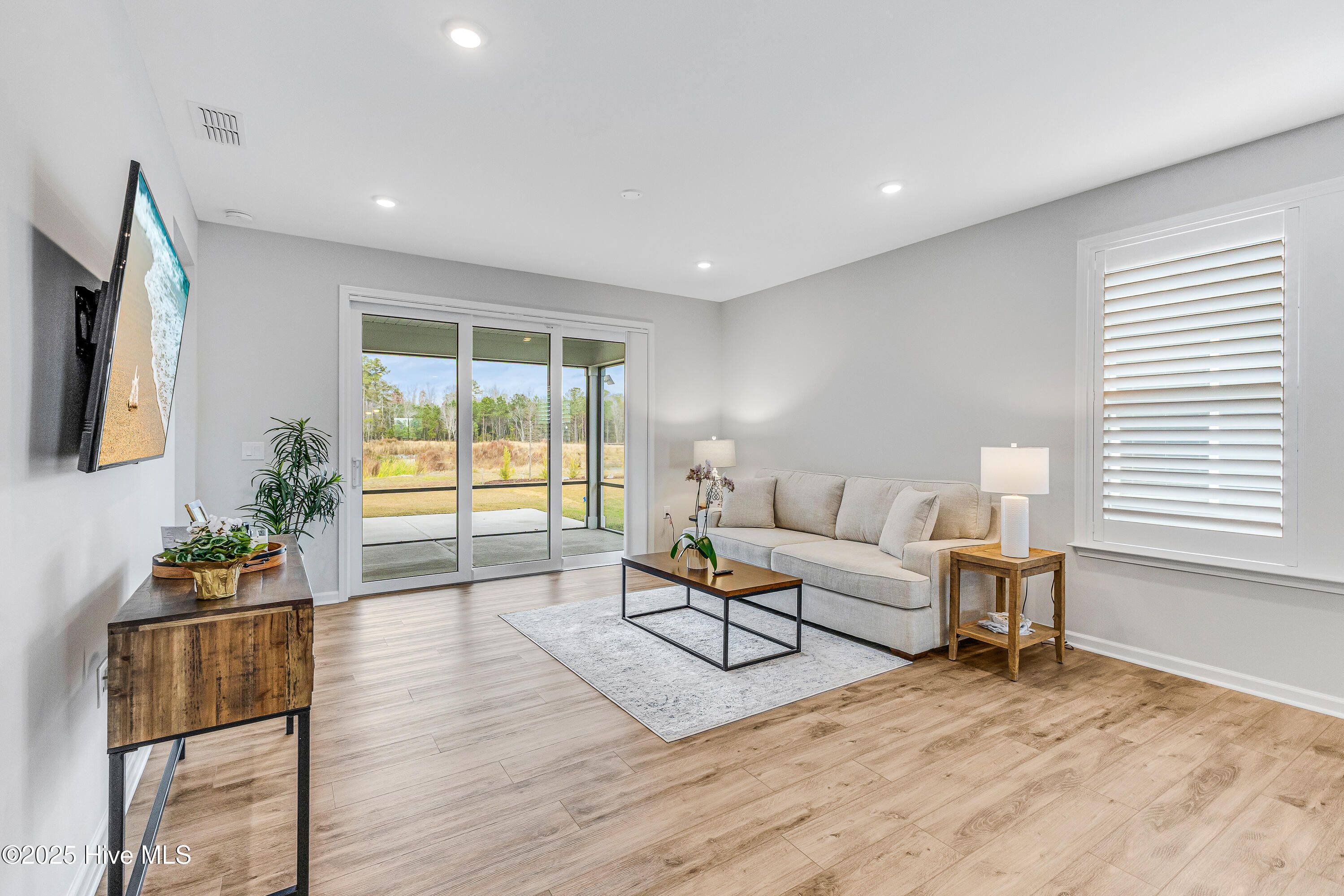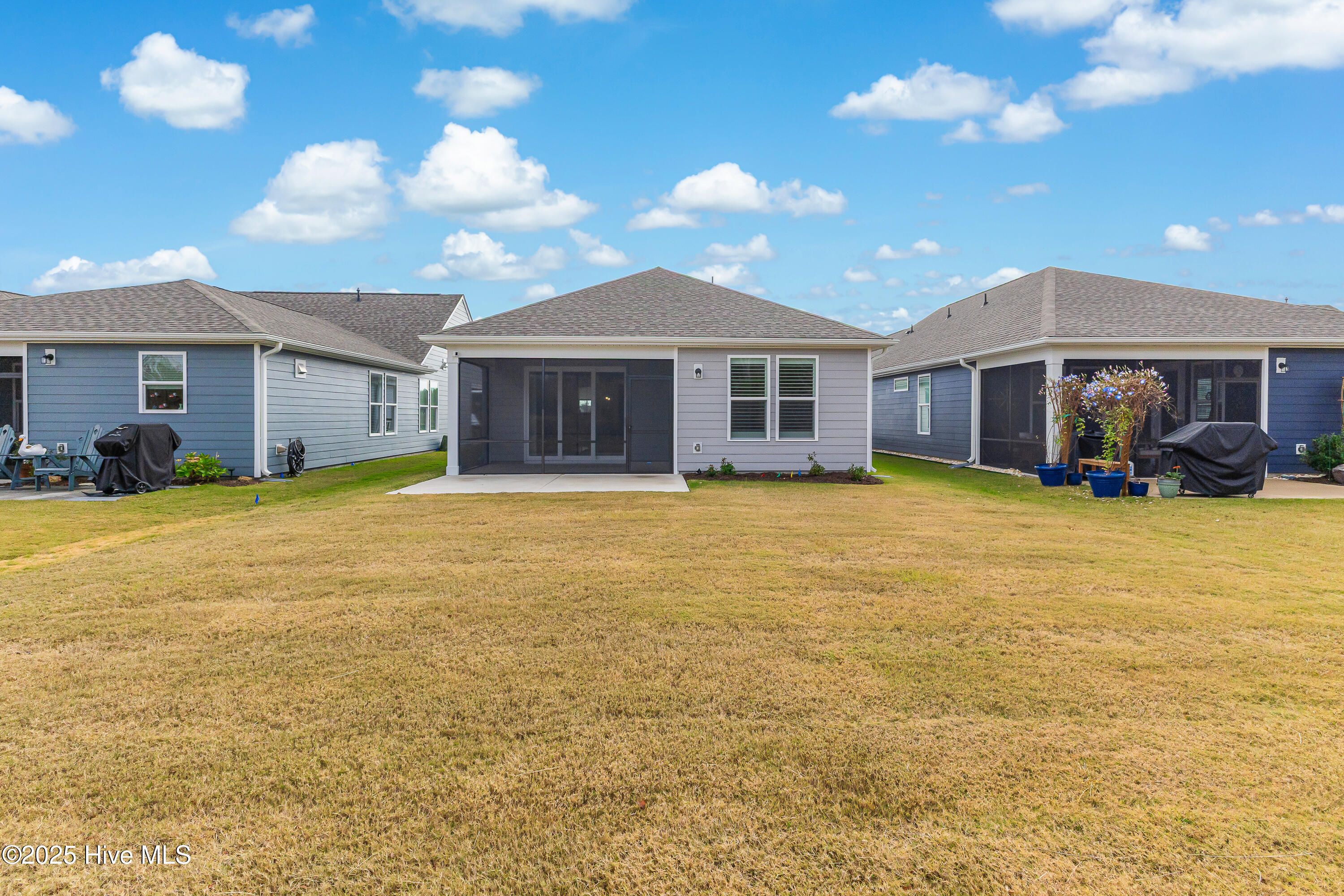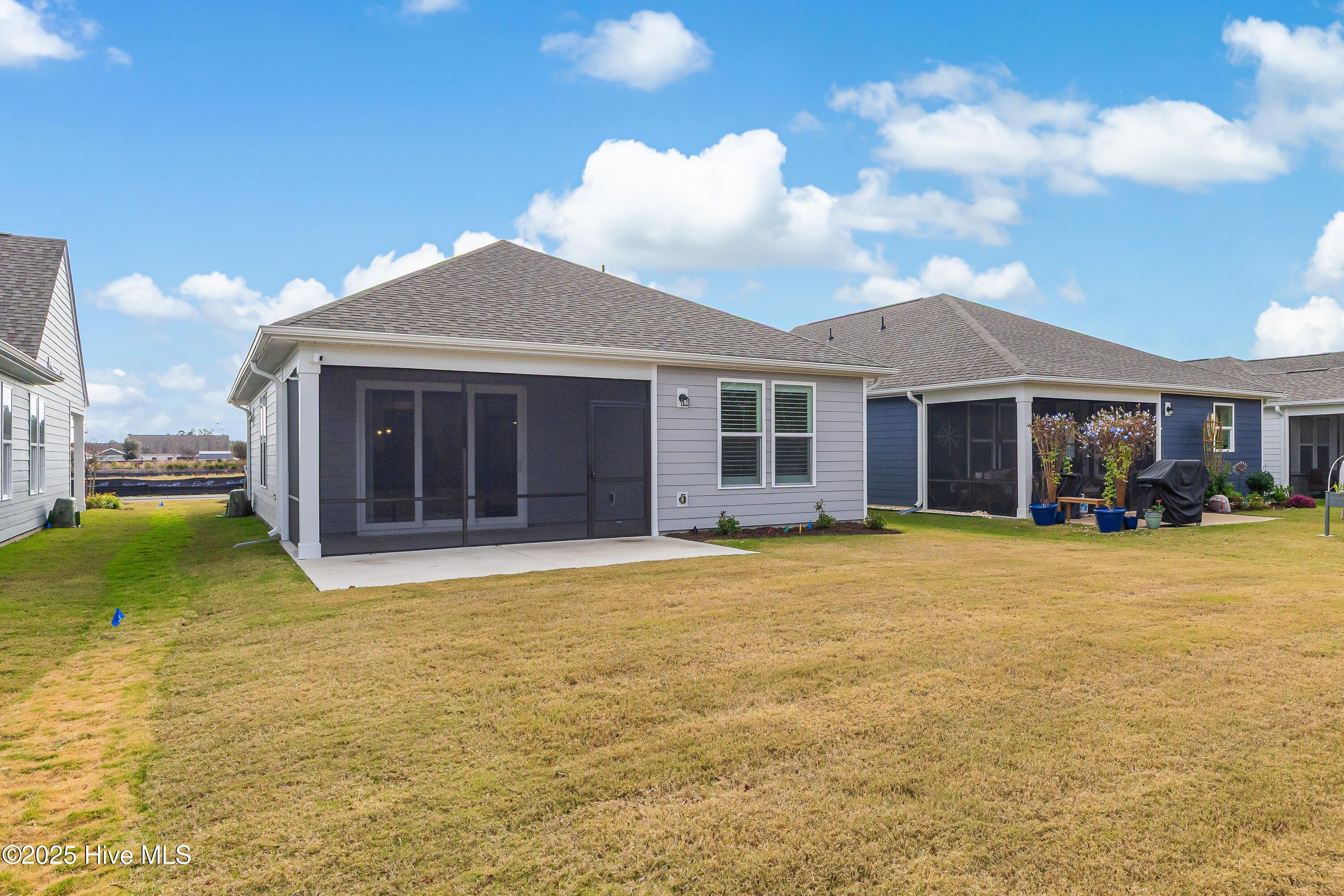 Why wait for one to be built when you can enjoy it now!? Looking for a 55+ community? Welcome to the beautiful, new and sought-after Del Webb at Mallory Creek community in Leland. This bright, open-concept floorplan provides amazing room for entertainment that flows from the front door into the kitchen, dining and living room before heading out into the screened-in patio. The triple panel sliding door allows for maximum breeze during the cooler months. Beautiful upgrades throughout, including newly installed plantation shutters and custom shades. The backyard is surrounded by green trees and a retention pond that allows you to enjoy the outside as well as the inside. In the heart of Leland and only a few minutes to Wilmington and area beaches - it's all about location, location, location.