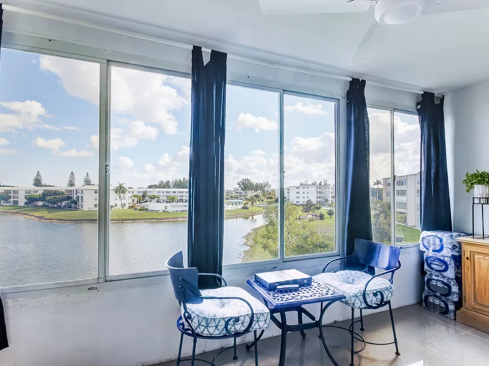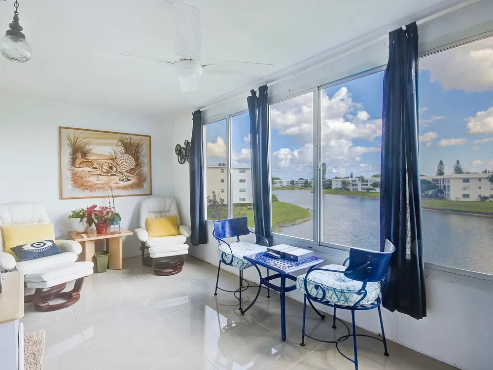 PRICE IMPROVEMENT! MAKE THIS YOUR NEW HOME! THIS CLEAN 2/2 HAS AMAZING WATERFRONT VIEWS. ENJOY YOUR COFFEE ON THE LANAI OR IN THE BRIGHT UPDATED OPEN CONCEPT LIVING AREA. THE BRIGHT KITCHEN HAS QUARTS COUNTERTOPS. AN UPDATED BLADELESS CEILING FAN IS ABOVE THE DINNING TABLE. MOST OF FURNITURE/HOUSEHOLD ITEMS WILL STAY. THERE ARE TWO POOLS CLOSE BY ALONG WITH THE CLUBHOUSE. THE COMMUNITY HAS WEEKLY MOVIES, A GYM, CARDS, BILLARDS, AEROBICS, YOGA, DANCING AND MORE. ALSO, JUST MINUTES FROM SHOPS RESTAURANTS AND PBI AIRPORT. SCHEDULE A SHOWING TODAY!