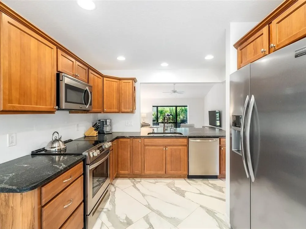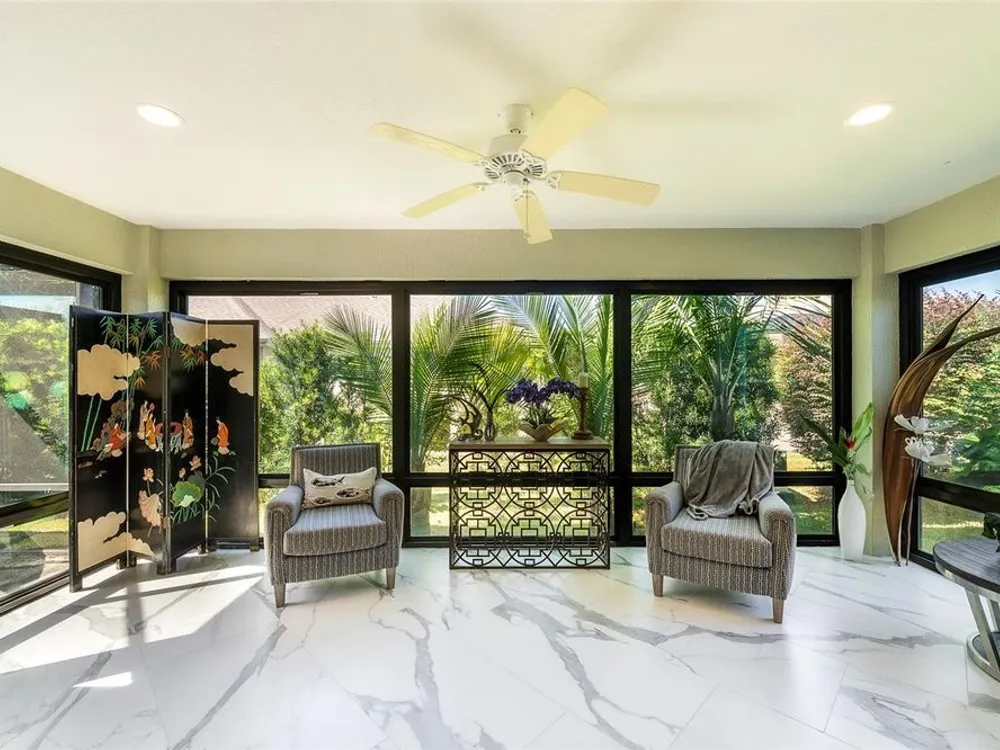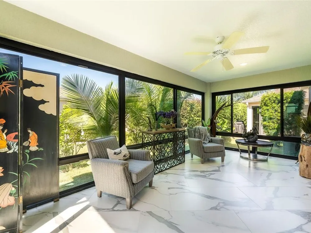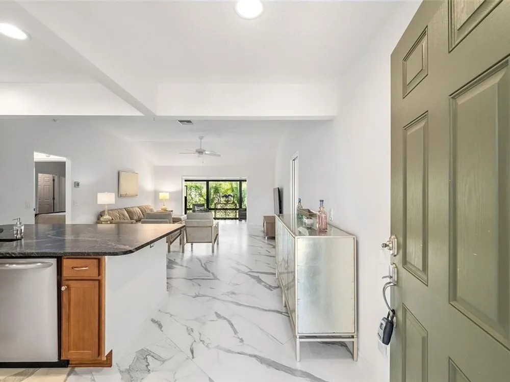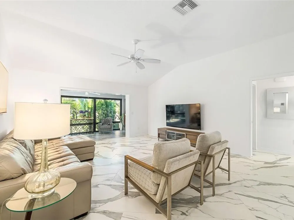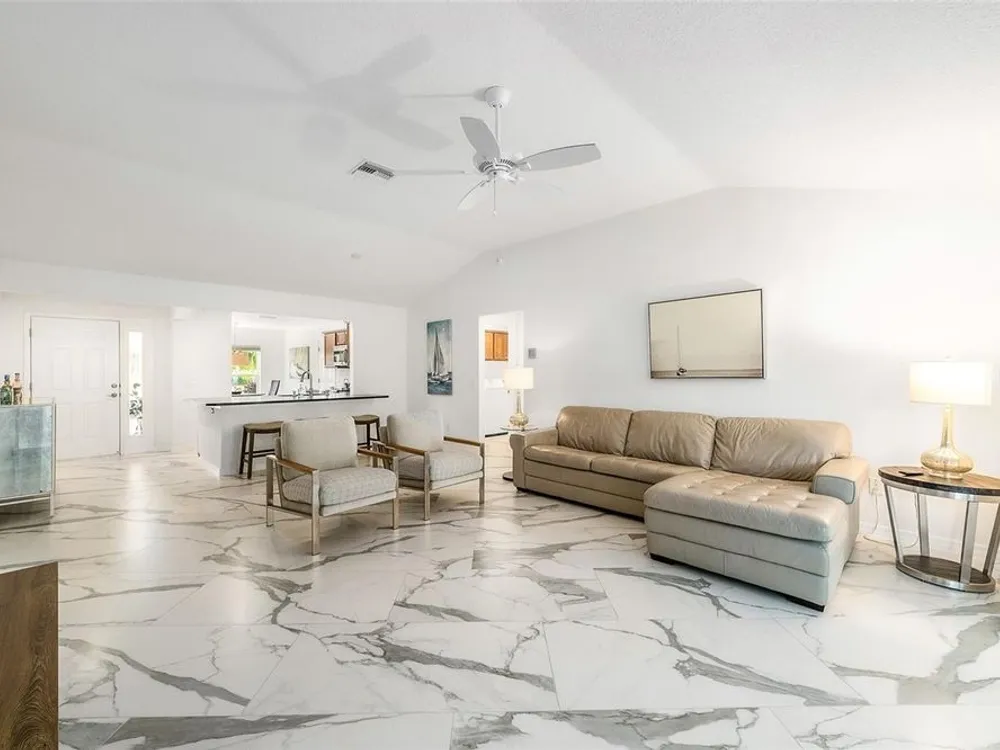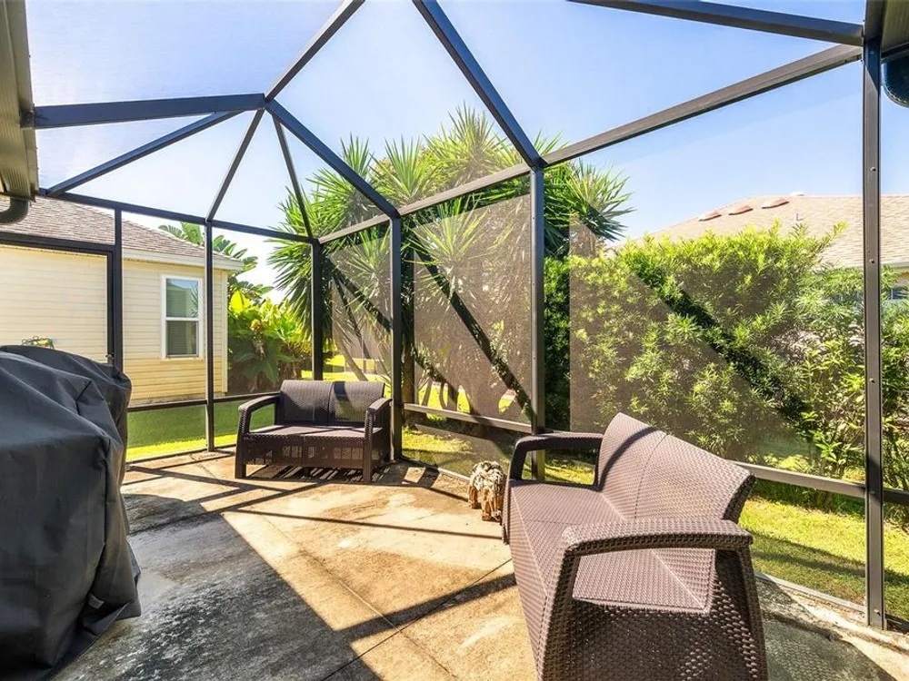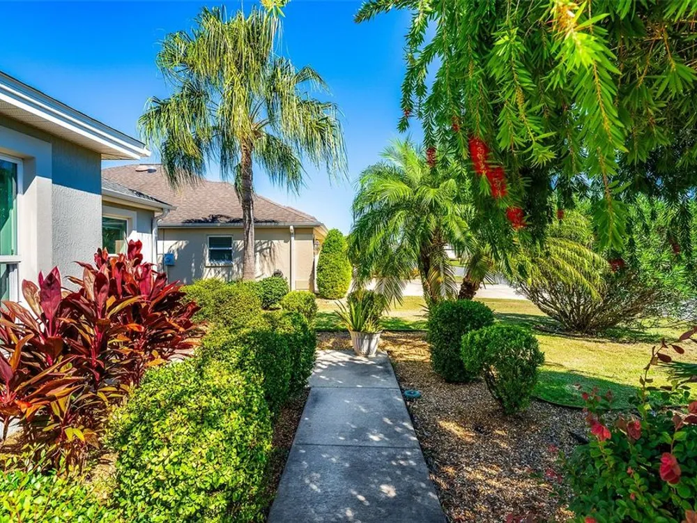 Beautifully updated 3-bedroom, 2-bath home in The Village of Dunedin, ideally located near Brownwood Paddock Square. Surrounded by lush tropical landscaping, this property offers rare privacy and resort-style ambiance. Inside, you’ll find custom tile flooring, a bright, open layout, and a 200 sq ft Florida Room that’s enclosed and under air—adding extra living space not reflected in the MLS square footage. The kitchen features quality cabinetry, a cozy dinette area, and a custom bar-height countertop perfect for entertaining. The split-bedroom floor plan provides privacy for guests, and both bathrooms are tastefully updated with modern finishes and a walk-in shower. Enjoy indoor-outdoor living with a screened birdcage patio, ideal for relaxing or entertaining year-round. Additional features include: • 1,589 sq ft under air + 200 sq ft bonus area • Custom thermopane windows in Florida Room • Garage with epoxy flooring & pull-down attic stairs • Turn-key and move-in ready • Indoor laundry room • Concrete block stucco construction • Bond paid-in-full. This home is in excellent condition and located in one of the most desirable neighborhoods in The Villages—close to golf, recreation, shopping, dining, and nightly entertainment at Brownwood Paddock Square. Make plans to visit this great home today!
