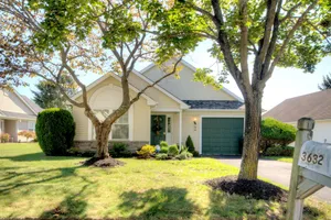 Spacious 2 Bedroom 2 Bathroom Rancher located in the desirable 55+ Adult Active Community of Lakeridge. Great single level living layout with vaulted ceilings in the dining area and living room and beautiful white shutter which are included. This home has been very well maintained with many new windows allowing for nice natural lighting throughout. There is a large eat-in kitchen with the refrigerator included, a gas range, dishwasher and refinished cabinets. Atrium doors in the living room lead to the patio and back yard. You will love the Primary bedroom with ensuite bathroom and a nice sized walk in closet with ample storage . The roof was replaced around 2021 and a newer hot water heater around 2023. The heater and central air were replaced around 2017 and a new thermostat replaced around 2024. The solar panels are leased. There is a newer garage door opener and convenient inside access from the garage. The driveway allows for 2 car parking plus street parking as well. Nicely landscaped yard with sprinkler system. The laundry room has plenty of room for storage and the washer and dryer are included. This is a very vibrant amenity rich active community with much to offer and plenty of activities to do!
