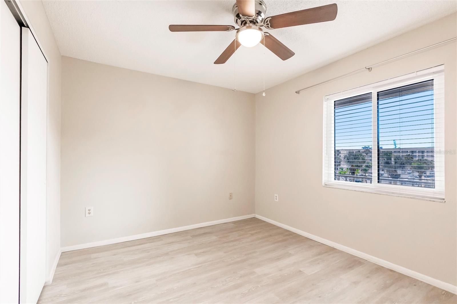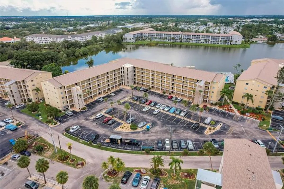 BRING ALL OFFERS! MOTIVATED SELLER! $10,000 PRICE IMPROVEMENT! Seller will provide a 13 mos. CHOICE ULTIMATE Home Warranty for your peace of mind! With a panoramic view of the 19-acre Lake Bayshore, this updated 2b/2b, split bedroom plan in a 55+ community, is a must-see and priced to sell! It boasts major updates like impact resistant sliders and windows, a newer A/C installed in 2021, and luxury vinyl plank throughout. The light, bright kitchen has recently installed quartz countertops, stainless steel deep sinks and faucet, with updated ceiling and white appliances. The passthrough to the dining room is adorned with a quartz breakfast bar. The spacious dining room/living room combo is flanked by a custom slider leading you to the huge screened balcony from where you can feast your eyes on the morning sunrise over Lake Bayshore. You will also enjoy the lake view from the primary bedroom, which not only has a large walk-in closet but also an ensuite bath and private office nook. Another custom slider provides easy access from the primary bedroom to the private laundry closet on the balcony which houses a newer Samsung washer and dryer and something that is a rarity in most condos – a utility sink!!! Both baths have updated vanities and toilets. Modern fans have been installed in the kitchen, living room, both bedrooms and screened balcony. Enjoy a day of fishing from the pier or kayaking on the lake. Talk about LOCATION, LOCATION, LOCATION … in addition to this spectacular view, the unit is located just two doors from the elevator with an assigned parking spot in near the front of the building (see photo) and close to the pool & clubhouse. Bayshore on the Lake is a friendly, amenity rich, active 55+ community in the heart of Bradenton, close to shopping, restaurants, the beaches of Anna Maria Island, downtown Sarasota, UTC Mall, the Ringling Museum, the Asolo Theater and the Manatee Players. Monthly condo fee includes heated pool, clubhouse, shuffleboard, internet, basic cable tv, trash, exterior and grounds maintenance, building insurance, and management company. Sorry no pets except for support animals (condo approval required). All dimensions are approximate. Schedule your private showing today!