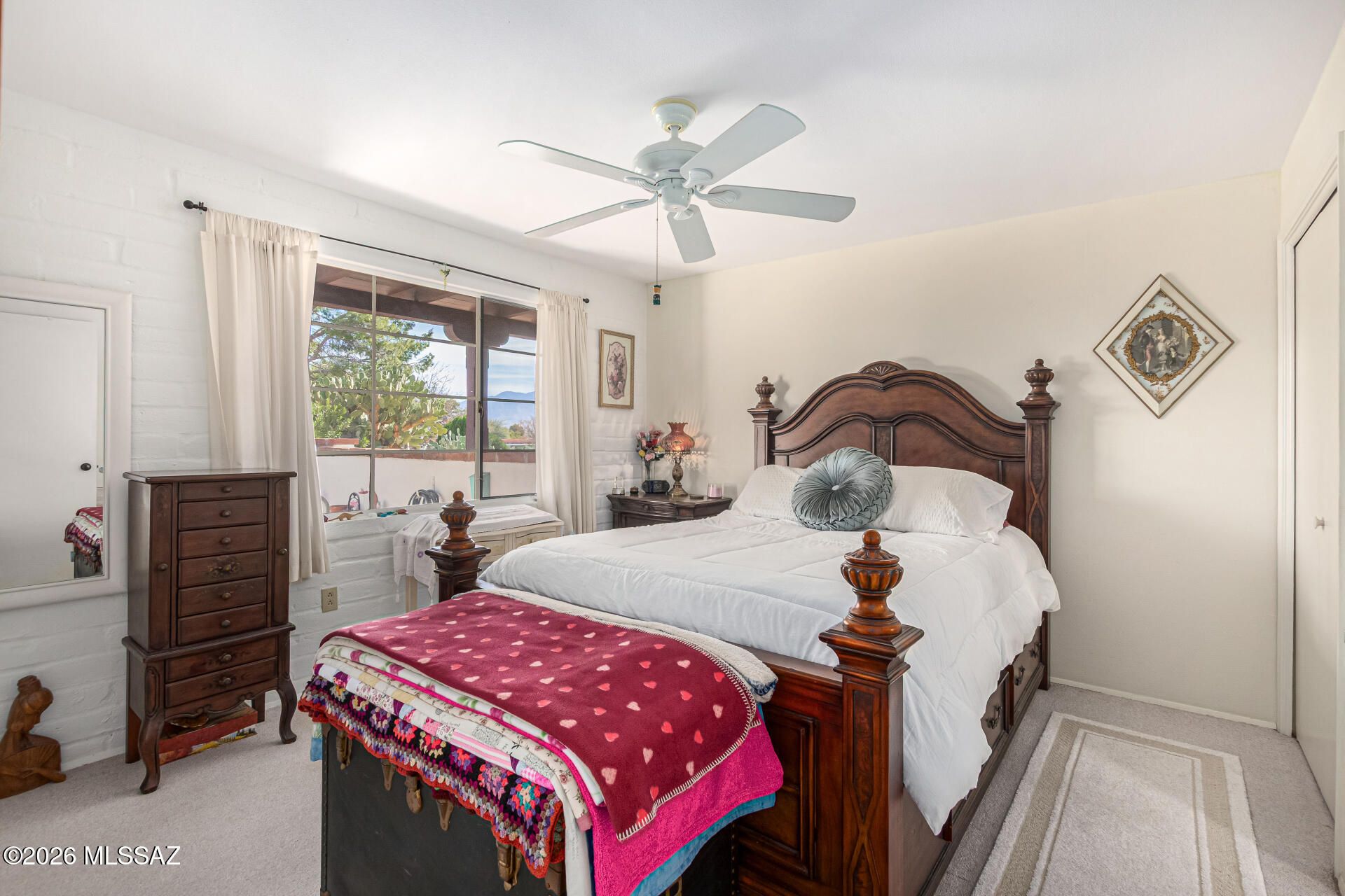 Wake up to mountain views from your bedroom in this character-rich villa. White painted brick accent wall anchors the living space, while Spanish tile flows through the kitchen and dining area. Neutral Berber carpet in bedrooms and living room. Clean, well-maintained, and move-in ready.Efficient kitchen with good counter space and storage. Plenty of natural light throughout. Steps to community pool and laundry facilities. East-facing location perfect for morning light and those mountain views.This is the one that feels like home before you even walk in.