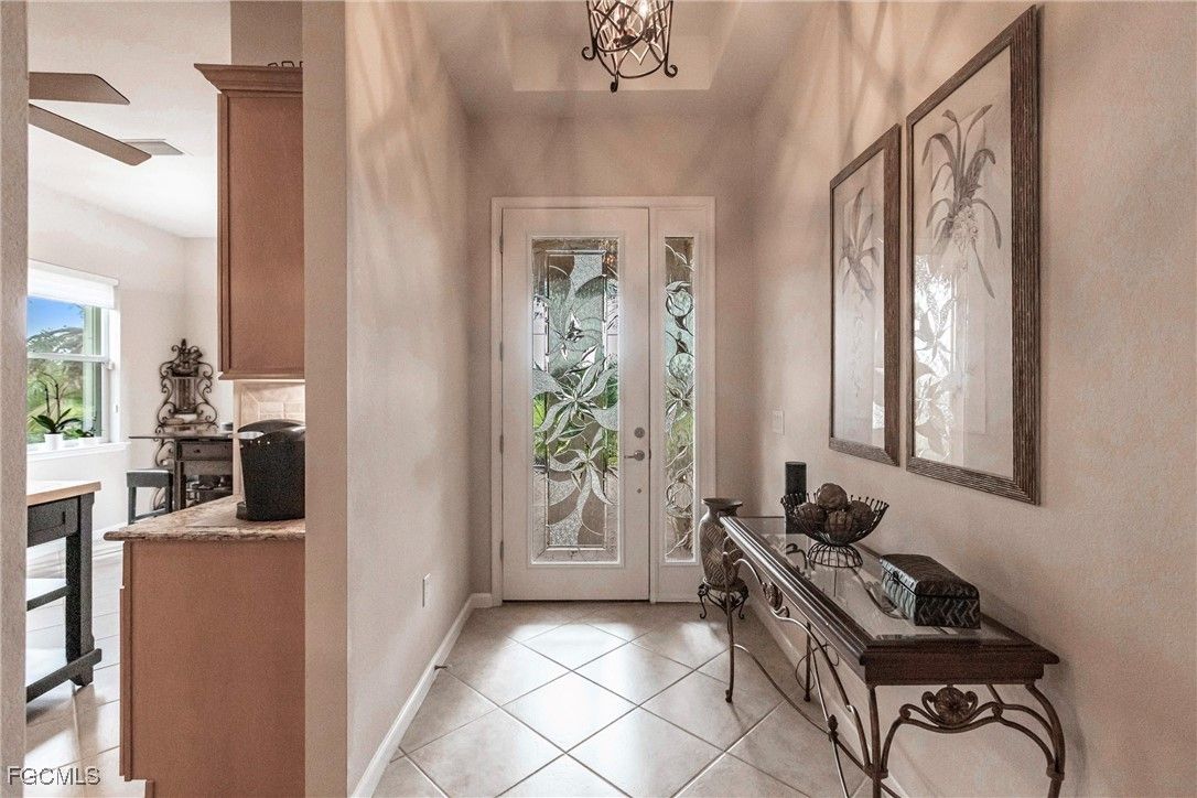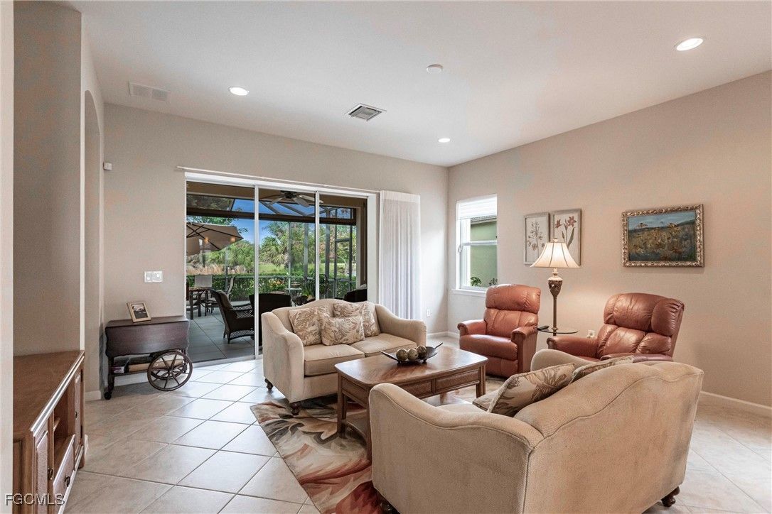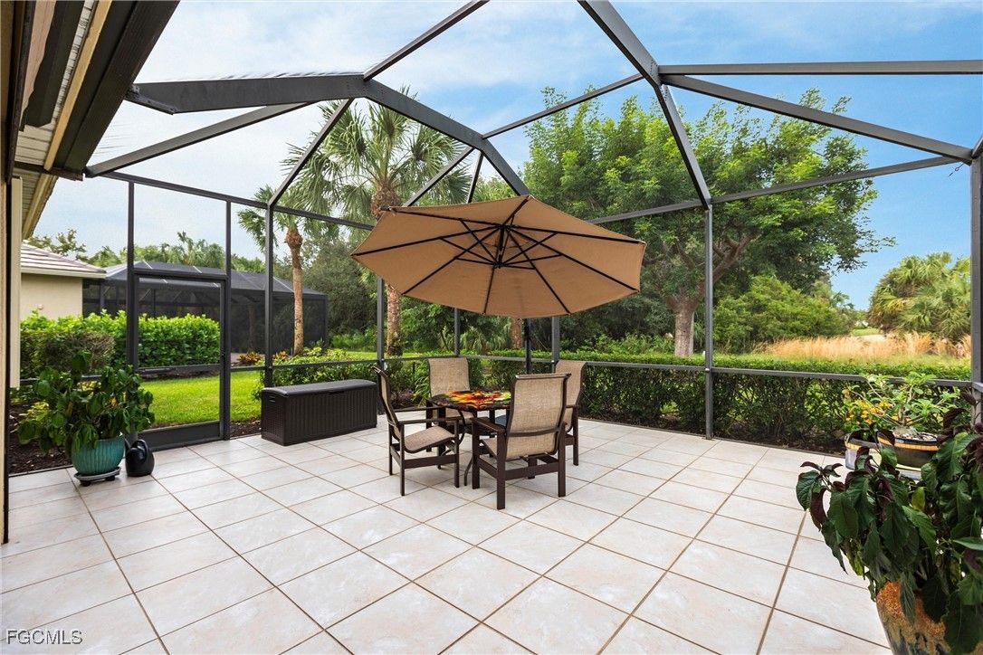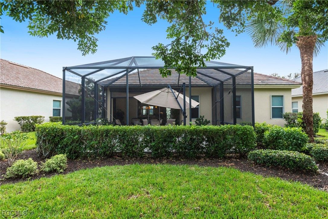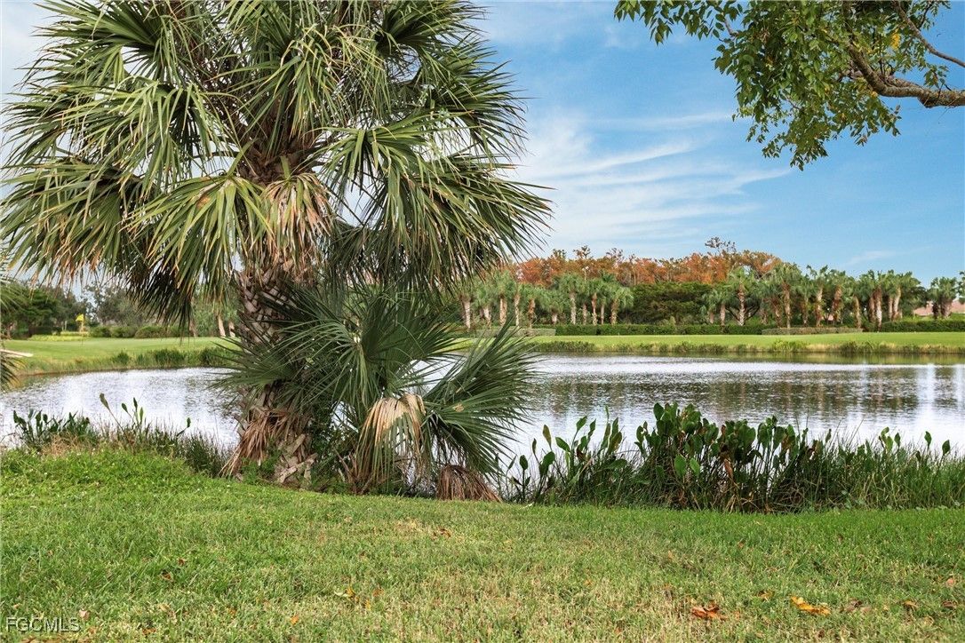 Welcome to this meticulously maintained 3-bedroom, 2-bathroom single-family home, the Pergola by Centex; situated in the highly sought-after gated Verandah Community in Fort Myers, FL. This property boasts serene lakefront and golf course views from the expansive and extended screened lanai, fully tiled with a desirable eastern exposure, ideal for relaxation and entertaining. Upon entering, you are greeted by elegant high ceilings and tile flooring throughout, creating a stylish and inviting living space. The front door with a stunning glass insert sets the tone for the home. The property features a brand new water heater, and the newer A/C unit is regularly serviced for optimal performance. The heart of the home is the spacious kitchen, complete with granite countertops, 42” cabinets, newer appliances, a pantry, and a cozy breakfast nook. Storm shutters are installed throughout the property for added peace of mind. The 2-car garage boasts epoxy floors and overhead racks for additional storage. This stunning home offers a fantastic lifestyle opportunity with access to all Verandah amenities, including the clubhouse, multiple restaurants, resort-style pool, walking and biking trails, tennis courts, bocce, pickleball courts, fitness center, kayaks for use on the Orange River, dog park, play area, and a full social calendar and class schedule. Verandah also features two Championship Golf Courses designed by Jack Nicklaus and Bob Cupp. Do not miss the opportunity to own a piece of paradise in this desirable community. Priced to sell, this home is a must-see! Experience the best of Florida living today!