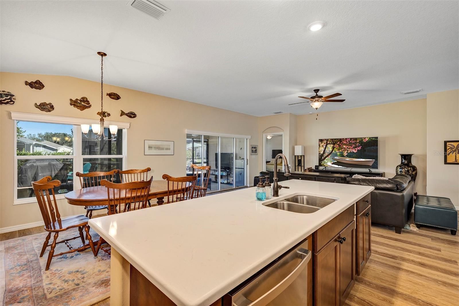 Live the Lifestyle You've work hard for and Deserve at Arlington Ridge Start living the dream in the highly sought-after Arlington Ridge Active-Adult, Guard Gated, Golf Community, where life feels like a vacation every day with resort-style amenities, This beautiful 3-bedroom, 2-bath pool home with a 2-car garage plus golf cart garage was built in 2021, It is designed for low -maintenance, comfort and making new memories. Step inside and feel the openness of a Low-Maintenance, modern, light-filled open floor plan home— with luxury vinyl plank and tile flooring, soaring ceilings, and a seamless flow between the great room, dining area, and kitchen. kitchen, features quartz countertops, wood cabinetry, tile backsplash, under-cabinet lighting, and stainless-steel appliances, that stay and bar-top island with additional dining space — perfect for everyday living or entertaining friends. Just beyond the sliding doors, your private outdoor oasis awaits. Dive into your 20’ x 12’ heated saltwater pool for year-round swimming, relax under the covered, screened lanai, or host evening BBQs with friends under the Florida stars. Pool area features motorized privacy screens. The master suite is complete with dual vanities, a Roman walk-in shower, and a spacious walk-in closet. This energy efficient home features double-pane Low-E windows, foam-filled block insulation, upgraded insulation package and a radiant heat barrier in the attic to help keep your utility costs low. Enjoy low-maintenance living with an HOA of only $123/month, which includes basic lawn care, 24-hour guard service, cable TV, and high-speed internet. At Arlington Ridge, you’re not just buying a home — you’re embracing a new care-free lifestyle. Spend your mornings on the championship golf course, afternoons socializing by one of the two resort-style pools, and evenings with friends at the Chesapeake Bar & Grill or Tavern for dinner, live music, karaoke, billiards or watching games in a smoke-free sports-bar atmosphere. Stay active with lighted bocce ball, tennis and pickleball courts, a modern fitness center, library, card room, billiards, large gathering hall for bingo, dancing or live shows and even a community cinema. Best of all, no social or golf membership is required to access amenities — sidewalks are throughout the community and it's a golf-cart friendly community. new friends and fun are built into the community. Conveniently located 5 minutes from grocery stores, restaurants, banks, medical facilities, and a public boat ramp and fishing docks on a 15,000-acre lake, 20 minutes to mall and chain restaurants, you’ll have everything you need just minutes away, 45 minutes to major theme parks, Orlando professional sport venues & airport, 90 minutes to either Daytona Beach or the Gulf of Mexico and Tampa Hardrock casino and professional sporting events. Don't wait until summer to purchase a pool home as you'll pay more and be competing with other buyers. BOND IS PAID OFF IN FULL!