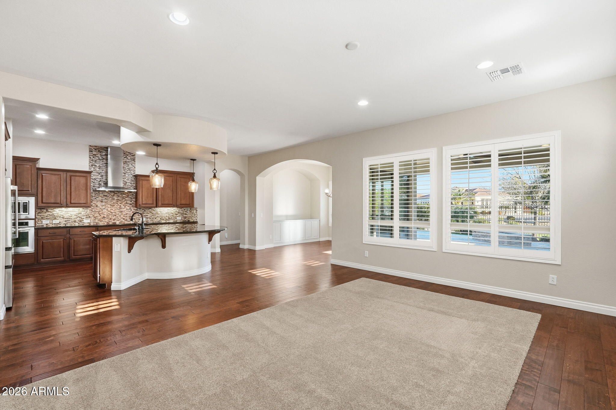 Immerse yourself in luxury in this stunning Genova model in the resort community of Encanterra, with solar and a private, premium homesite. The open floorplan features gorgeous hardwood floors and brand new paint throughout, plus a chef's kitchen with granite countertops, wall oven, massive center island, and built in surround sound. The spacious primary suite offers an upgraded bath, and two additional bedrooms are perfect for guests or a home office. Step outside to a beautifully landscaped yard with gas fireplace and hot tub, ideal for Arizona evenings. Enjoy Encanterra's world class amenities including dining, spa, pools, fitness, golf, tennis, pickleball, and a full social calendar.