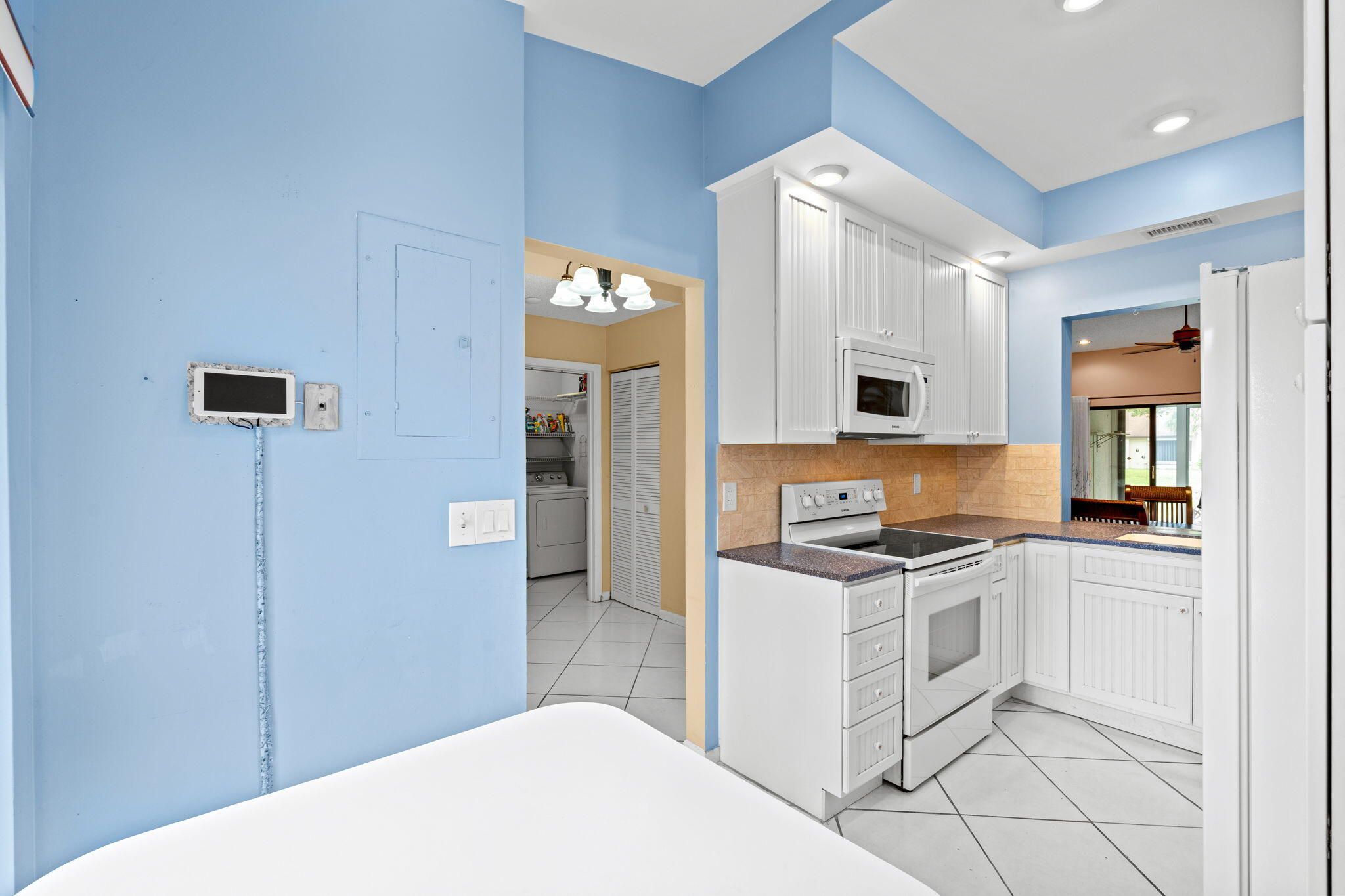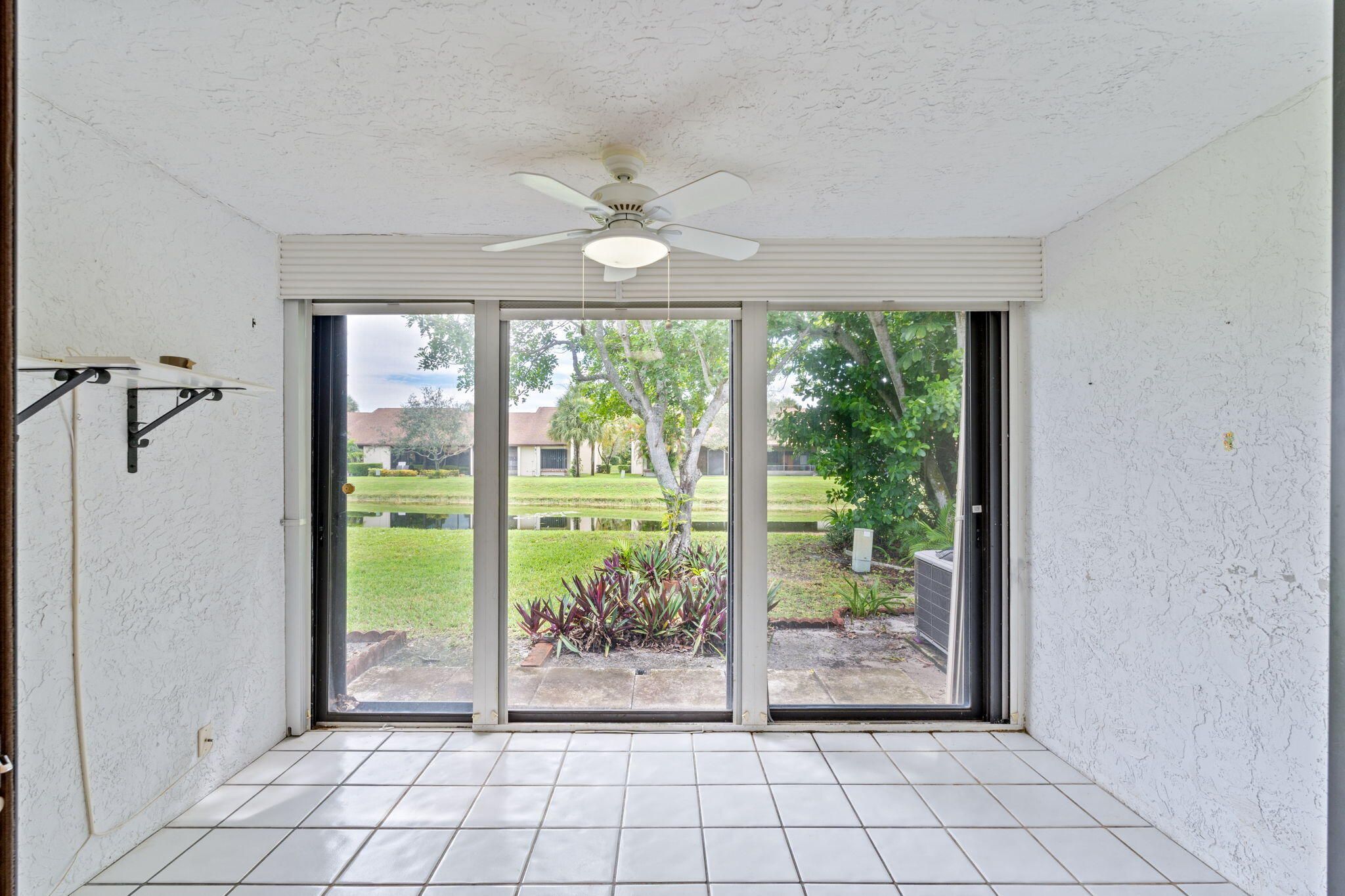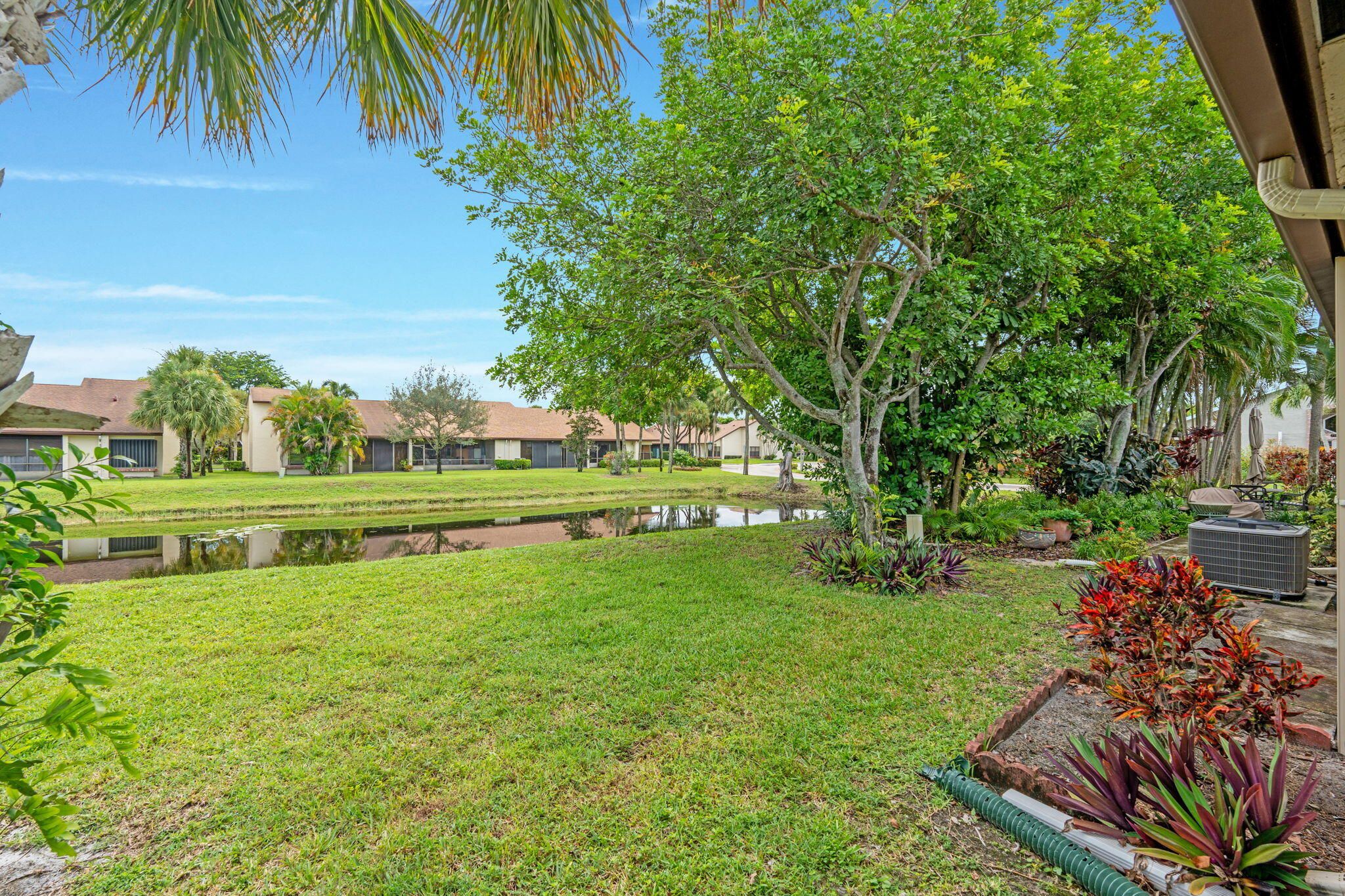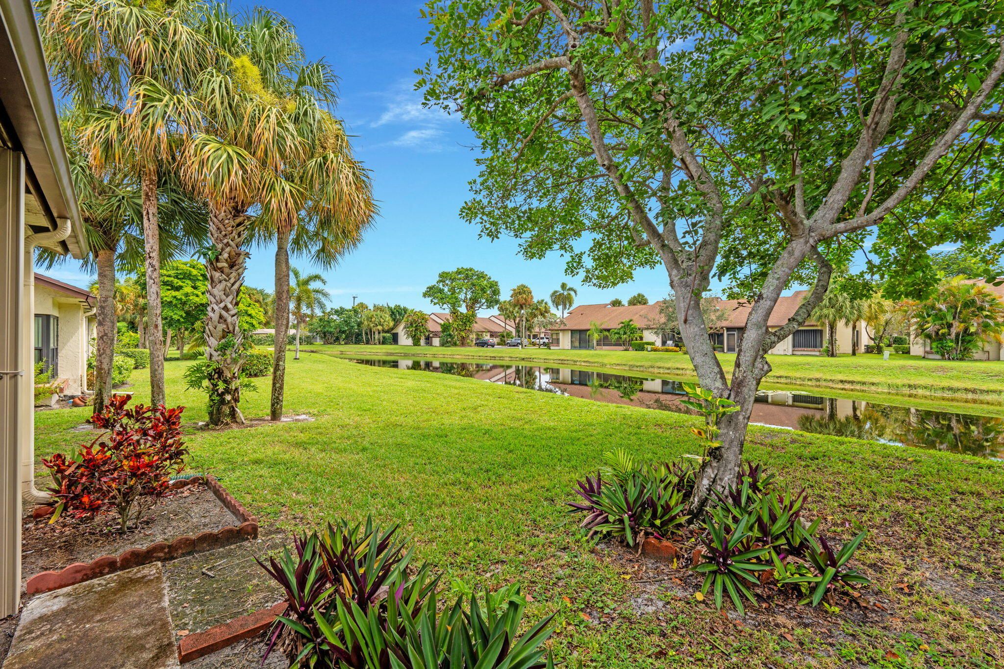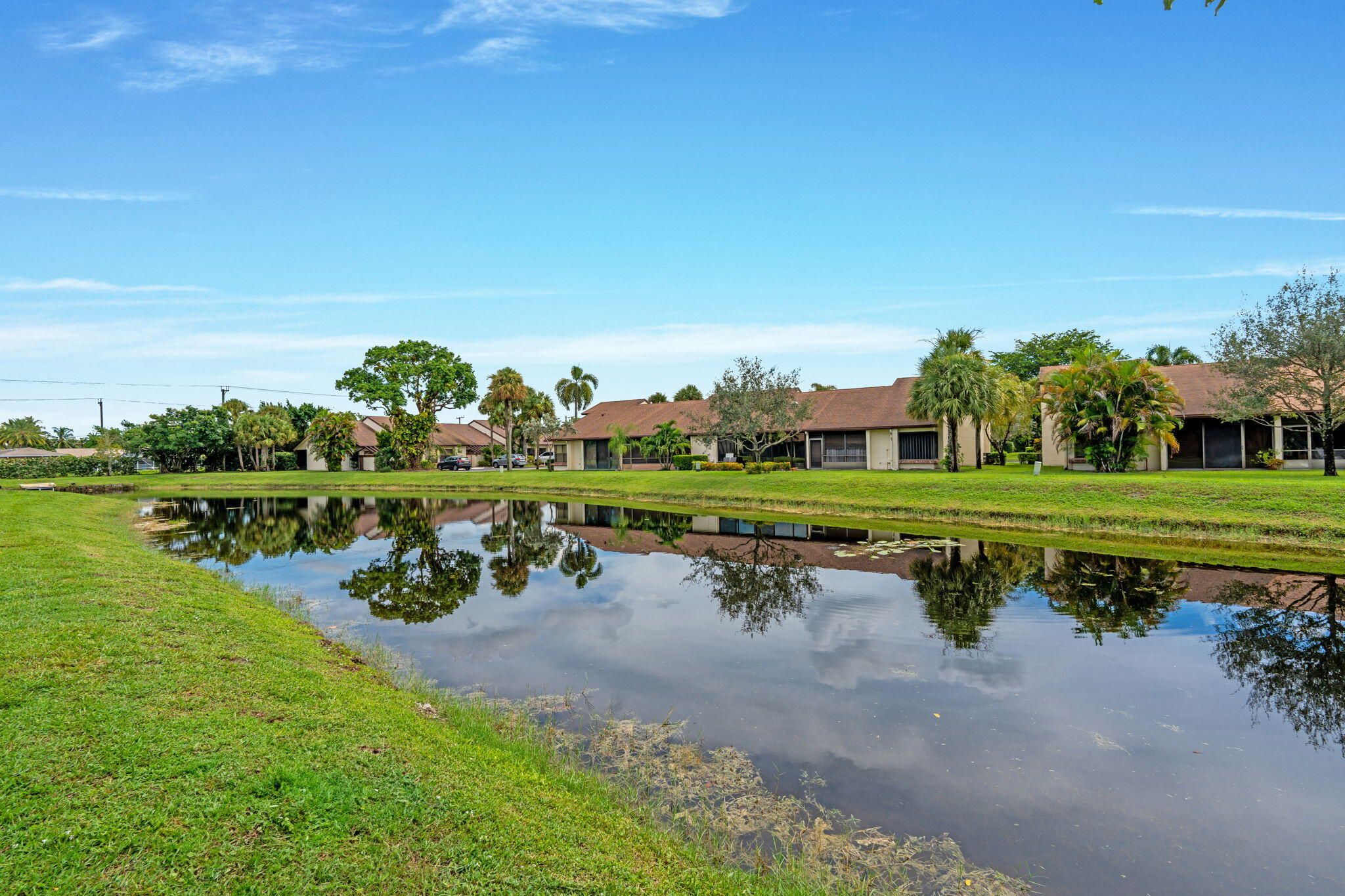 Offering a generous layout, this 2-bedroom, 2-bath villa in a 55+ community features a recently redone kitchen with newer appliances and a convenient pass-through window to the dining area. Vaulted ceilings and a thoughtful split-bedroom design provide plenty of living space for relaxing and entertaining. The master suite includes a walk-in closet, an additional closet, and a spacious walk-in shower, while the second bath offers a tub/shower combo.Enjoy a cute entry patio for morning coffee and a glassed in back patio with water views and attractive landscaping. Additional highlights include a laundry room, ample storage space, two parking spaces, accordion shutters, and a security system for peace of mind. The community offers a wide range of amenities, including an on-site library