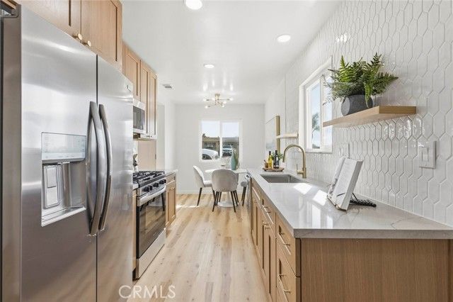 Step inside this beautifully remodeled Oceanside home and you’ll immediately feel it, that calm, coastal “I could really live here” feeling. Every inch of this 2-bedroom retreat has been thoughtfully redesigned with warmth, style, and comfort in mind. This isn’t just a remodel… it’s a reset. A Kitchen That Makes You Slow Down. The heart of the home is the stunning, light-filled kitchen. You’ll notice the custom hex-tile backsplash, warm wood cabinetry, quartz countertops with elegant veining, and modern open shelving that gives the whole space a designer feel. The kitchen flows effortlessly into the living room, so whether you’re cooking dinner or hosting friends, everything feels connected. A Living Room That Feels Like a Breath of Fresh Air. Soft natural light pours through the windows, highlighting the clean, modern lines and inviting color palette. The bathroom is a showstopper. Hand-patterned cement-style floor tile, brass fixtures, a walk-in shower with custom niche shelving, and a warm wood vanity give it a boutique-hotel vibe. It’s the perfect blend of modern, stylish, and practical. Both bedrooms offer plenty of natural light and a peaceful feel — perfect for sleeping, working from home, or creating a relaxing sanctuary. This home wasn’t just updated, it was thoughtfully reimagined for someone who values quality, comfort, and style. Every finish was selected to feel warm and welcoming, creating a home that’s as beautiful as it is livable. Nestled in a quiet 55+ Oceanside community just minutes from shopping, dining, parks, and a quick drive to the beach, this home offers the perfect mix of convenience and coastal lifestyle and ocean view from the front yard. If you’re looking for a turn-key home with soulful design, modern upgrades, and an inviting atmosphere that feels “just right” the moment you step in… 3648 Mira Pacific Drive is the one you don’t want to miss.