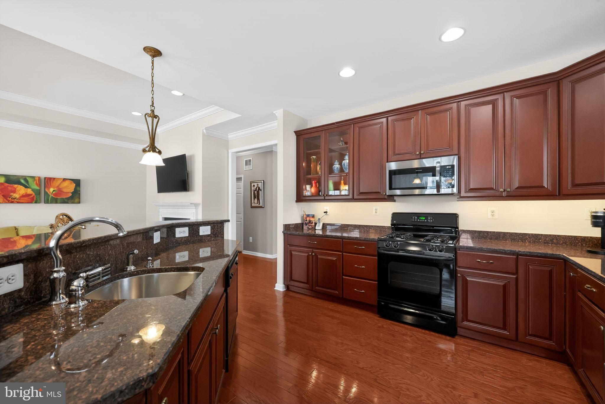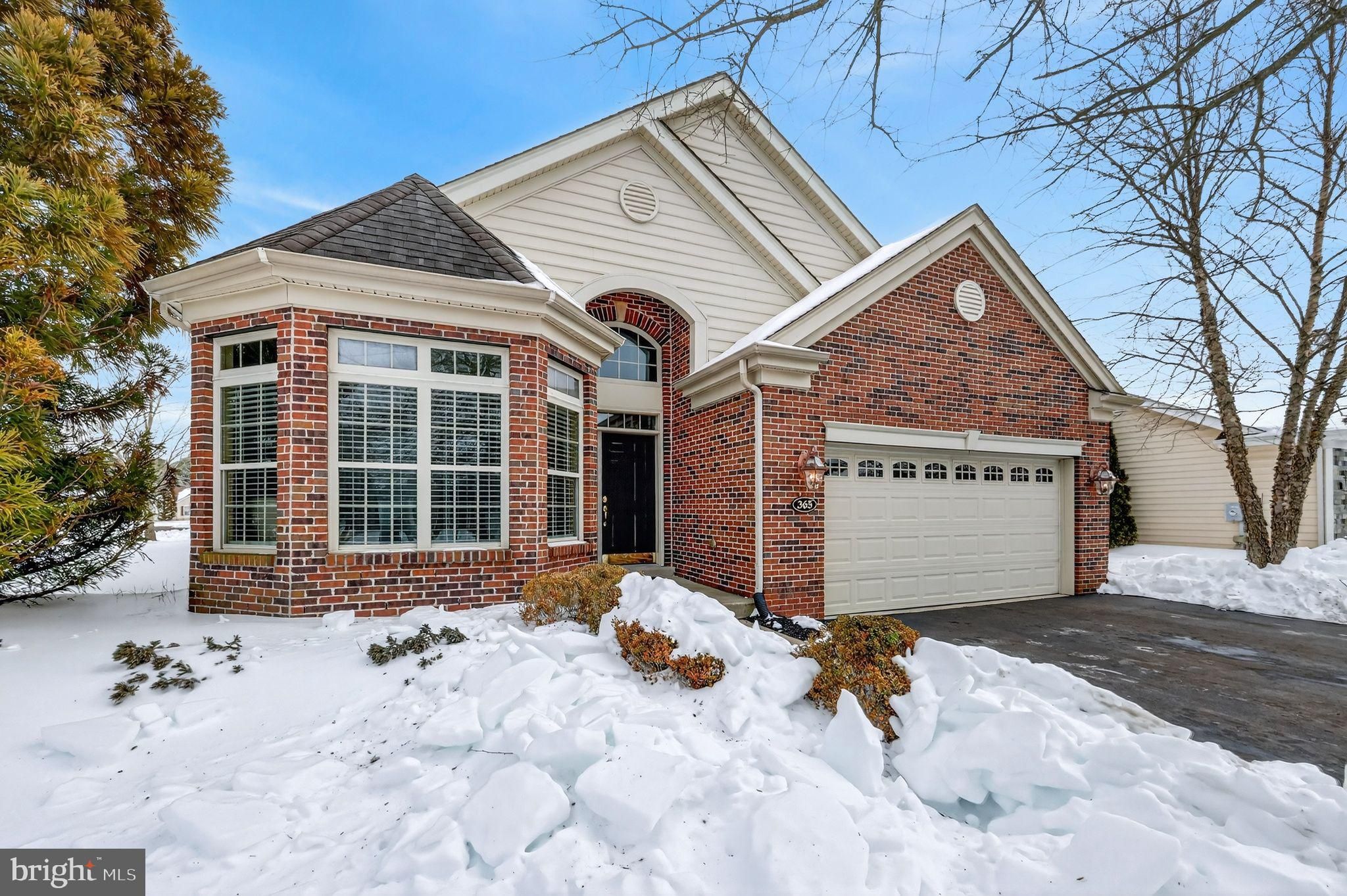 Welcome to Braddocks Preserve, a premier 55+ community where comfort, style, and low-maintenance living come together. This beautifully appointed 2-bedroom, 2-bath ranch offers an inviting open layout designed for both everyday enjoyment and effortless entertaining. Rich Brazilian cherry hardwood floors and elegant crown moldings set the tone throughout the main living areas. The open-concept living space flows seamlessly into a gourmet kitchen featuring a breakfast bar, updated appliances, and a sunny breakfast room—perfect for casual meals or morning coffee. The living room impresses with a tray ceiling, cozy gas fireplace, and direct access to the sunroom, creating a warm, light-filled retreat year-round. The primary suite is a peaceful escape with a bay window, tray ceiling, spacious walk-in closet, and a well-appointed primary bath offering dual vanities and a stall shower. A second bedroom and full bath provide ideal space for guests or a home office. Entertain with ease in the formal dining room, then step outside to relax on the brick patio, perfect for enjoying quiet mornings or evening gatherings. Additional highlights include a 2-car garage and access to exceptional community amenities, including a clubhouse and community pool. Enjoy an active, social lifestyle in a sought-after setting where everything you need is right at your doorstep. This is 55+ living at its finest.