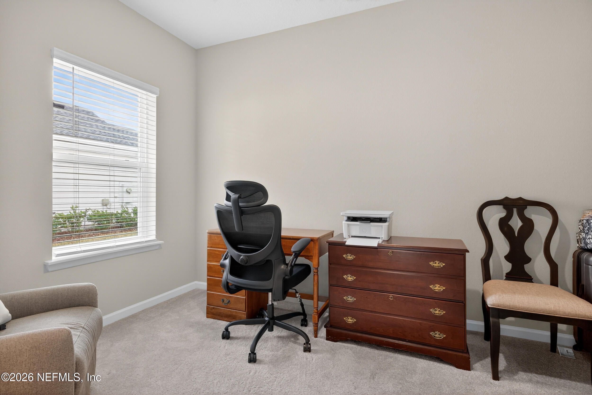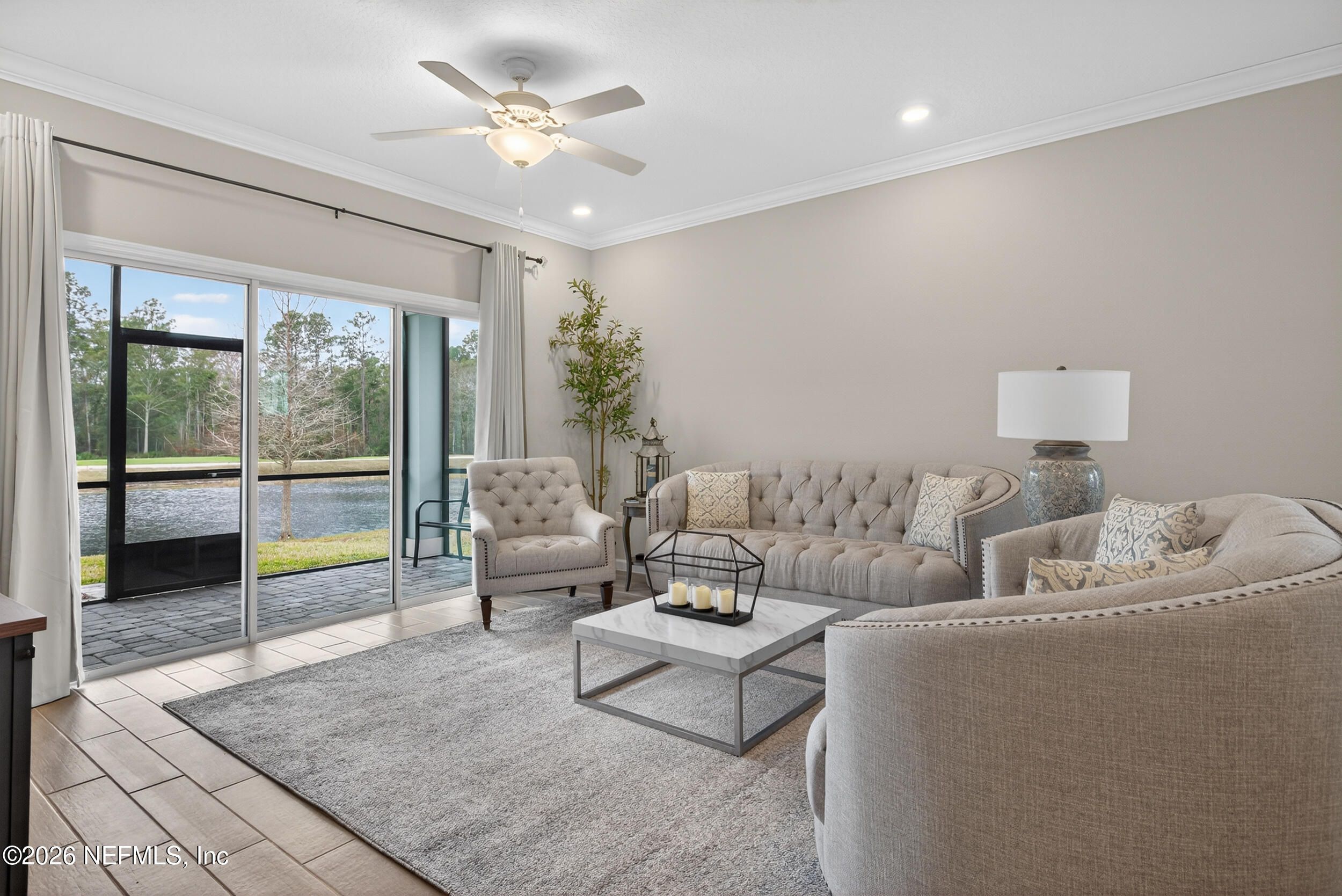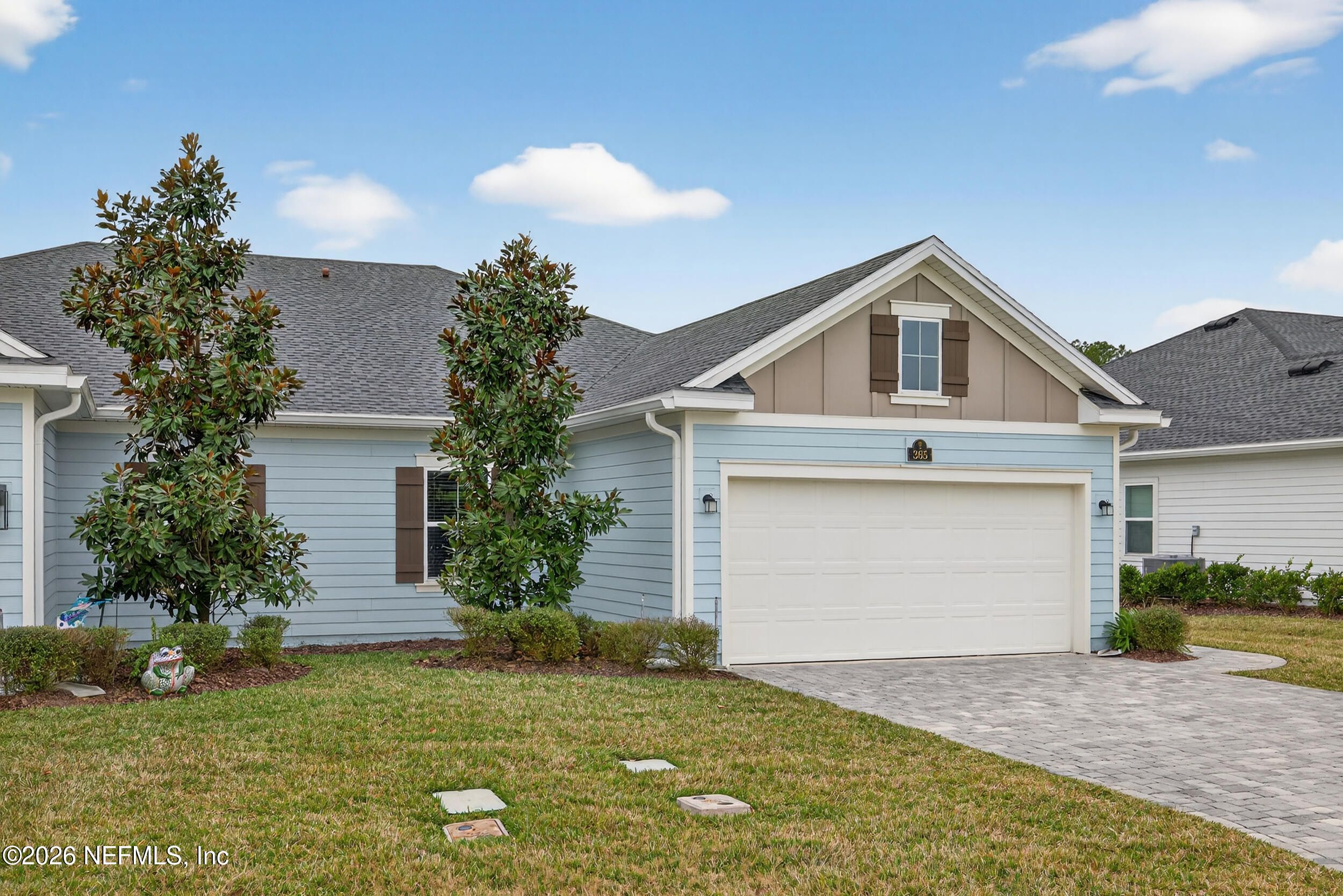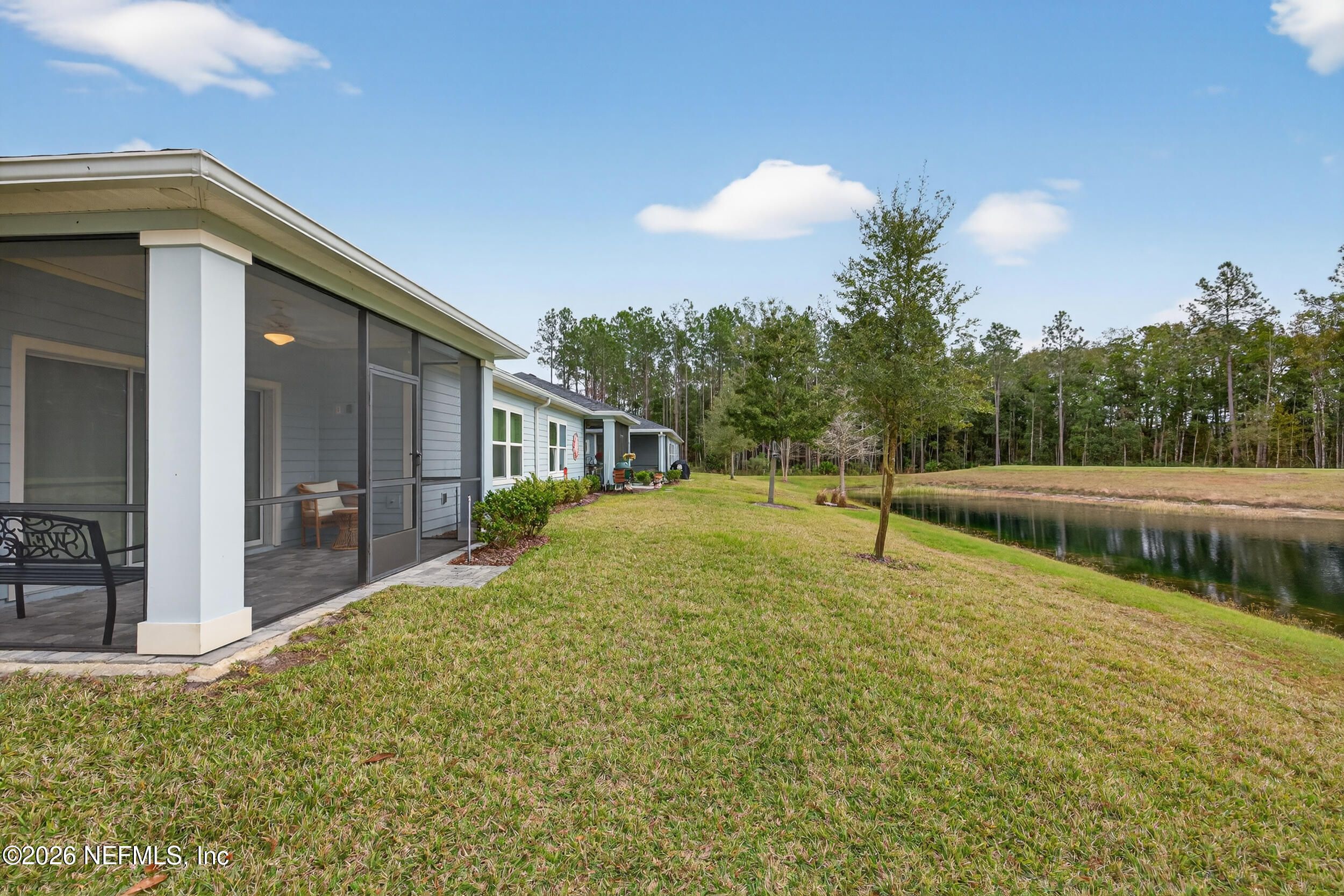 Welcome home to your dream villa in the 55+ Community of Stillwater. Built in 2021, This 2-bedroom, 2-bath home includes a dedicated office/flex room and an open-concept layout with crown molding, quartz countertops, wood-look tile flooring, a gas stove, walk-in pantry, and modern finishes throughout. The primary suite features a generous walk-in closet, double vanity, and walk-in shower. You'll love your peaceful pond and golf course views from your the screened lanai. The exterior includes Hardie siding, paver surfaces, and a spacious 2-car garage. Lawn care is included, and homeowners receive a golf membership with green fees at no additional cost. This gated 55+ community includes an 18-hole Bobby Weed-designed golf course, Toptracer practice facility, resort-style pool, fitness center, pickleball, tennis, bocce ball, and a clubhouse with dining, bar, and weekly events. Centrally located in St. Johns near shopping, dining, hospitals, and highways.