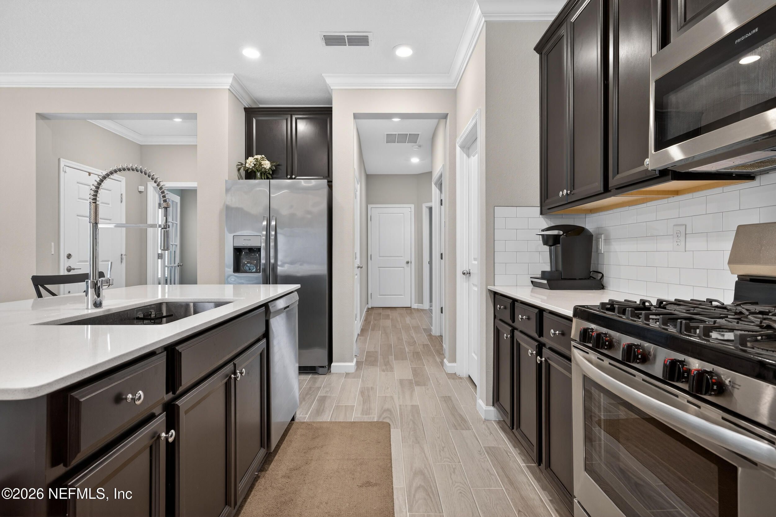 - Dishwasher, Disposal, Dryer, Gas Oven, Gas Range, Ice Maker, Microwave, Refrigerator, Tankless Water Heater