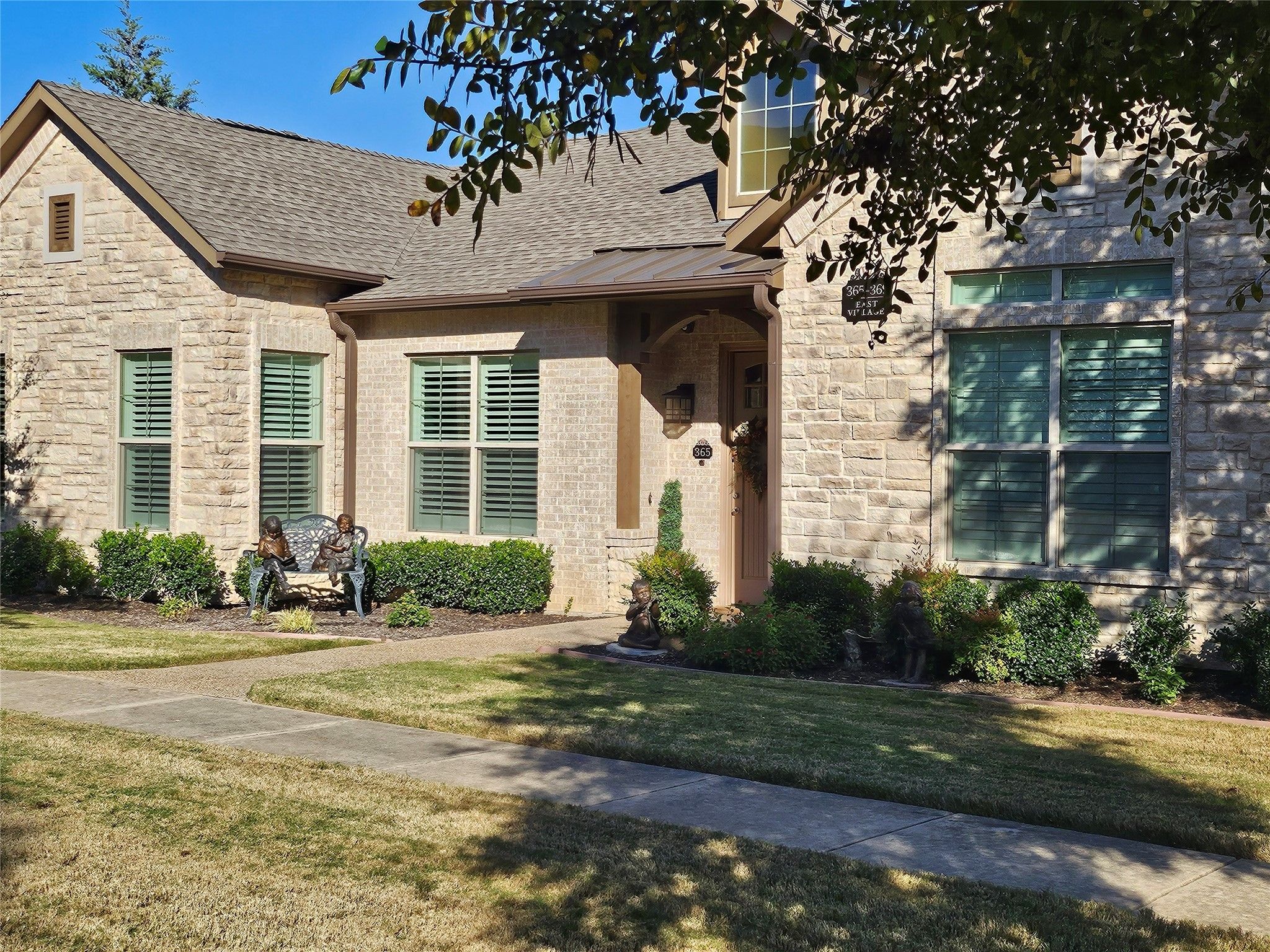 Luxury senior living single story villa located in east Village of Watermere at Southlake. This is an open floorplan with lots of windows and tall ceilings. The doors are all 8' and solid core. This villa has an elegant trim package, custom plantation shutters, and engineered wood floors thru out all the living areas. Both bedrooms have private ensuite baths and there is 1 half bath for guest off the kitchen. The study has built-in cabinetry, ceiling fan and french doors for privacy. The living area has 10' ceilings, cedar beams canx lights and a ceiling fan. There is a gas log fireplace with an electric starter. This is the smallest most open floorplan in Watermere. There is a 2 car attached oversized garage with cedar garage doors. The laundry room has built in cabinets. Residents enjoy a low-maintenance lifestyle with club membership included in the price. Membership provides access to resort-style amenities such as concierge services, security, golf, fitness center, water aerobics, scheduled activities and games! Dining in the casual cafe or large formal dining room. Experience the perfect blend of luxury, convenience and community living just minutes away from shopping, dining and more.