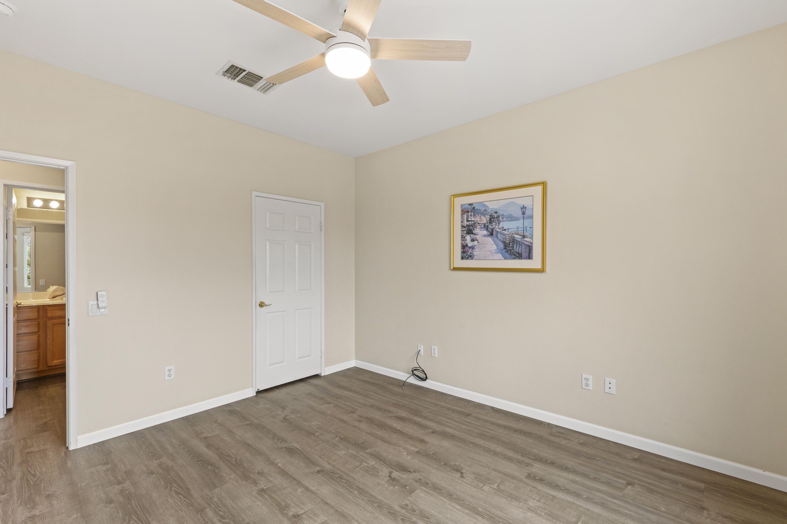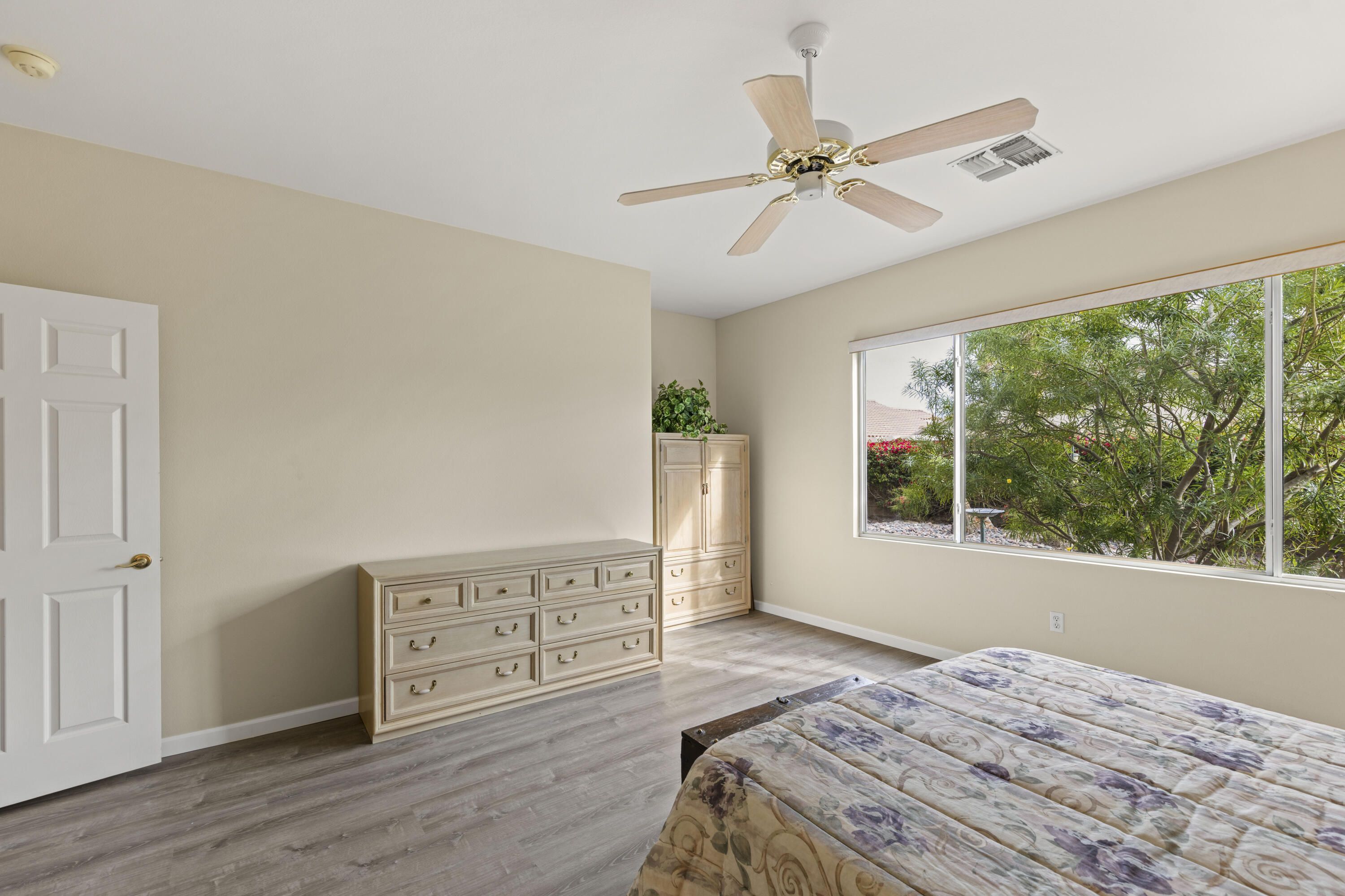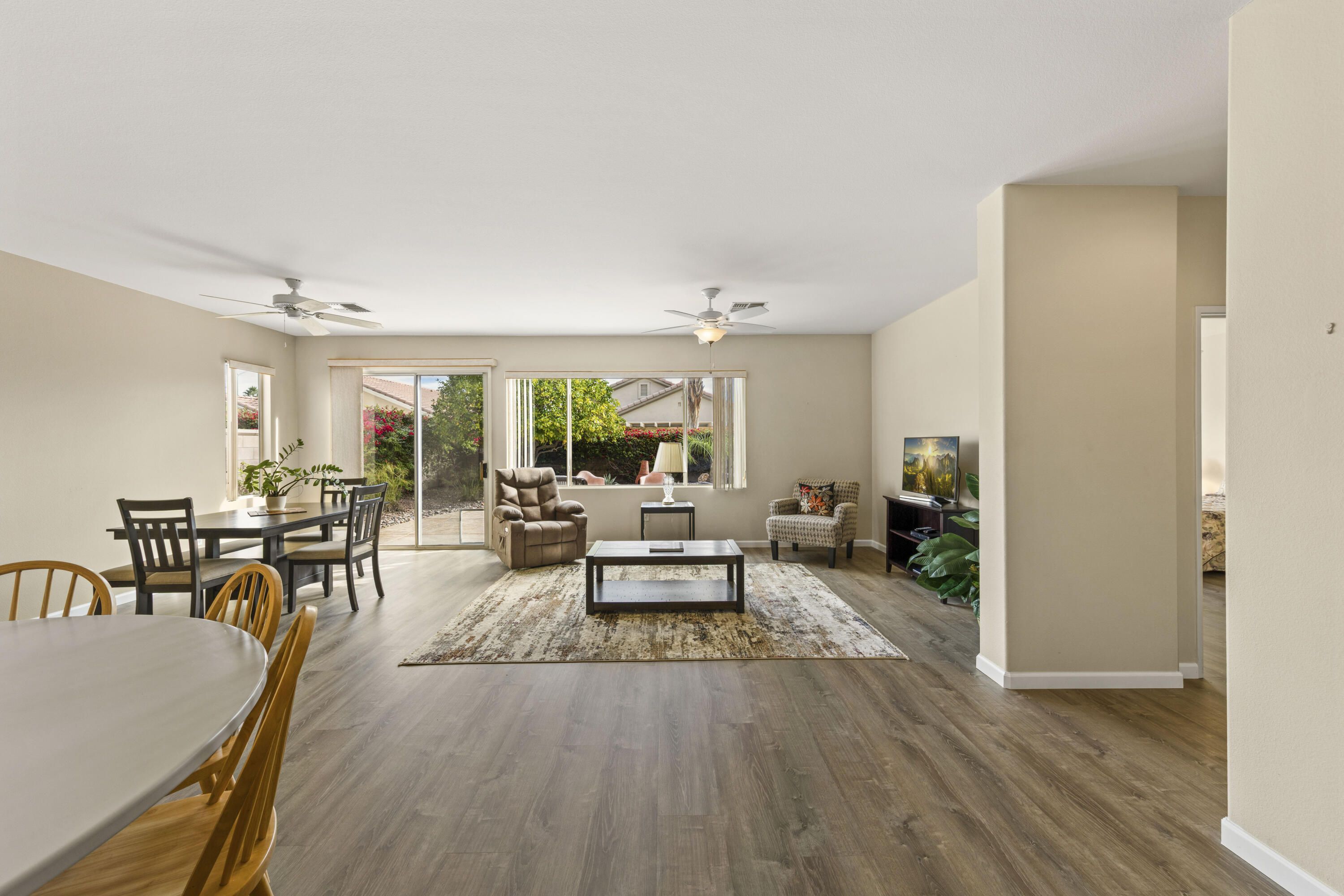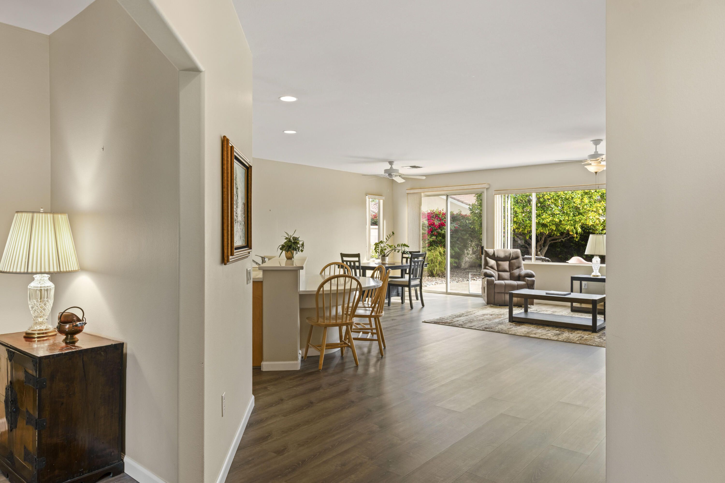 Welcome to this beautifully San Martine home located in Sun City Palm Desert community. This 2 bedroom, 2 bath home with a den offers a bright, open floor plan. The home features luxury vinyl flooring throughout, The kitchen is well appointed with brand new appliances, Corian countertops, and ample cabinet space, The spacious primary suite includes a walk-in closet & a private bath. while the guest bedroom & den provide flexibility for visitors, a home office, or hobbies. Enjoy peaceful mornings & afternoons in the east-facing backyard, ideal for taking advantage of the desert climate. Residents enjoy amenities including golf, clubhouses, fitness centers, and an active social lifestyle. This home is move-in ready.