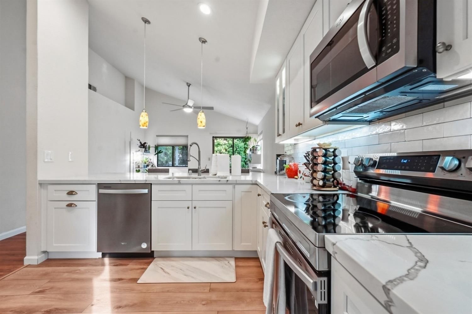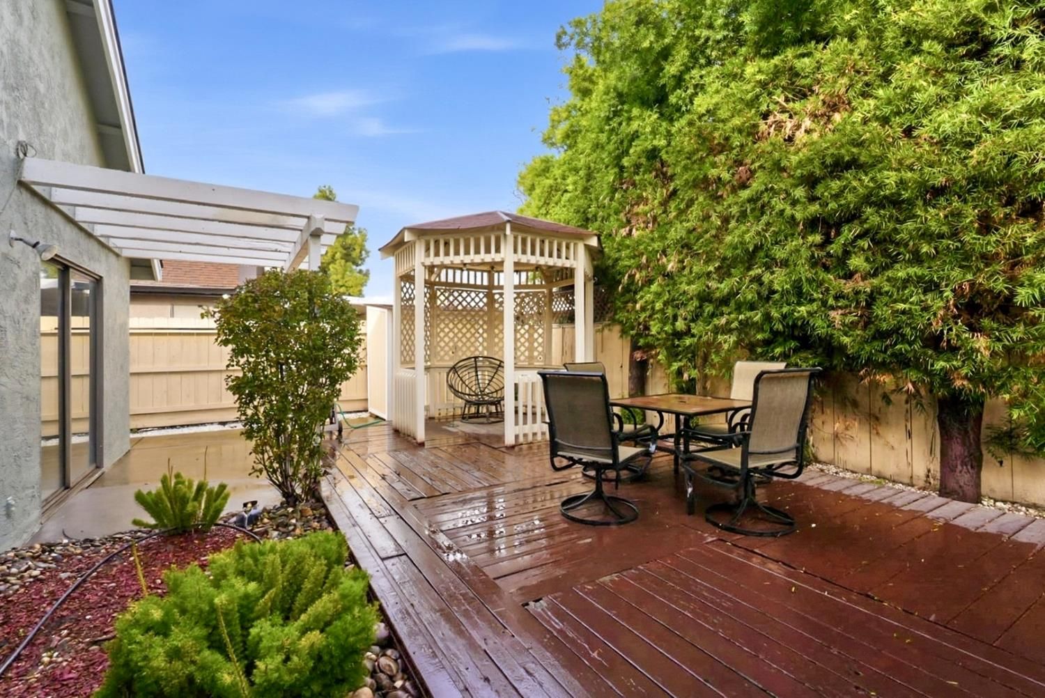 Welcome home to 3652 N Veneman Ave, Modesto. This inviting 3-bedroom, 2-bath home offers 1,711 sq ft of comfortable living in a great neighborhood you'll truly enjoy coming home to. Fresh new LVP flooring, vaulted ceilings, and abundant natural light create a bright, open, and welcoming atmosphere throughout. The heart of the home is the updated kitchen, featuring new cabinetry, quartz countertops, and updated lighting that adds both style and warmth, perfect for everyday meals or gathering with family and friends. The primary suite features vaulted ceilings, a Jack-and-Jill bathroom with granite countertops, while the second bathroom also offers granite countertops and a relaxing jacuzzi bathtub ideal for unwinding at the end of the day. Step outside to the backyard and enjoy the deck and gazebo, perfect for morning coffee, weekend BBQs, and family gatherings, all while benefiting from fully paid-off solar for comfort, efficiency, and long-term savings. A home that blends thoughtful updates, cozy living, and a great location, super close to Highway 99 and nearby shopping and the mall, making daily commuting and errands easy and convenient.