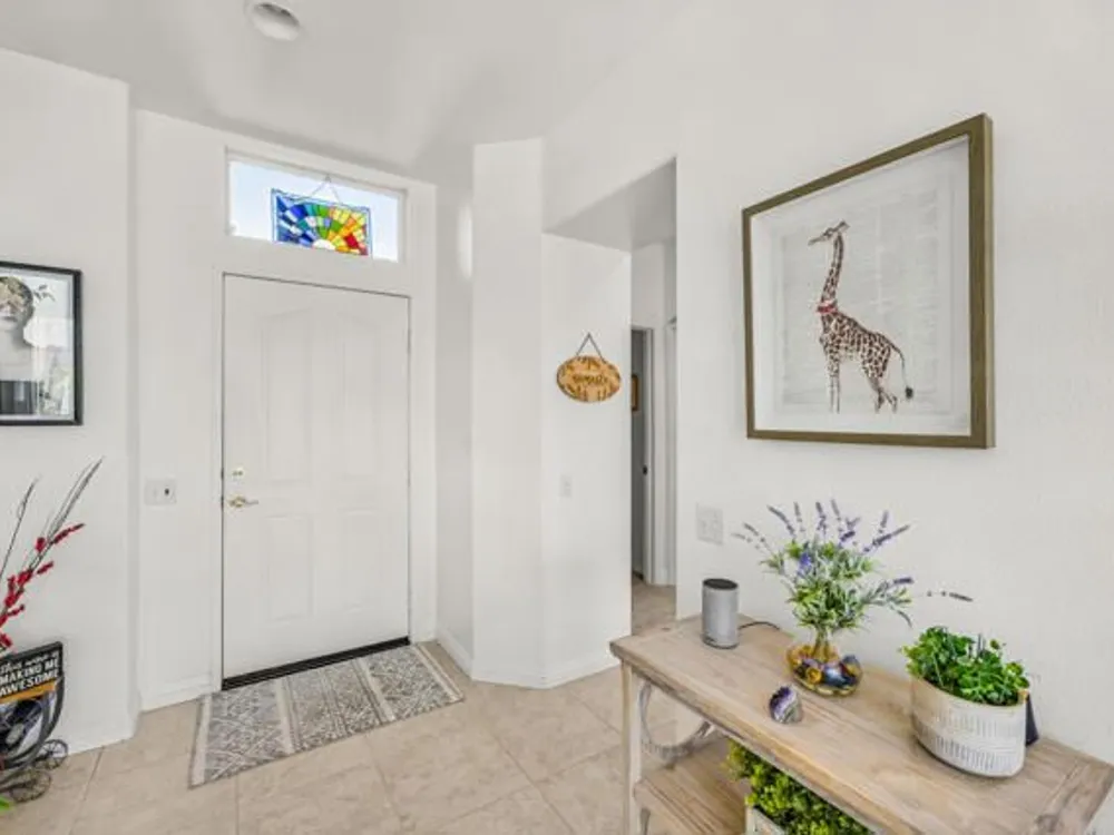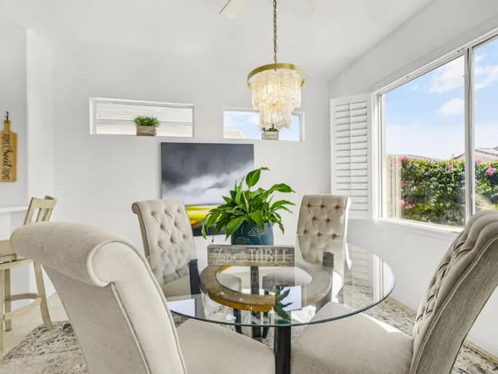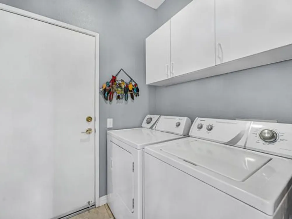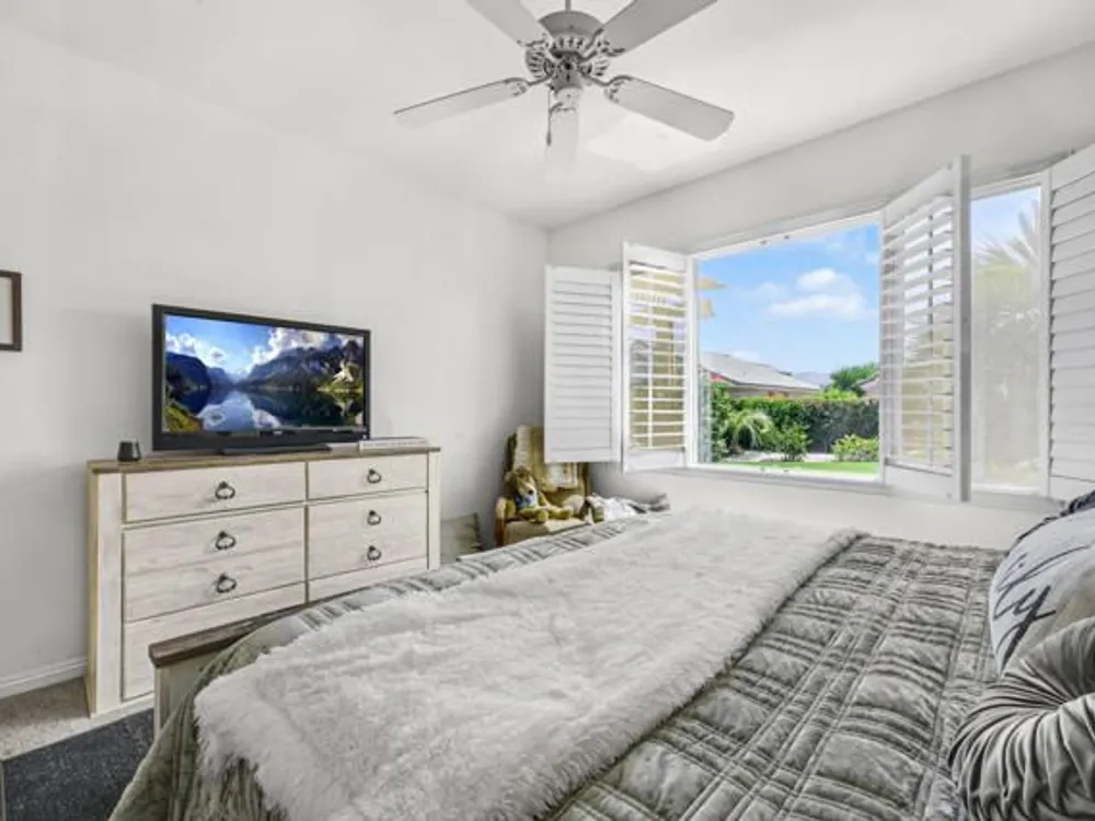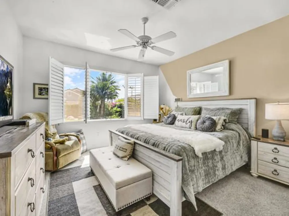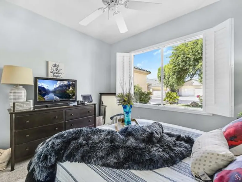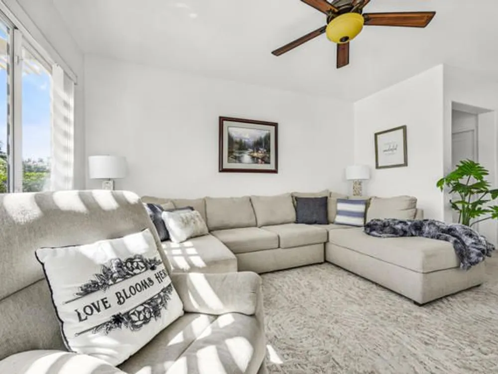 Welcome to 36574 Royal Sage Court, where comfort, charm, and pride of ownership meet! This well-maintained Lanai floor plan features 2 bedrooms, 2 bathrooms with 1,213 square feet (EST.) offers privacy, neutral tones, and plenty of natural light throughout. The kitchen features warm oak cabinetry, custom backsplash, white appliances including a new microwave installed in August 2025, a gas range, and a convenient breakfast bar that opens to the dining area, perfect for everyday living and easy entertaining. Enjoy morning sunlight from the cozy dining nook, which features plantation shutters that frame views to the lush yard space. A spacious living area is light and inviting, ideal for relaxing or hosting. The primary suite offers plush newer carpeting, a large walk-in closet, and an ensuite bath with dual sinks and a walk-in shower. Located on the other side of the home, the second bedroom provides privacy and views to the beautifully landscaped front yard. Your own private backyard oasis awaits, complete with peek-a-boo mountain views to the east, artificial turf, colorful desert landscaping with miniature palms, an alumawood covered patio, room to dine, lounge garden and relax in the sun. Sun City Palm Desert is one of the Coachella Valley's premier 55+ active adult communities featuring two championship golf courses, an 18-hole putting course, three clubhouses, two fitness centers, an indoor swimming pool, outdoor pools and two restaurants. Enjoy over 80 social clubs, tennis, pickleball, softball and so much more! *Turnkey furnishings are available outside of escrow.*