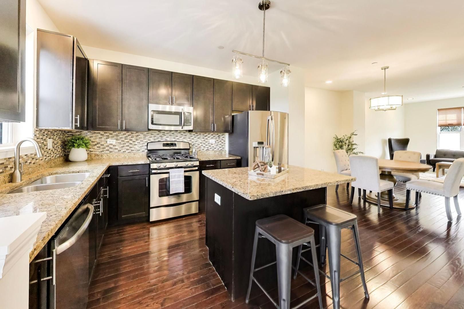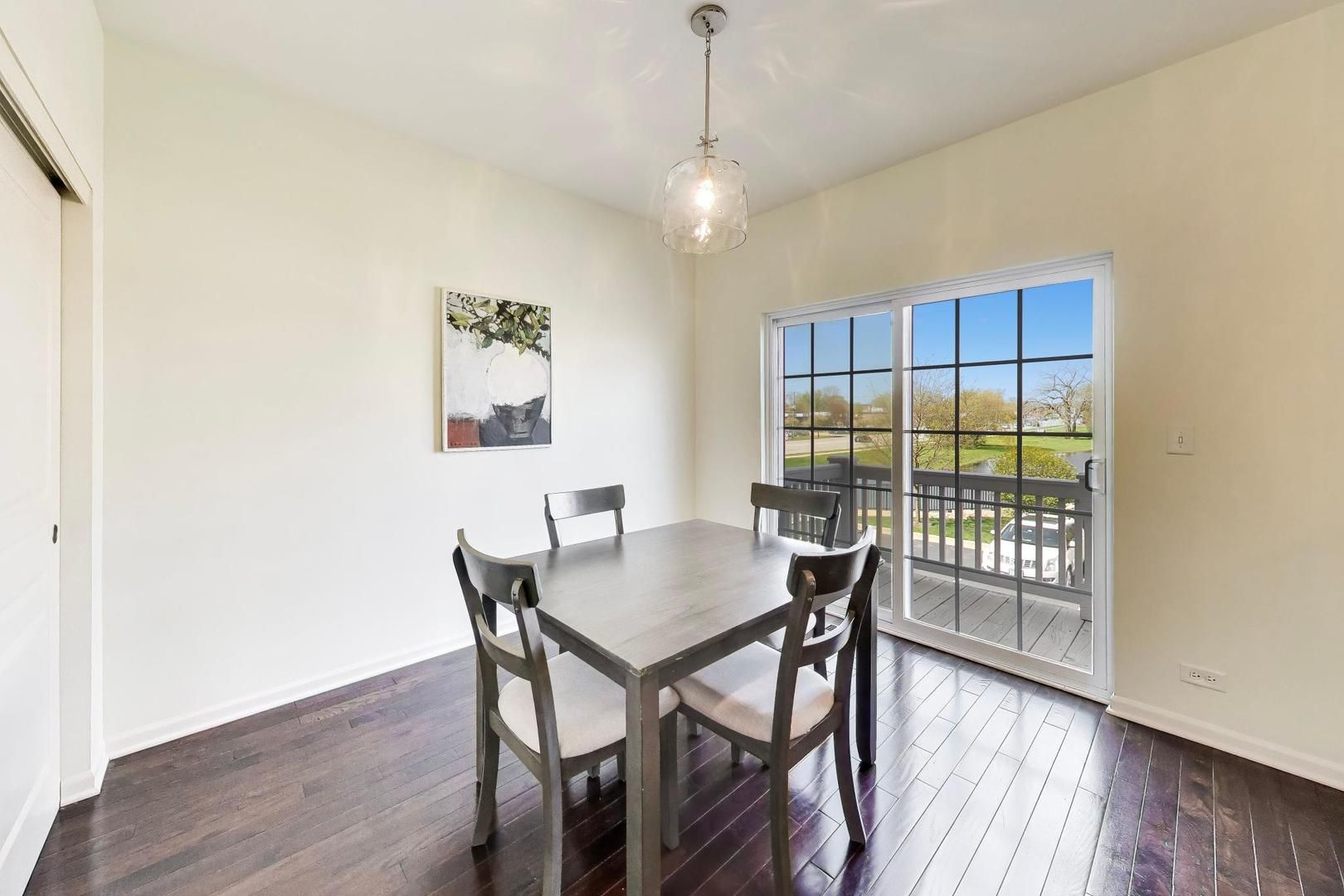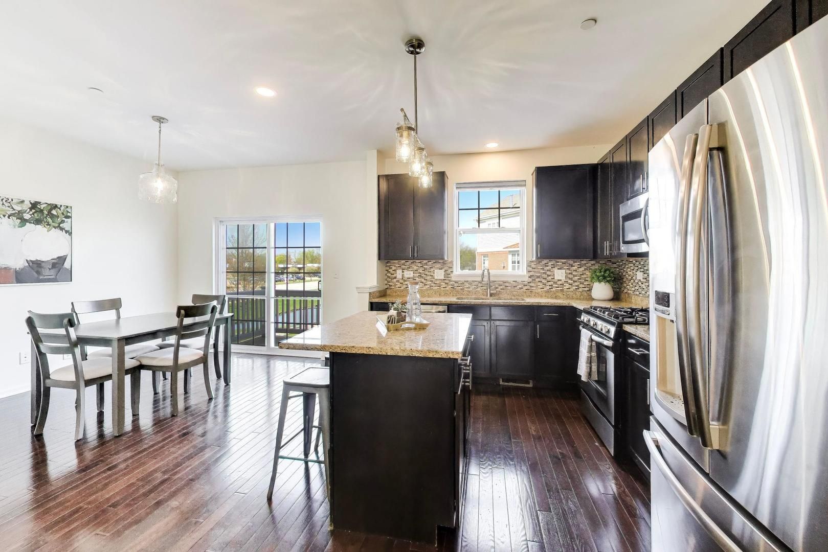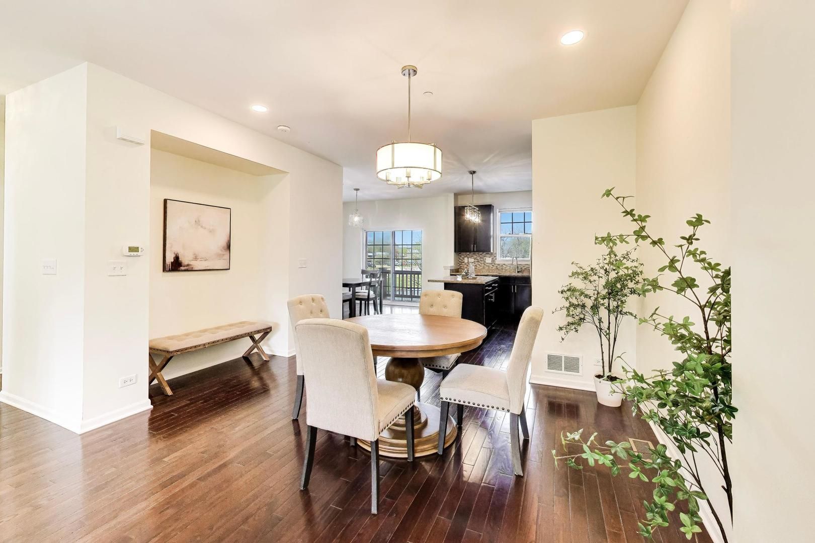 POND VIEWS, a finished lookout basement, and a kitchen made for entertaining! This stunning 3 bedroom, 2.1 bathroom townhome in Prospect Heights has everything today's buyers are searching for and more! Feeding into the award winning Hersey High School district and steps to Rob Roy Golf Course, Randhurst dining and shopping, and vibrant downtown Arlington Heights, the location is unmatched. Step inside to gleaming hardwood floors, tons of natural light, and an open and airy layout. The kitchen is the heart of it all, boasting granite countertops, 42" cabinetry, stainless steel appliances, and a center island made for gathering. Step out onto the balcony and soak in those serene pond views providing the perfect backdrop for your morning coffee. Upstairs, three generously sized bedrooms await, including a primary suite with soaring vaulted ceilings. The walk-in closet will host your entire wardrobe, and the ensuite features a dual sink vanity and walk-in shower. Second floor laundry makes wash day a breeze! The finished lookout basement offers a versatile living and rec area great for movie nights, home office, or fitness space. Top it all off with a convenient attached 2 car garage, walking distance to Euclid Elementary and parks/pools. Get the best of both worlds, minutes to booming downtown Arlington Heights and Mount Prospect, including the Metra. With pond views, top schools, and a layout designed to impress, this is the one you've been waiting for. Welcome home!