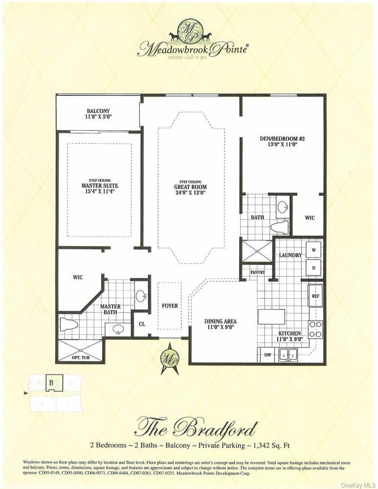This Spacious and Elegant 2 Bed/2 Bath Bradford Unit is in Diamond Condition and has Showroom Quality! From the Moment you Enter you are Greeted by the Warmth of the Impeccable Decor, including the White Kitchen Cabinets, Stainless Steel Appliances, Gleaming Hardwood Floors, and Granite Countertops! The Large Primary Bedroom Ensuite has a Walk-In Closet, Double Sinks, and Custom Marble Tile. The 2nd Bedroom comes Complete with a Custom Murphy Bed and "Jack and Jill" Access to the 2nd Full Bath. An Outdoor Covered Balcony Overlooks the Serene Evergreen Trees and Gardens. Amenities Galore Include Tray Ceilings, In-Unit Laundry Room, Designated Underground Parking, 2 Storage Bins, and a Storage Cage. The 25,000 Sq Ft Clubhouse Has Indoor and Outdoor Pools, a Fitness Center, Billiard & Card Rms, Bar, Ballroom, Library, Theatre, Spa, Salon, Cafe and More! Outdoor Tennis & Bocce Ball Courts are only Some of the Amazing Amenities you'll Enjoy from Resort-Style Living at Meadowbrook Pointe!
