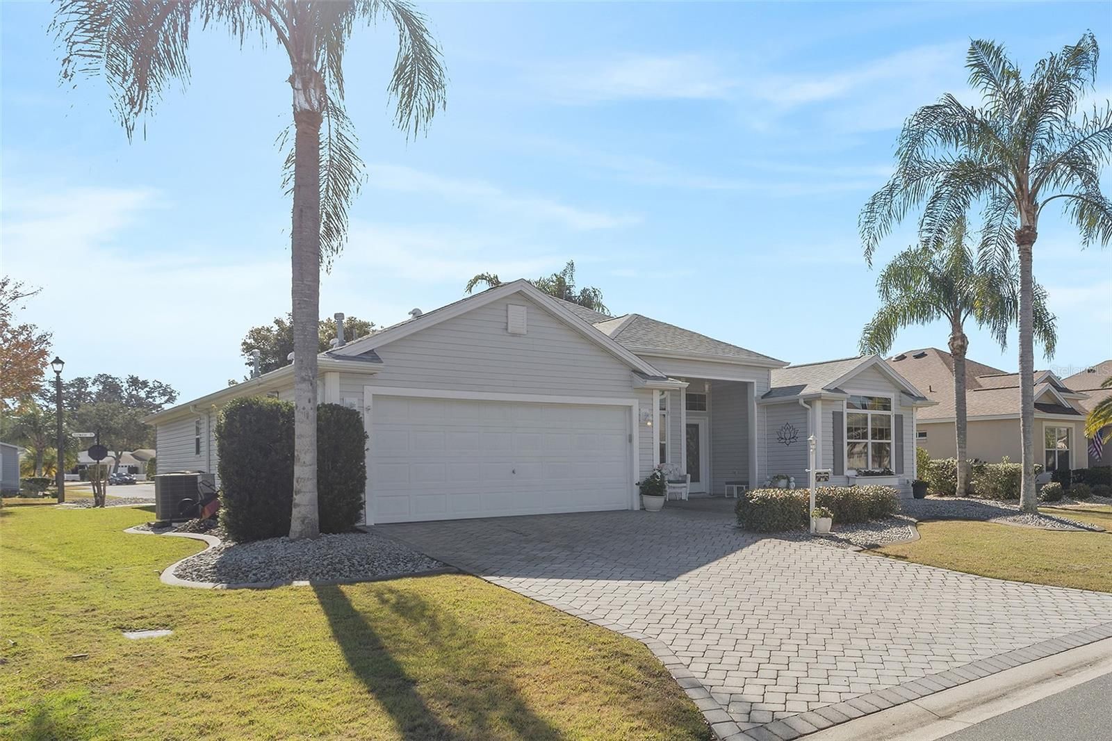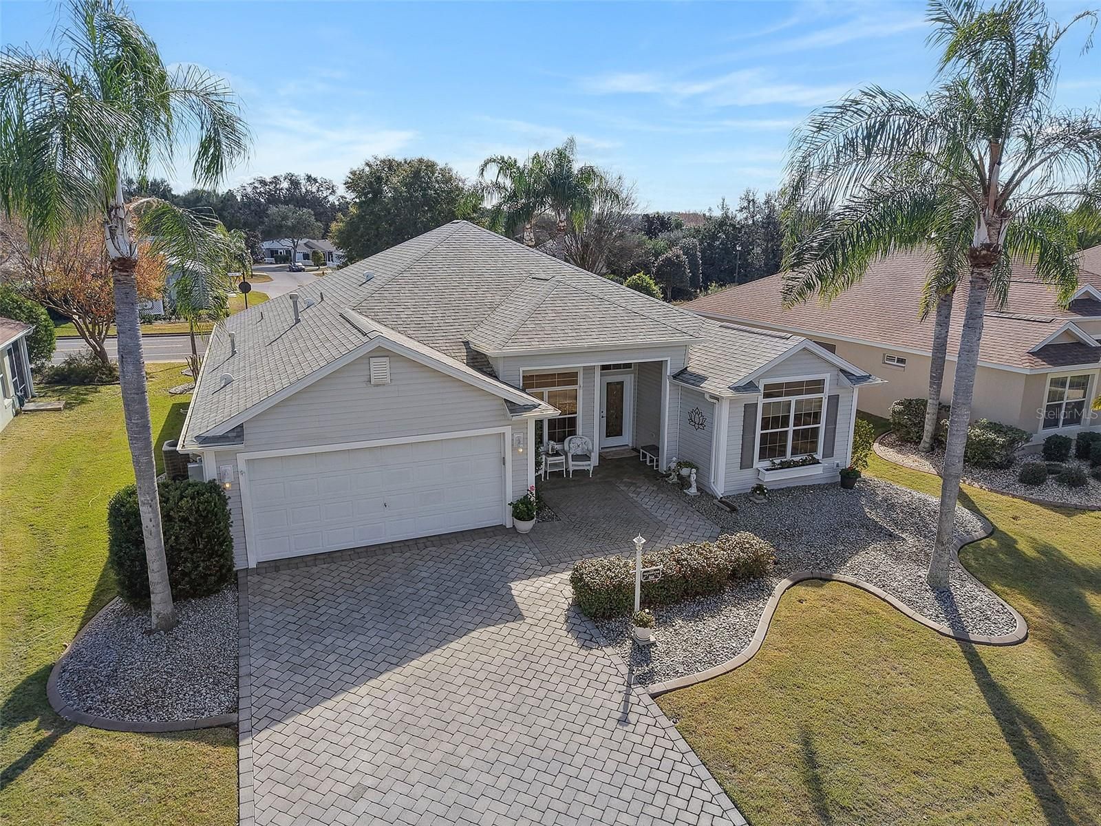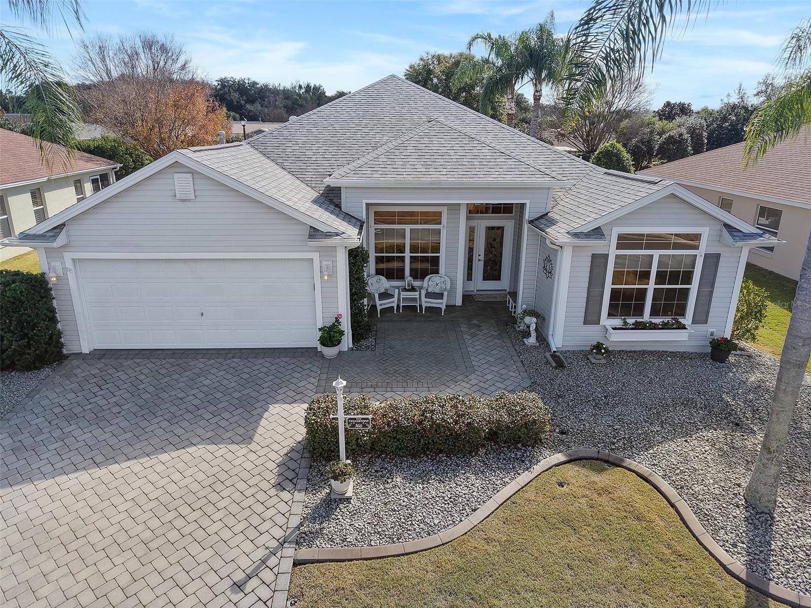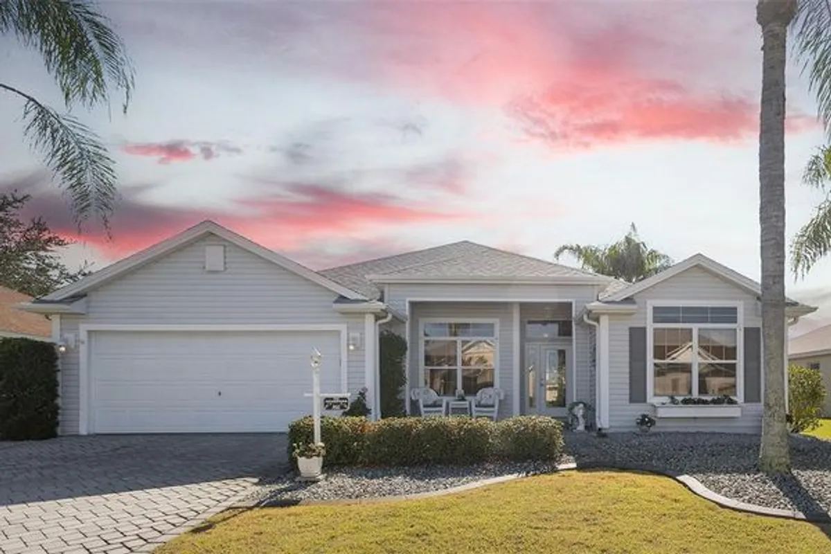 Village of Mallory Square • Camellia Designer Model • 3 Bedroom | 2 Bath • Open Floorplan • Enclosed Lanai • Side Patio with Remote Awning • No Carpet • Plantation Shutters • Crown Molding • Granite Countertops • Roof 2021 • No Bond Balance Welcome home to this beautifully maintained Camellia Designer Model located in the highly desirable Village of Mallory Square, offering an inviting open floorplan, thoughtful upgrades, and exceptional outdoor living. Situated on a quiet cul-de-sac street, the home welcomes you with charming curb appeal featuring a pavered driveway, leaded glass front door, low-maintenance tropical landscaping, and an open front patio that is perfect for morning coffee or evening relaxation. Step inside to discover vaulted volume ceilings and a bright, airy interior enhanced by plantation shutters, crown molding, and solid-surface flooring throughout with absolutely no carpet. The spacious living and dining areas flow seamlessly, creating an ideal setting for both everyday living and entertaining. The kitchen is both functional and stylish, showcasing granite countertops, newer stainless steel appliances, soft light creamy cabinetry, under-cabinet lighting, and a convenient eat-in nook for casual dining. From the main living area, extend your living space into the enclosed lanai, adding approximately 300 square feet of additional living area perfect for relaxing, reading, or hosting guests. Just beyond, a side patio with a remote-control awning provides a shaded outdoor retreat for grilling or enjoying Florida’s beautiful weather. The primary suite is a private haven, offering generous space, double walk-in closets, and a well-appointed en-suite bath with dual vanities and large linen storage. Two additional bedrooms provide flexibility, including a third bedroom currently configured as a den with a built-in desk and Murphy bed, making it ideal for a home office, hobby room, or guest space with abundant storage. Additional highlights include a roof replaced in 2021, pristine overall condition, and no bond balance, adding tremendous value and peace of mind. Ideally located in Mallory Square with convenient access to golf, recreation centers, shopping, dining, and nightly entertainment, this home offers the perfect blend of comfort, style, and The Villages lifestyle.