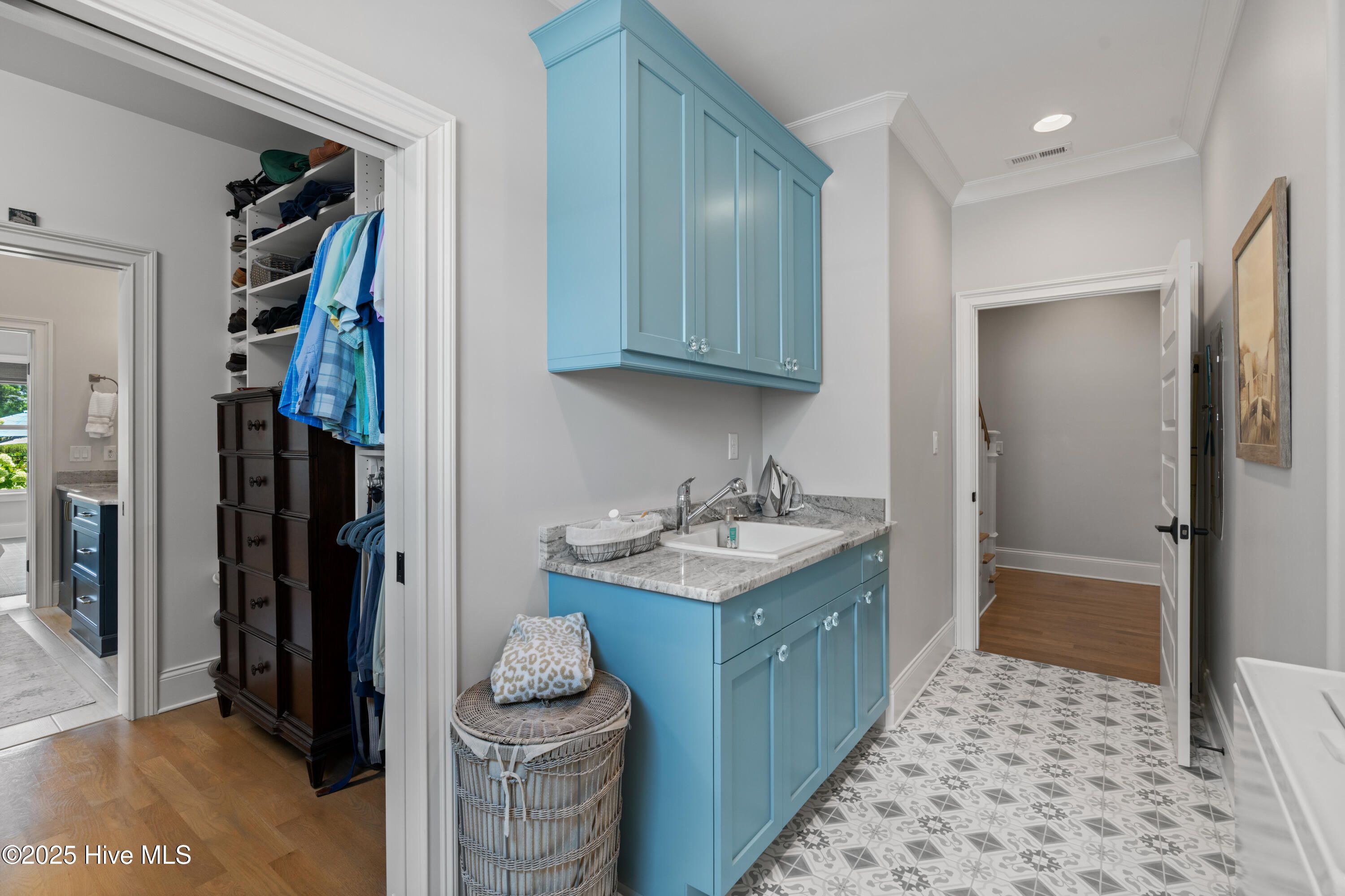 - Sound System, Master Downstairs, Walk-In Closet(s), Tray Ceiling(s), High Ceilings, Entrance Foyer, Bookcases, Kitchen Island, Ceiling Fan(s), Pantry, Wet Bar, Blinds