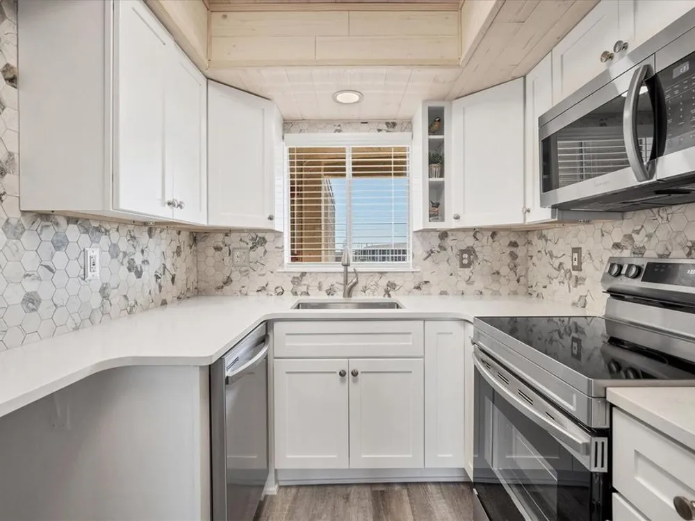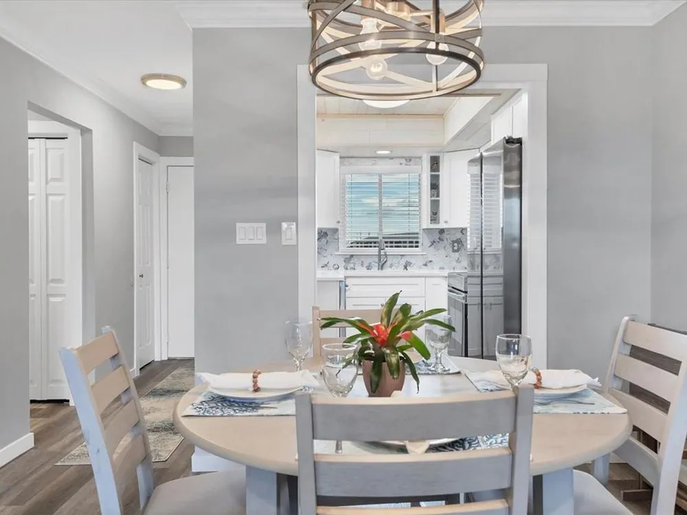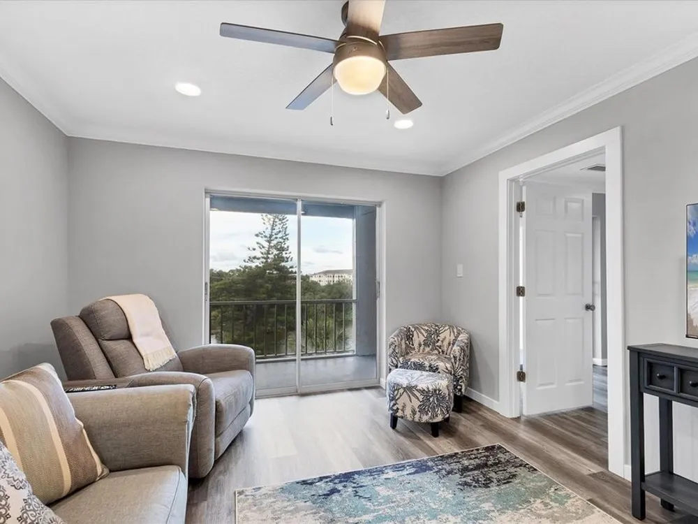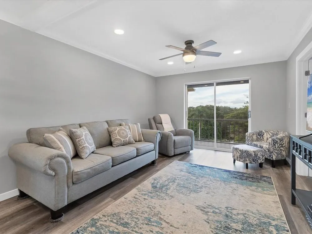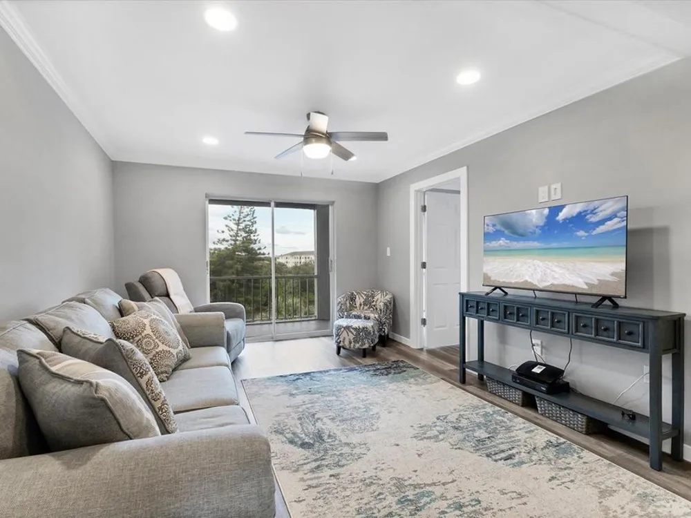 Welcome to your Florida retreat at Bayshore on the Lake! This completely renovated and furnished 1-bedroom, 1-bath condo with a bonus study/den is truly move-in ready—no updates needed. Inside, the heart of the condo is the gourmet kitchen, featuring new shaker-style cabinets, sleek quartz countertops, stainless steel appliances, and charming shiplap accents for that coastal feel. The open layout flows into a spacious living area with luxury vinyl plank flooring and crown molding, creating a light and airy atmosphere. The bonus study/den adds flexibility—perfect as a home office, hobby space, or a cozy spot for overnight guests. The updated bathroom, modern lighting, and quiet underlayment throughout ensure comfort and style in every detail. Step onto your newly screened lanai with a custom-finished floor, ideal for morning coffee or evening relaxation. Added bonus: washer/dryer hook-up right on the lanai for ultimate convenience. Located in a welcoming 55+ community with a heated pool, clubhouse, fishing pier, and lakeside walking paths, this home offers the perfect blend of relaxation and lifestyle. With easy access to shopping, dining, and local beaches, this condo is the complete package—ready for you to enjoy from day one.