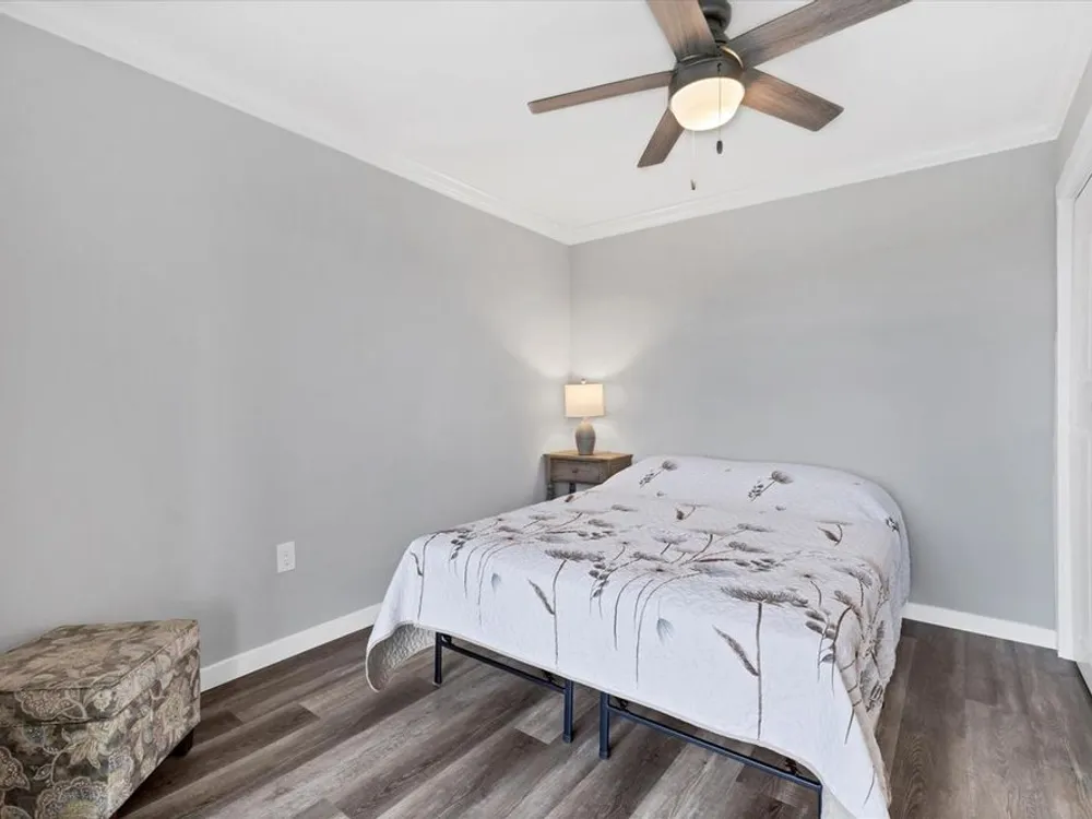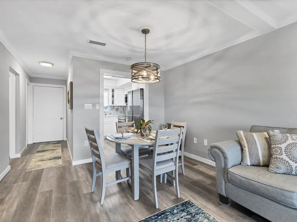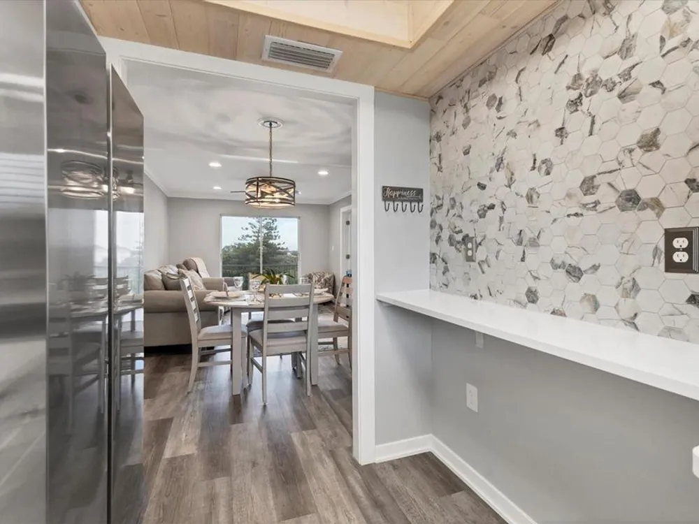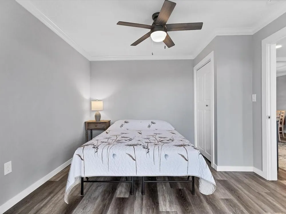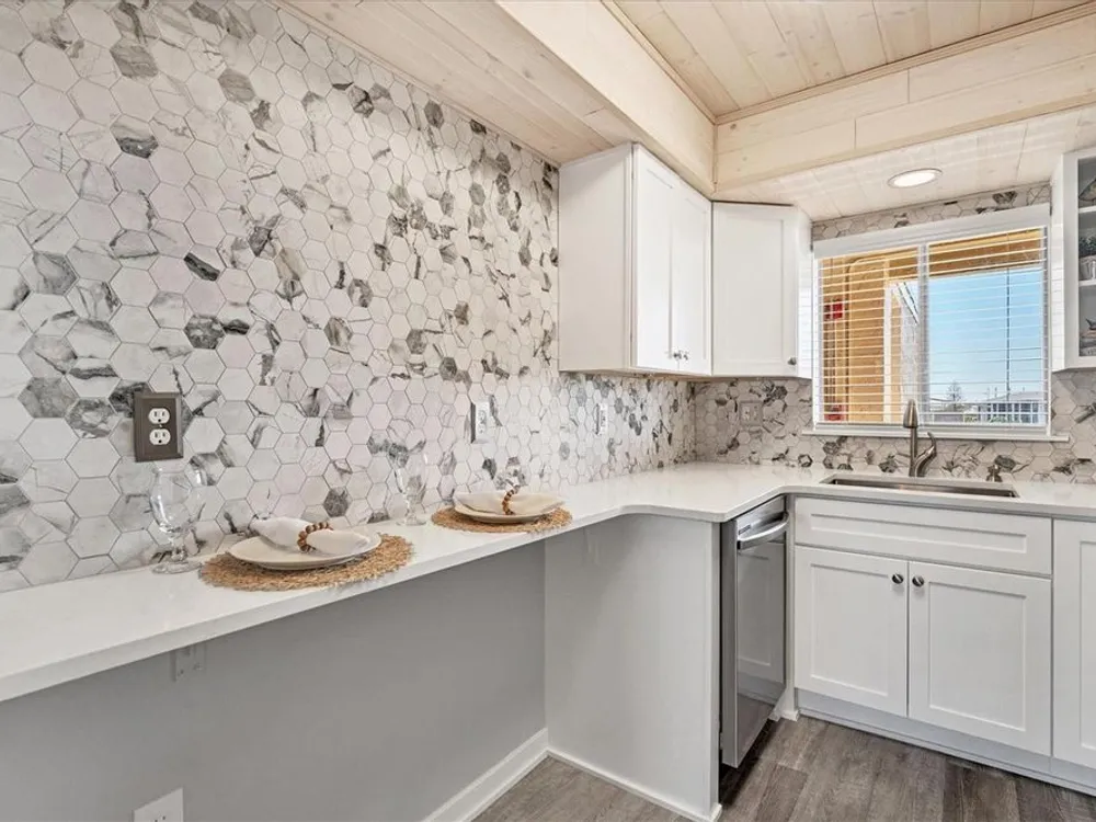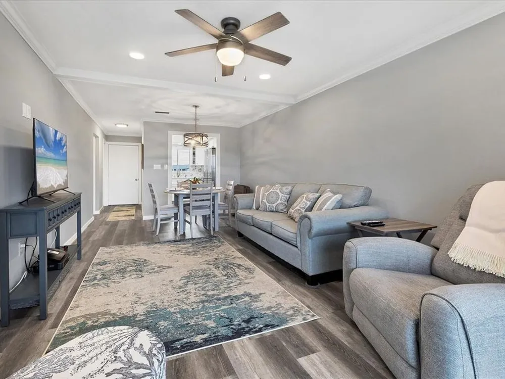 Welcome to your Florida retreat at Bayshore on the Lake! This completely renovated and furnished 1-bedroom, 1-bath condo with a bonus study/den is truly move-in ready—no updates needed. Inside, the heart of the condo is the gourmet kitchen, featuring new shaker-style cabinets, sleek quartz countertops, stainless steel appliances, and charming shiplap accents for that coastal feel. The open layout flows into a spacious living area with luxury vinyl plank flooring and crown molding, creating a light and airy atmosphere. The bonus study/den adds flexibility—perfect as a home office, hobby space, or a cozy spot for overnight guests. The updated bathroom, modern lighting, and quiet underlayment throughout ensure comfort and style in every detail. Step onto your newly screened lanai with a custom-finished floor, ideal for morning coffee or evening relaxation. Added bonus: washer/dryer hook-up right on the lanai for ultimate convenience. Located in a welcoming 55+ community with a heated pool, clubhouse, fishing pier, and lakeside walking paths, this home offers the perfect blend of relaxation and lifestyle. With easy access to shopping, dining, and local beaches, this condo is the complete package—ready for you to enjoy from day one.