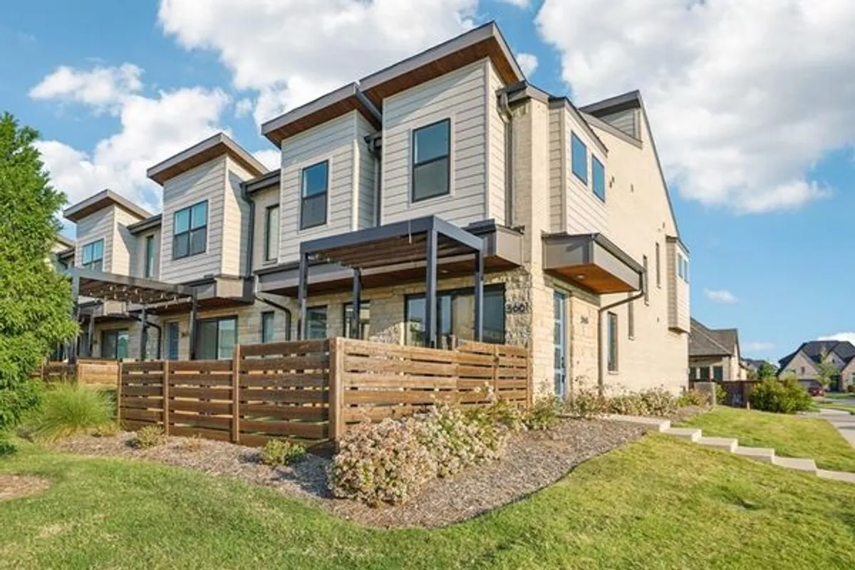 Property is also listed for Lease! $3300 Monthly. Welcome to this Move-In Ready, stunning townhome located in the award-winning community of Windsong Ranch, nestled in the highly sought-after Prosper ISD. This modern luxury townhome boasts three beds and two and a half baths, offering the perfect blend of style and functionality. As an end unit, the townhome provides extra privacy, an abundance of natural light, and additional upgraded data capabilities. The open-concept floor plan seamlessly connects the kitchen, dining, and living areas. The stylish and functional kitchen is complete with breakfast bar, gas range and stainless steel appliances, while the living area offers a cozy space with modern fireplace to relax and unwind. Upgraded lighting throughout the home can be controlled with remote access, offering convenience and energy efficiency at the touch of a button. Step outside into your pergola covered patio with yard—an excellent space for outdoor entertaining without the maintenance of a traditional lawn. The two-car garage provides plenty of storage. Upstairs, the open loft area is versatile and can be used as a home office, playroom, or additional living space. The private primary suite is a true retreat, featuring a luxurious ensuite bathroom with oversized walk-in shower, dual vanities, and a spacious walk-in closet. Windsong Ranch offers an impressive array of world-class amenities, including picturesque walking trails, parks & playgrounds, resort-style pools, a state-of-the-art fitness center, a 5 acre tropical crystal clear water lagoon complete with full beach area, event lawn and more. With its unbeatable location, modern upgrades, and exceptional community, this townhome is a must-see for those seeking a high-end living experience in the sought after city of Prosper. Zoned for the brand new RICHLAND HIGH SCHOOL!