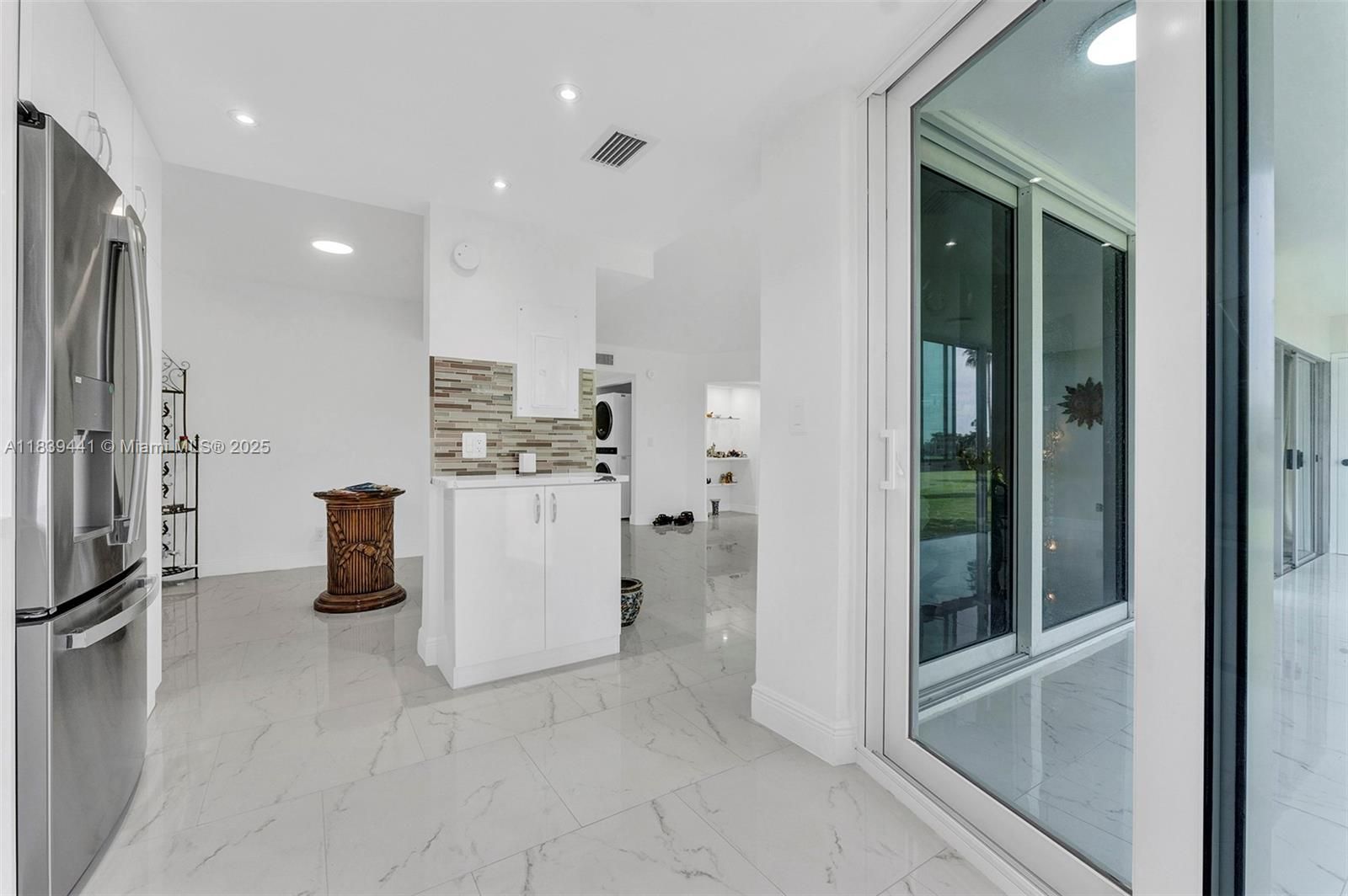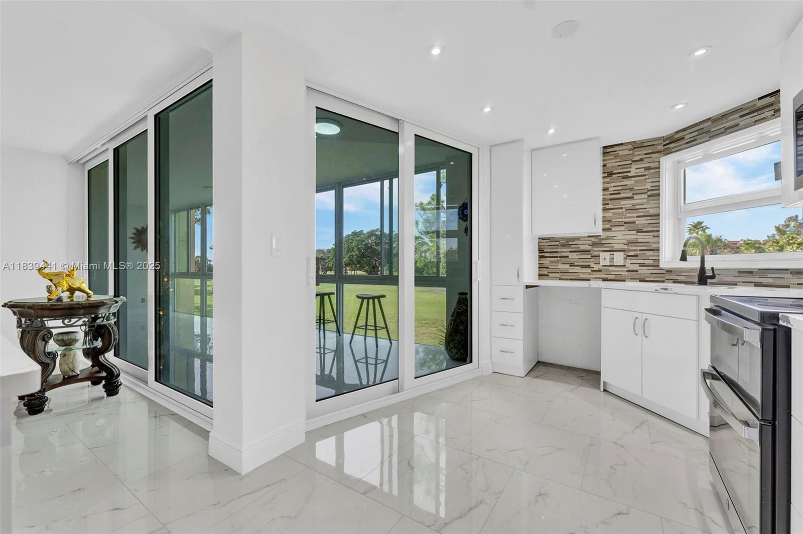 55+ Stunning 2 bed, 2 bath condo arguably the best unit for sale in the community! The owner invested over $100K in upgrades, including all impact glass windows and double impact glass protection on the patio. Inside, enjoy a beautifully renovated kitchen with stainless steel appliances, sleek custom cabinets, and a stylish backsplash. New porcelain tile floors and updated bathrooms add modern elegance throughout. The spacious layout includes a 25-foot balcony accessible from three rooms, bringing in tons of natural light. Located directly across from the clubhouse, pools, tennis, and pay-as-you-play golf. This vibrant adult community also features a café, fitness center, entertainment, classes, clubs, and more live the ultimate Florida lifestyle in a meticulously upgraded home!