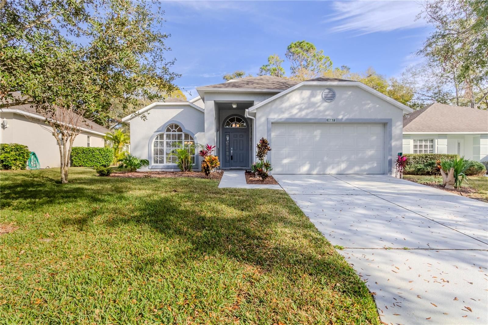 Elegant Living Awaits in Kings Ridge! Experience the epitome of refined living in this exquisite residence. Each room exudes sophistication, beginning with a dream kitchen that's a chef's delight. Featuring GE Profile appliances including a convection oven, granite countertops, a stainless steel sink with Moen faucets, under-cabinet LED lighting, and soft-close drawers and cabinets, this kitchen is a culinary masterpiece. The spacious living room boasts vinyl plank flooring and custom shades that lead to a serene screened lanai. Both bedrooms offer plush carpet and custom-designed closets for ample storage. Ceiling fans throughout the home, including the lanai, provide a gentle breeze and added comfort. The master bathroom is a sanctuary of relaxation, featuring double sinks, granite countertops, a comfort height toilet, and a barn door that elegantly reveals a luxurious shower with dual shower heads. Enjoy peace of mind with a newer roof and high-efficiency HVAC system. The garage includes a wi-fi enabled garage door opener and is wired for electric vehicle charging. Embrace an Active Lifestyle: Kings Ridge, consistently ranked among Central Florida's Top 20 Active Adult Communities, offers an unparalleled lifestyle. Indulge in an array of amenities, including: Two championship golf courses Two state-of-the-art fitness centers with diverse health classes Four swimming pools and two relaxing spas Tennis courts, pickleball, and shuffleboard A magnificent clubhouse Convenience is Key: Enjoy the ease of included basic cable/internet/phone services, professional lawn care, and efficient irrigation. Welcome to your new home in Kings Ridge!