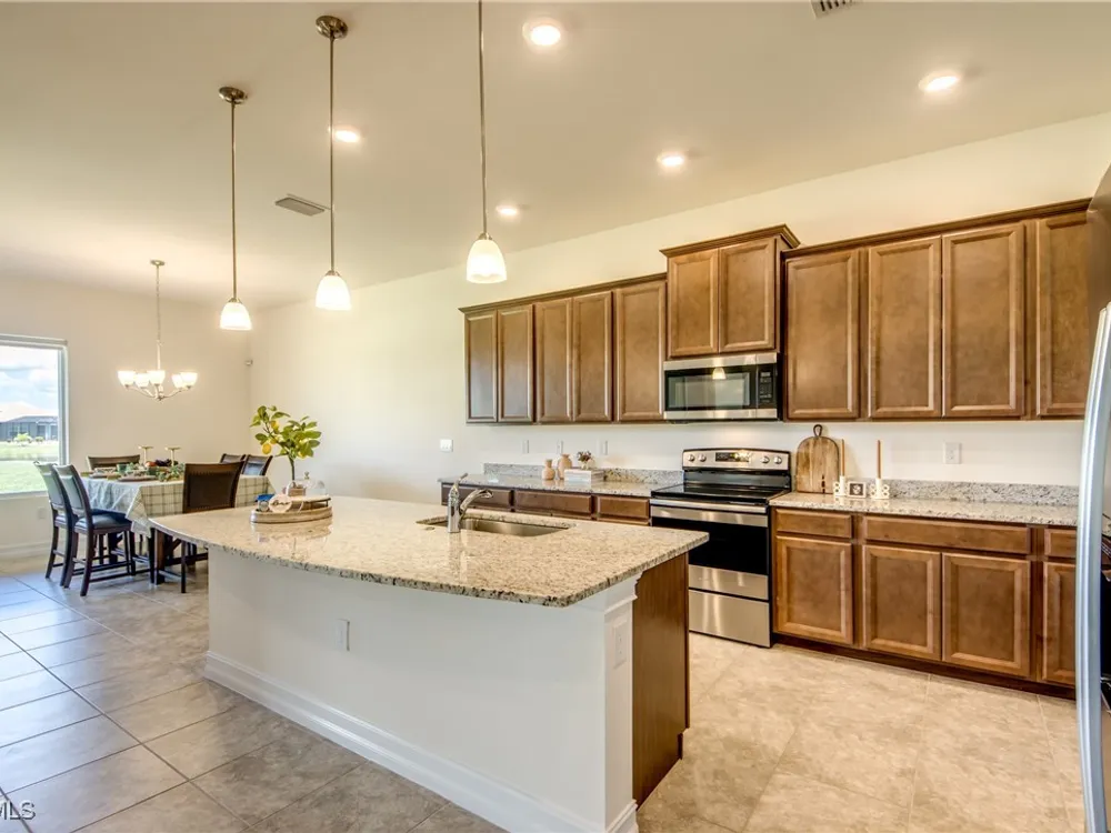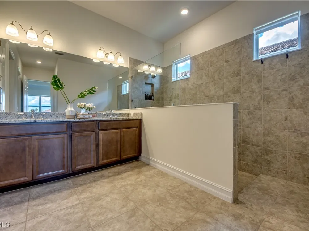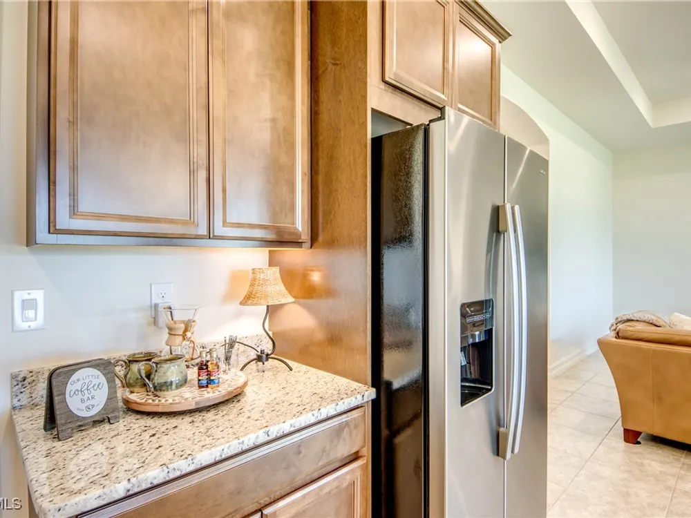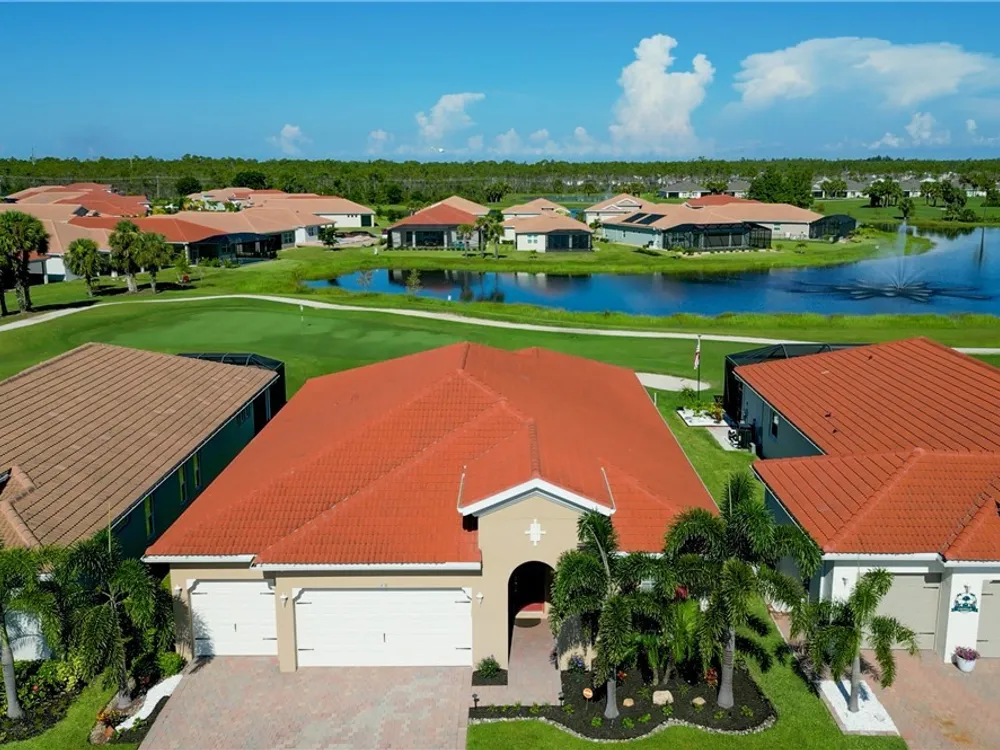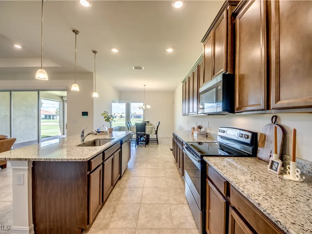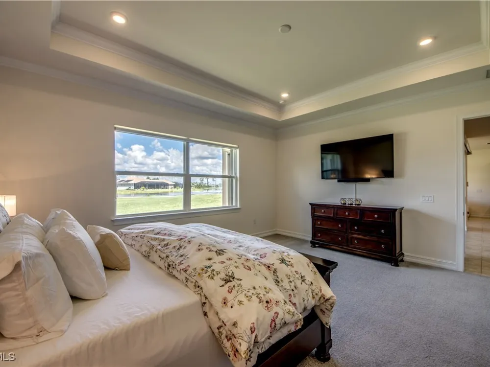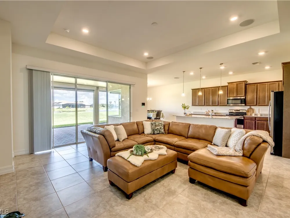 Welcome to your MAGNOLIA LANDING RETREAT, located in the coveted ESTATE HOMES section — where larger lots, deep driveways and refined surroundings create the perfect backdrop for Florida living. This sought-after Wheaton Model delivers a floor plan designed for comfort, entertaining and everyday ease. Inside, the home itself reflects METICULOUS CARE, thoughtful upgrades, and timeless design, making it TRULY MOVE-IN READY. With three spacious bedrooms (two en-suite), a 13’x12’ den, and FIVE bathrooms — including a dedicated pool bath — this floorplan provides the flexibility today’s buyers are searching for. The heart of this home is the expansive gathering room with tray ceilings, crown molding, 8’ doors and sliders and seamless flow to the kitchen and dining areas. Entertain with ease in a CHEF’S KITCHEN anchored by a massive island, granite counters, rich wood cabinetry and one of the most impressive WALK-IN PANTRIES you’ll find. The dining room’s mitered glass window frames postcard-worthy views of the lake and golf course, setting the stage for every meal. The owner’s suite is a true retreat with tray ceilings, dual walk-in closets and a spa-like bath featuring a large walk-in shower. Each guest suite enjoys its own bath, ensuring privacy and comfort for family and friends. The extended lanai, finished with upgraded pavers and a convenient pool bath, is designed for both relaxation and entertaining. With NO POOL TO MAINTAIN, you’ll enjoy tranquil lake and golf views without the extra upkeep or insurance — and still have the convenience of the RESORT-STYLE COMMUNITY POOL just down the street, complete with a vibrant social atmosphere. That means more time for morning coffee, evening sunsets and everything the Magnolia Landing lifestyle has to offer. The nearly 600 sq ft THREE-CAR GARAGE offers abundant cabinetry, storage and room for hobbies or toys, proving practicality can be stylish too. Solid CBS construction, tile roof, STORM-READY PROTECTION with roll-down shutters and generator, plus the peace of mind of no prior flooding and no flood insurance requirements, make this home as secure as it is beautiful. Life in Magnolia Landing is resort-inspired: championship 18-hole golf course (optional membership), clubhouse with dining and social events, fitness center, pickleball, bocce, shuffleboard, walking and biking paths, lap and resort pool. All this within a secure, gated setting just minutes to downtown Fort Myers, beaches, shopping and dining. Set on a PRIME HOMESITE overlooking a sparkling lake with fountain and the lively par-3 sixth hole, this property offers a rare combination of elegance, convenience and peace of mind. Whether you’re seeking a year-round estate home or the ultimate seasonal retreat, this one checks every box. Move right in and start living the Florida lifestyle you’ve been waiting for, the sunset is calling and this home is the reward for the life you’ve built, where comfort, elegance and peace of mind come together!
