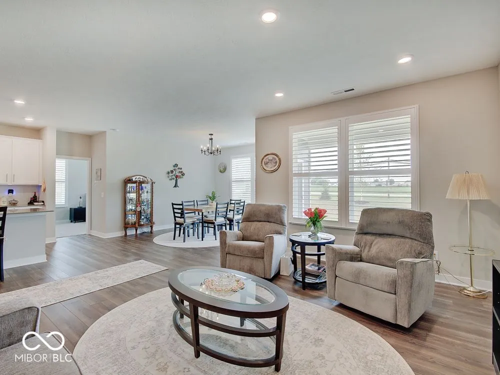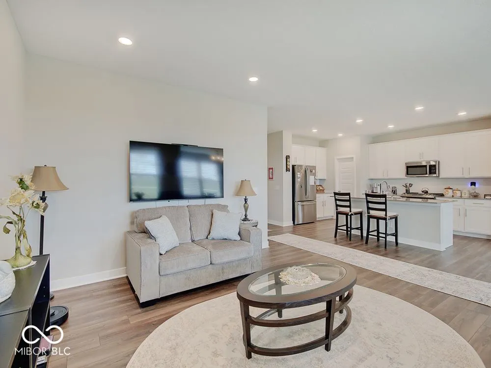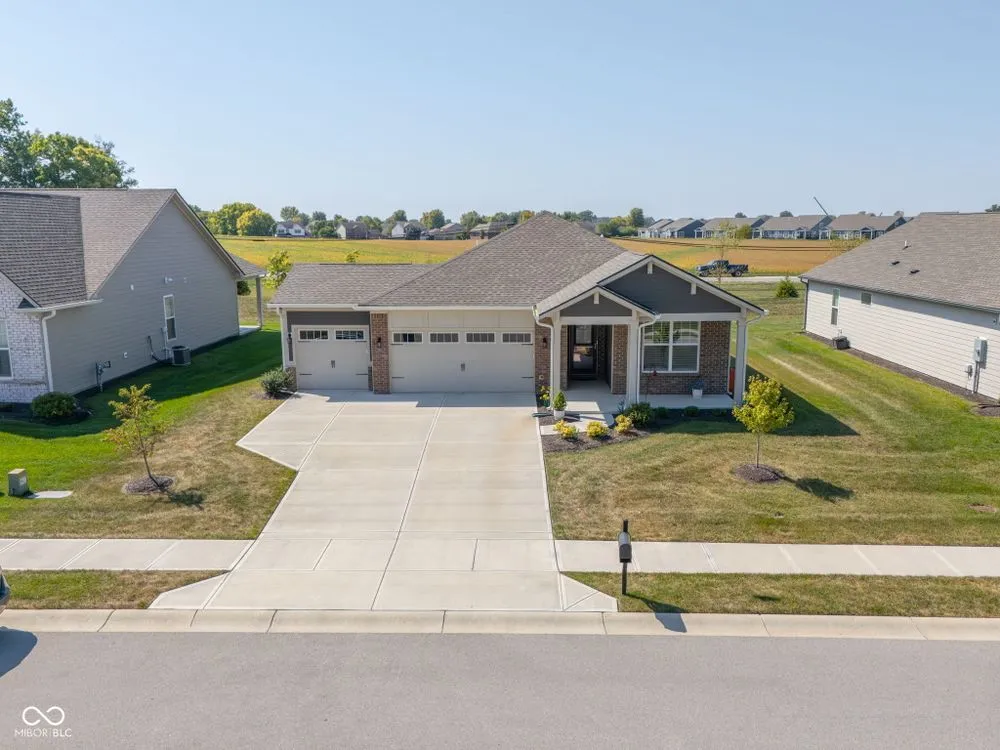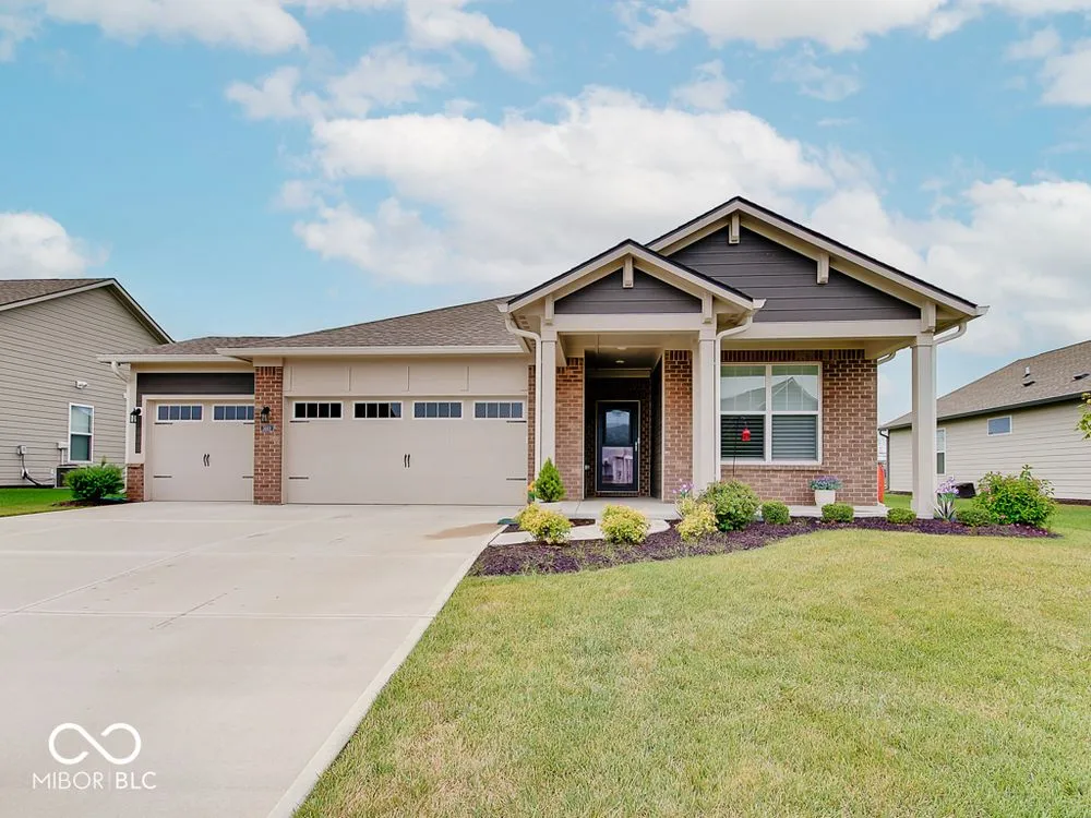 Ranch w/3 CAR GARAGE in Center Grove. Walking distance to dining, coffee shops, park w/ pickle ball courts, & Bargersville's small town charm. 1,814 sq. ft., 3 bedrooms, 2 baths, 9' ceilings, & 3 car Garage. Low-maintenance section of the Morningside community. Open concept Kitchen, Dining, Family Room. Luxury vinyl plank (LVP) flooring in Entry, Kitchen, Dining area, Mudroom, & Laundry Room. KITCHEN FEATURES: plenty of white cabinets, island, quartz countertops, stainless steel appliances, can lights, & LVP flooring. ALL APPLIANCES INCLUDED: GAS oven/range, refrigerator, microwave hood, & dishwasher!! Enjoy Covered front porch for sipping morning coffee & covered back porch for grilling dinner! Mudroom with built-in Drop Zone to hang jackets, bags, purses. PRIMARY SUITE FEATURES: spacious Bedroom w/tray ceiling, double sinks, quartz countertops, tiled shower, tiled floors, large walk-in closet, & linen closet. PLANTATION SHUTTERS & ALL WINDOW COVERINGS STAY! Washer, dryer, & TV are negotiable. Additional highlights include an in-ground sprinkler system, low-maintenance landscaping, & Laundry Room conveniently located off the Mudroom. Home is only 4 years old!!