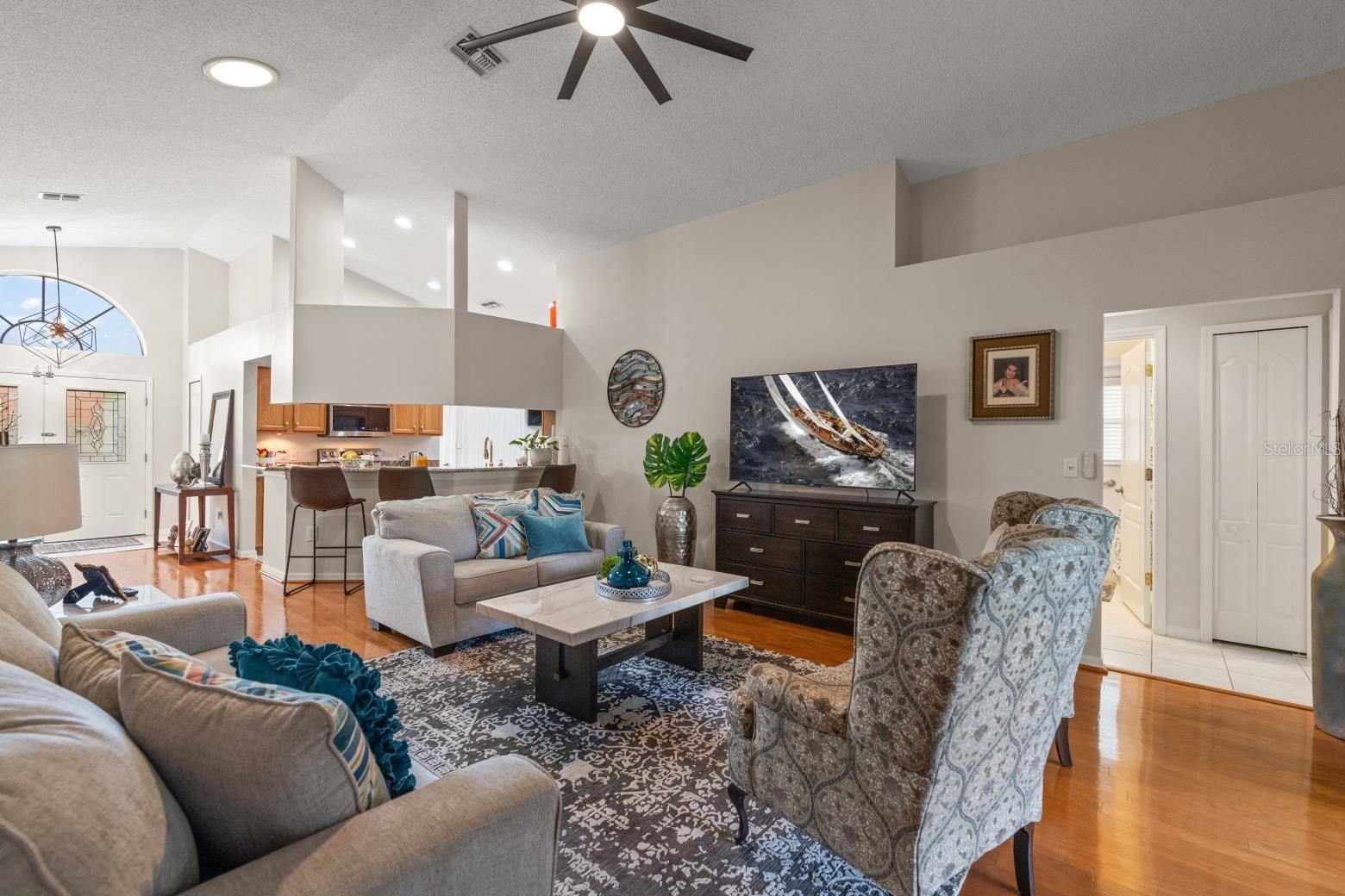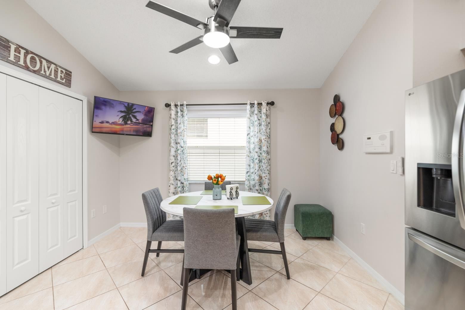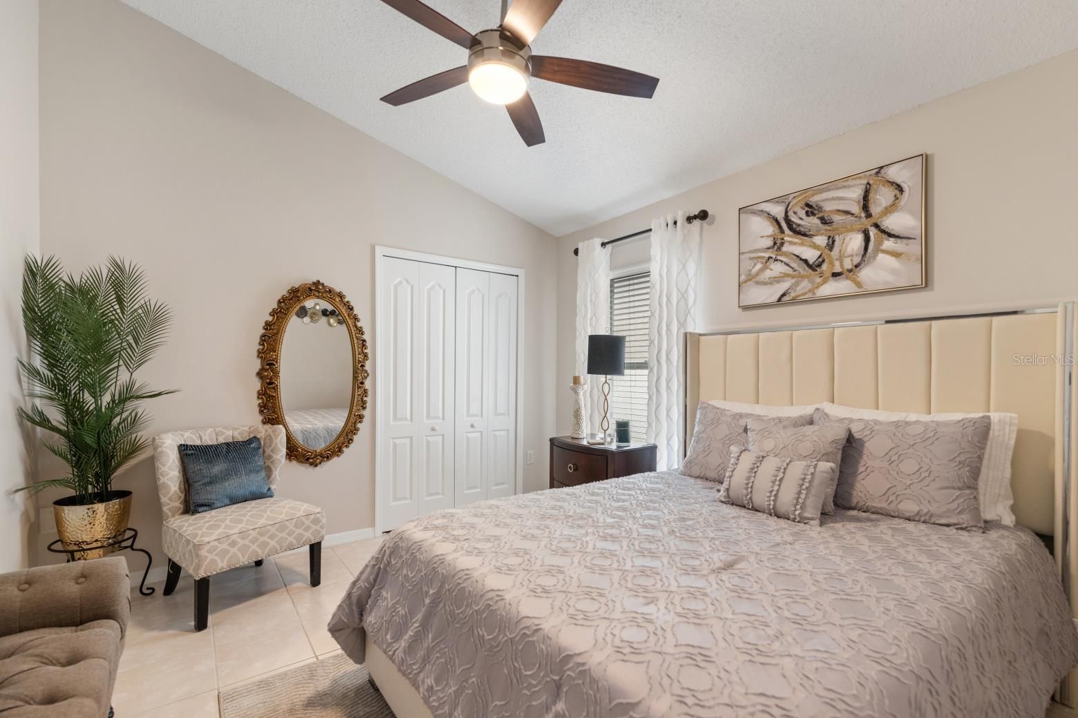 - Ceiling Fan(s), Eat-in Kitchen, High Ceilings, Thermostat, Walk-In Closet(s), Window Treatments