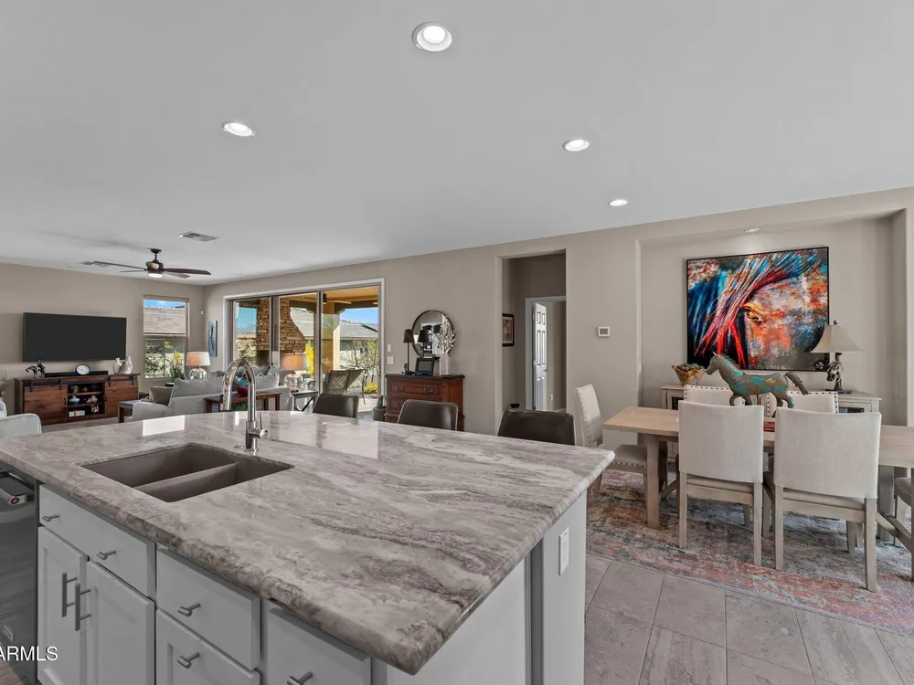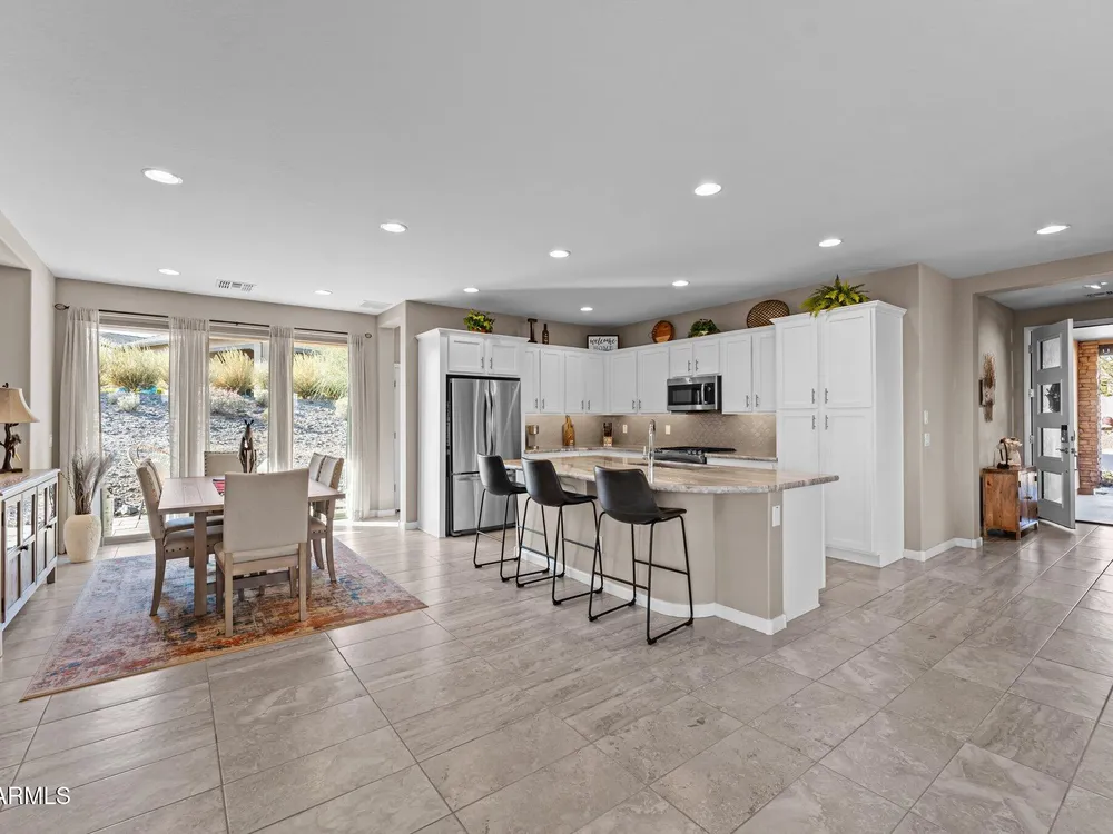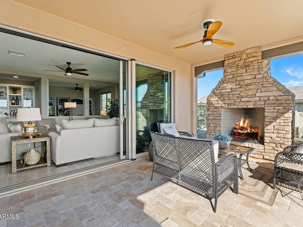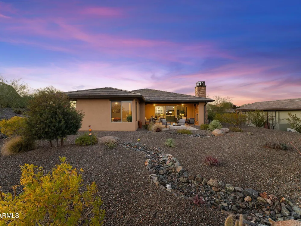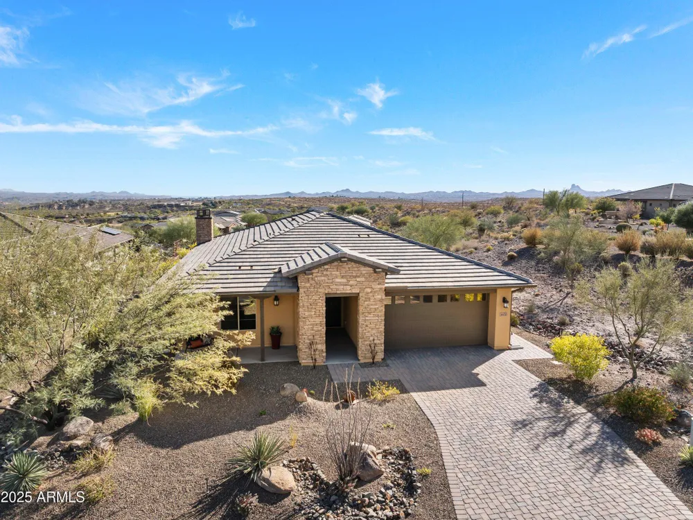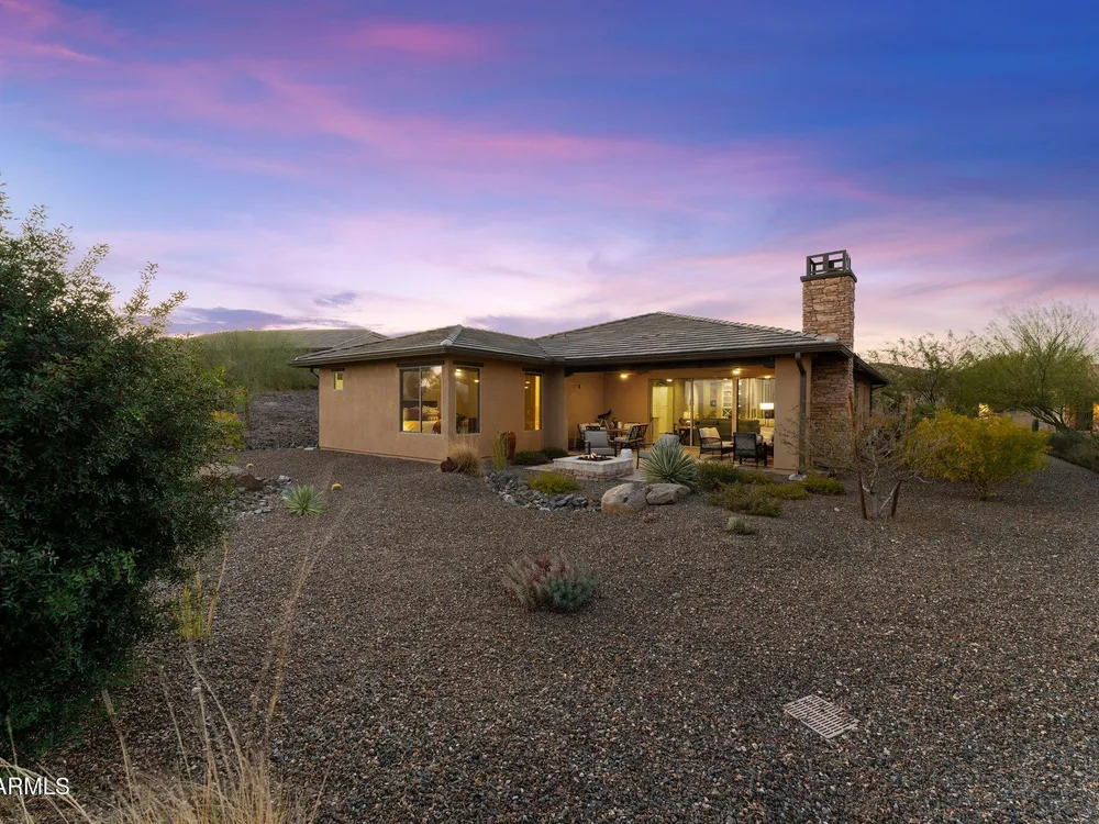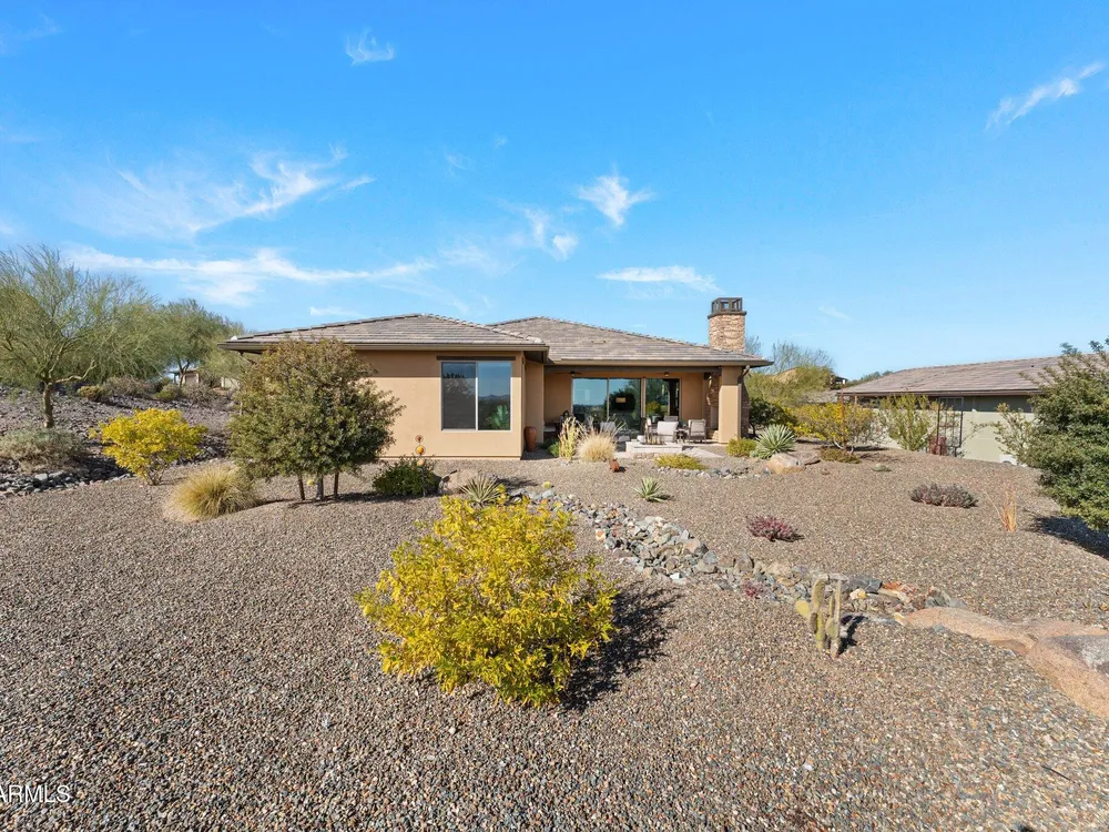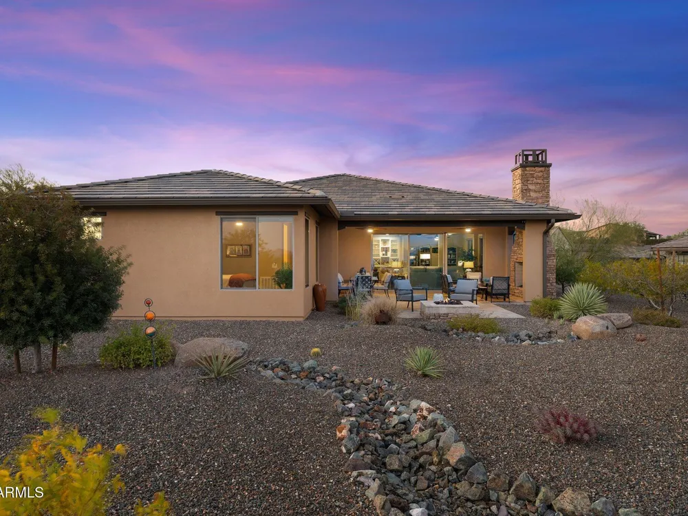 Welcome to 3670 Stampede Dr! Experience the ultimate blend of luxury and efficiency in this beautifully designed 2-bedroom, 2-bathroom home, set in the heart of Wickenburg Ranch. The open-concept floor plan flows effortlessly, anchored by a show-stopping 15-foot rolling wall of glass that blurs the line between indoor and outdoor living. A 115'' Vanishing Screen system further extends the utility and enjoyment of this glass wall feature. Whether you're entertaining or enjoying a quiet evening, this unique feature allows you to fully embrace the beauty of the surrounding desert and gorgeous mountain views from your great room. The kitchen is a culinary masterpiece, complete with high-end stainless steel appliances, a large island with seating, and sleek countertops. Adjacent to the kitchen, a dedicated wet bar area creates the perfect space for hosting gatherings with friends and family. In addition, the den provides flexible space that can be customized to suit your needs, whether as a library, home office, or hobby room. The custom wood & frosted glass barn door and retractable privacy screens extend your guest sleeping space options. Step outside to the expansive covered patio, where you'll find stunning desert and mountain views that create a peaceful backdrop for outdoor dining or relaxation. The 2-car insulated garage offers ample space for vehicles, storage, and has its own mini split AC system. With thoughtful upgrades throughout and a focus on indoor-outdoor living, this home is a perfect blend of comfort and sophistication.