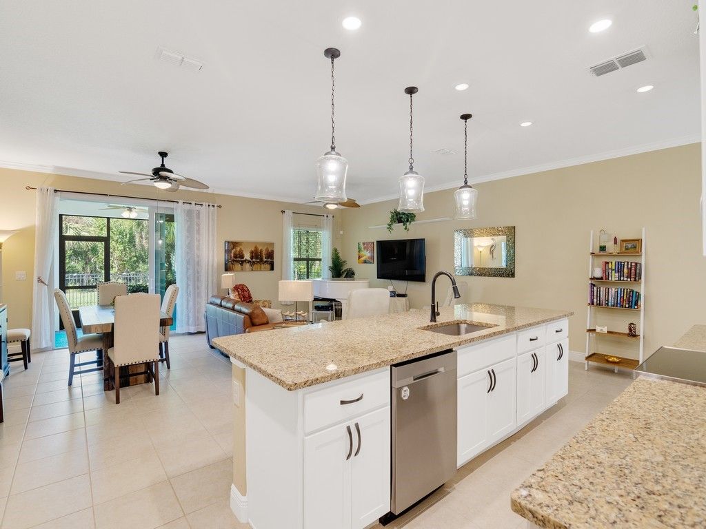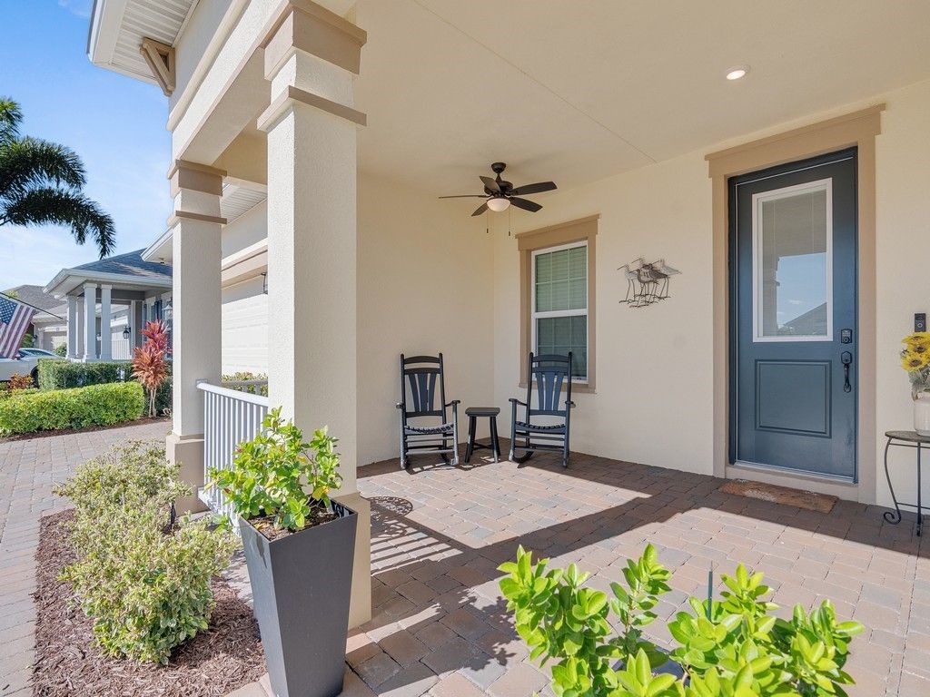 EXPERIENCE COMFORT & STYLE, IN AN ACTIVE 55+ GATED COMMUNITY LIVING AT ITS FINEST! Located in Harmony Reserve. This 4-bedroom, 3-bath home (two with private baths), a charming front porch, open living concept with a large granite kitchen island, spacious laundry room a beautiful screened in covered back lanai overlooking a lush fenced backyard. The oversized 2-car garage includes a workspace, overhead storage, and epoxy flooring. Full Impact glass windows and doors. Resort-style amenities, clubhouse, pool, fitness, pickleball and more. Near shopping, dining, and beaches.