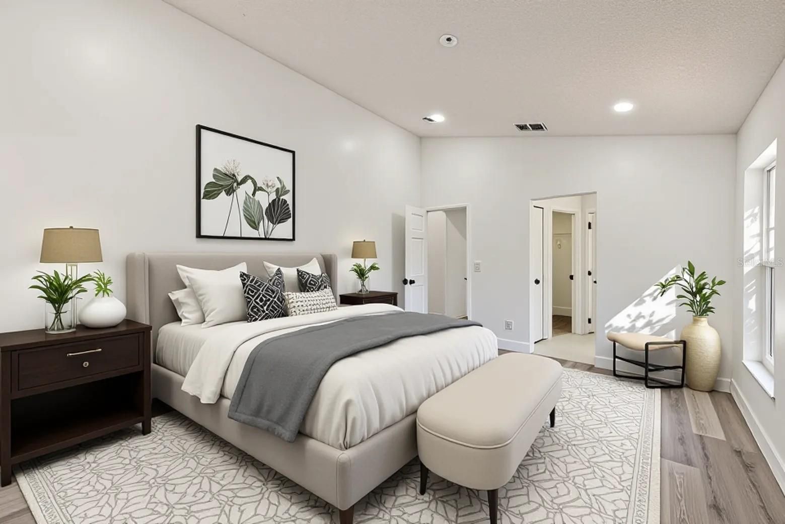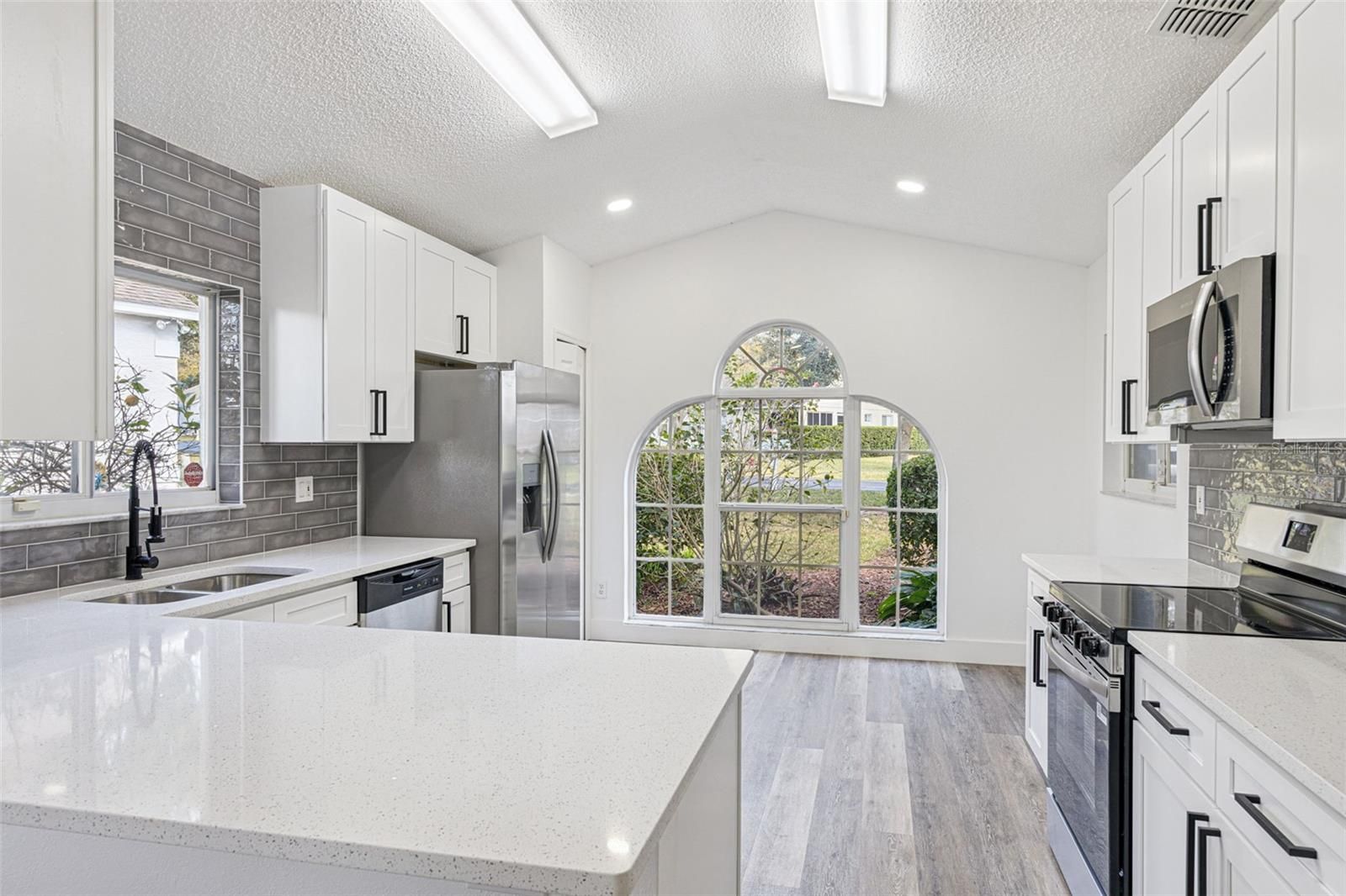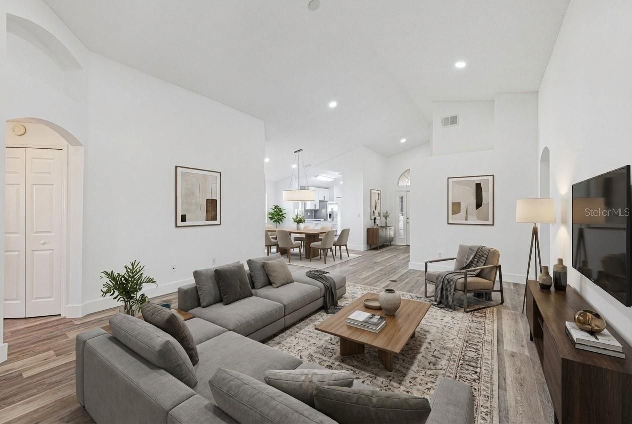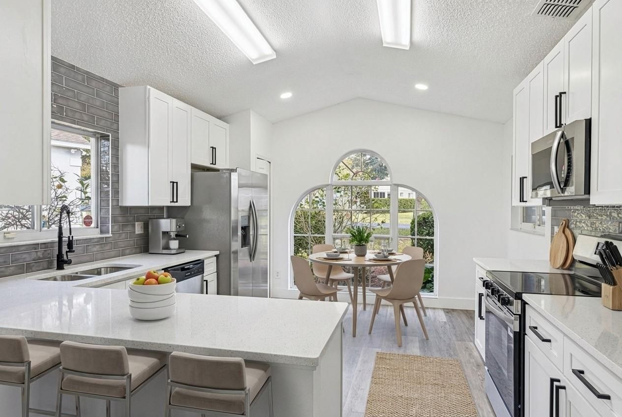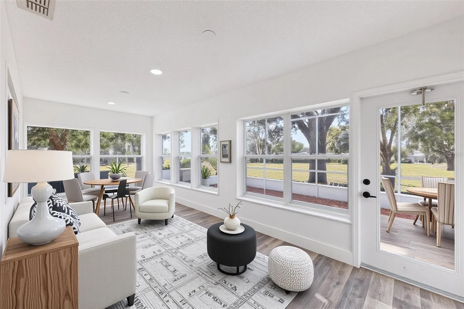 One or more photo(s) has been virtually staged. Welcome to 3674 Doune Way, located in the highly sought-after Kings Ridge, a guard-gated 55+ golf course community known for its active, resort-style lifestyle and low-maintenance living. This vibrant community offers an exceptional array of amenities including two clubhouses, two golf courses, heated community pools, fitness centers, tennis and pickleball courts, bocce, shuffleboard, saunas, hot tubs, and a full calendar of social activities. Residents enjoy scenic walking paths with beautiful views, golf cart-friendly streets, and even the convenience of driving your golf cart to the nearby Publix. All of this is just minutes from shopping, dining, and medical facilities along US-27. This fully renovated and updated home is ideally situated directly behind the golf course, offering peaceful views and easy access to step out and play. Inside, the home features a bright, open layout with a stunning kitchen showcasing luxury quartz countertops, brand-new stainless steel appliances, ample cabinetry, and a dedicated eat-in kitchen space. Waterproof luxury vinyl flooring throughout makes the home both stylish and pet-friendly, while the bathrooms feature elegant tile flooring. The primary bedroom is filled with natural light and features sliding glass doors leading into the Florida room, which can be closed off with curtains for privacy or left open to enjoy serene views of the golf course. In addition the ensuite bathroom offers an large walk-in closet with additional built-in linen and storage closets, providing ample space for organization, and has been tastefully renovated with modern lighting. The home offers multiple flexible living areas, including a BONUS/FLEX room, a sun-filled Florida room with abundant natural light and recessed lighting, and a thoughtfully designed Jack-and-Jill guest bathroom with dual access from the Florida room and guest bedroom for added convenience. An additional enclosed screened patio with sun netting provides even more space to relax, entertain, or enjoy the serene golf course setting. Major updates include a new AC (2024), new water heater (2025), and a newer roof (2018), offering peace of mind for years to come. The HOA covers lawn care, exterior paint, cable, internet, phone service, community pool, and all amenities, allowing for truly carefree living. This is a rare opportunity to enjoy resort-style living, beautiful golf course views, and an active, social lifestyle in one of Claremont’s most desirable senior communities.