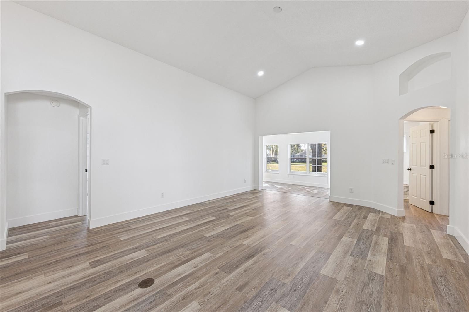 - Ceiling Fan(s), Eat-in Kitchen, High Ceilings, Kitchen/Family Room Combo, Living/Dining Room, Open Floorplan, Main Level Primary, Stone Counters, Walk-In Closet(s)