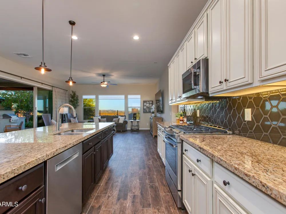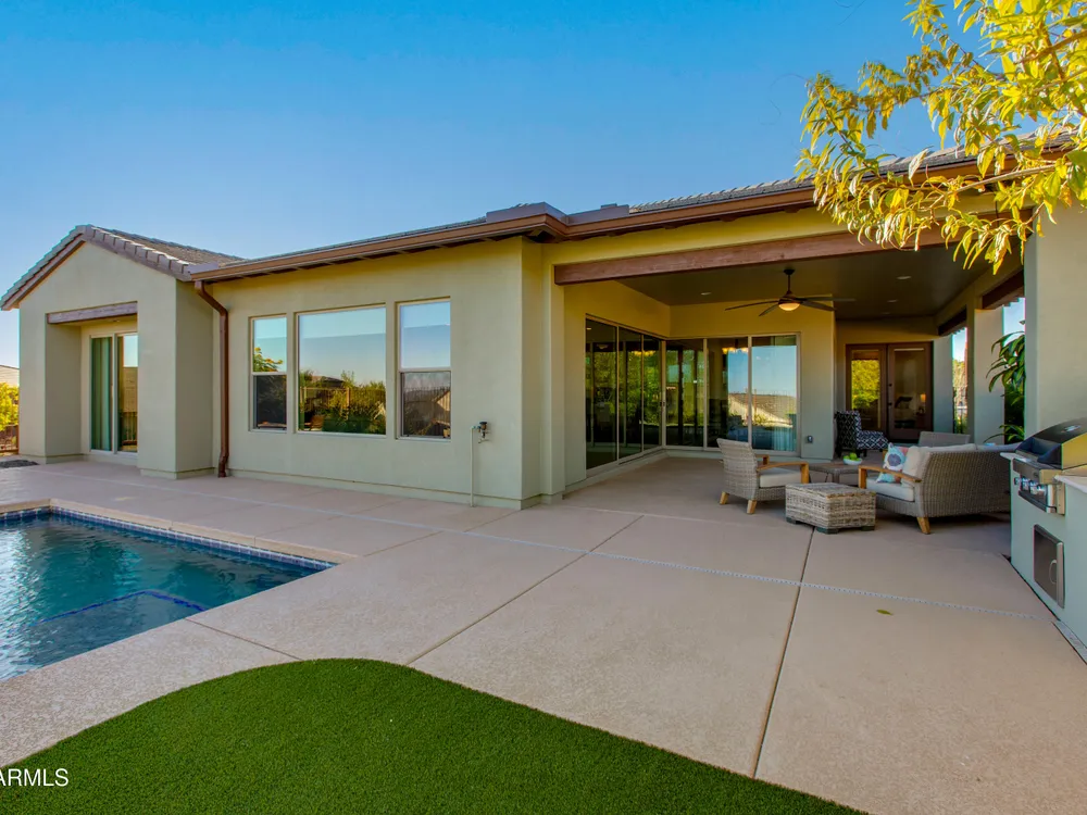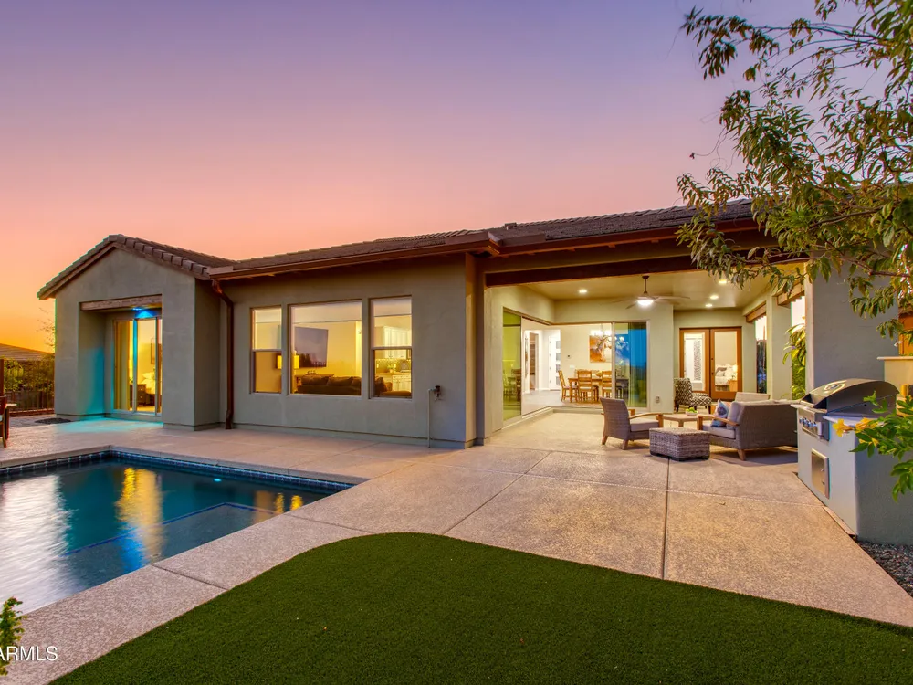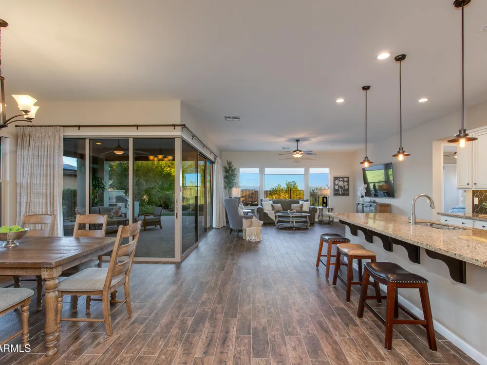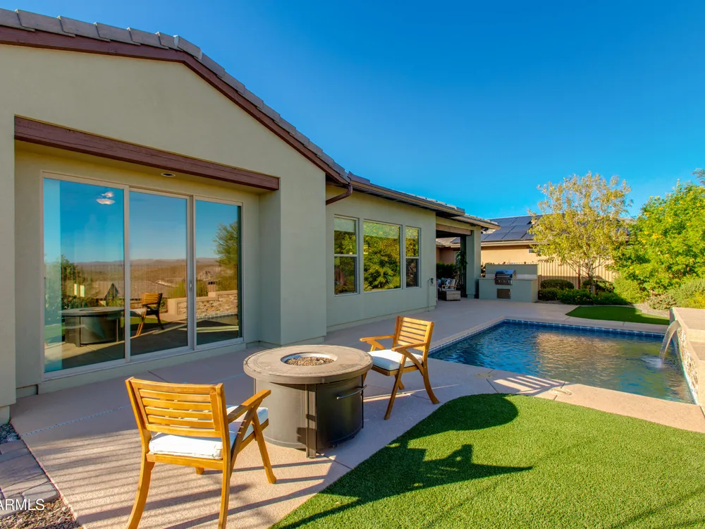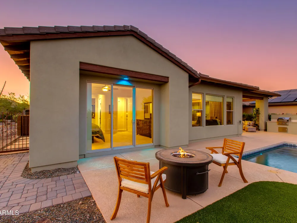 You've struck gold at 3675 Gold Ridge Road with this Latigo Model on an elevated corner lot! Luxury desert living where western charm meets refined elegance. Designed with an eye for timeless style, this home offers wide-open spaces with Casita for extra guests, top-tier finishes, and a seamless flow from indoors to outdoor living space. That is what Arizona living is all about. The heart of the home is a chef's dream kitchen, a grand island built for gathering, storytelling, and good ol' fashioned hospitality. Step out to the back patio through the sliding glass walls to throw a steak on the grill in your own slice of paradise. Mountain views, a resort-style pool with a calming water feature, all wrapped in professionally designed landscaping. With PAID OFF SOLAR, you'll stay cool & & efficient under the desert sun. And when you're ready to roam, Wickenburg Ranch has you covered with championship golf, fine dining, a full-service spa, top-notch fitness center, and a calendar full of lively community events. This is how the west is won nowadays!