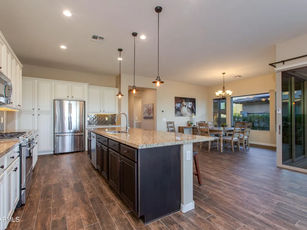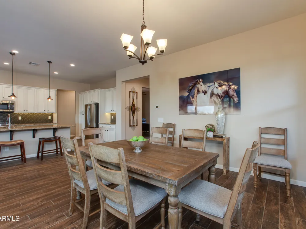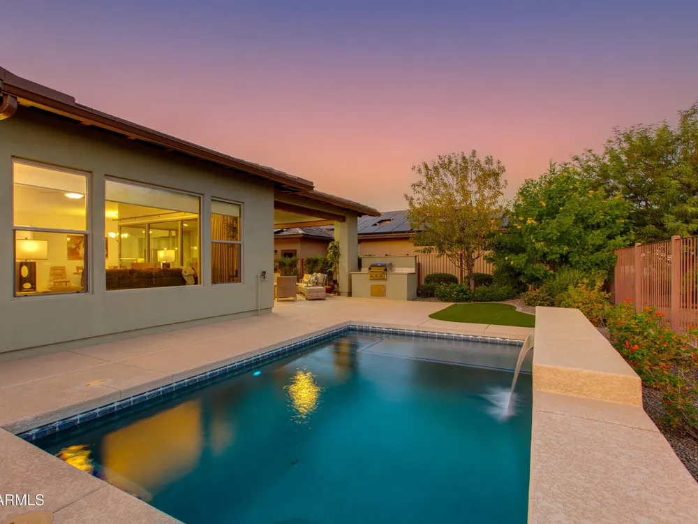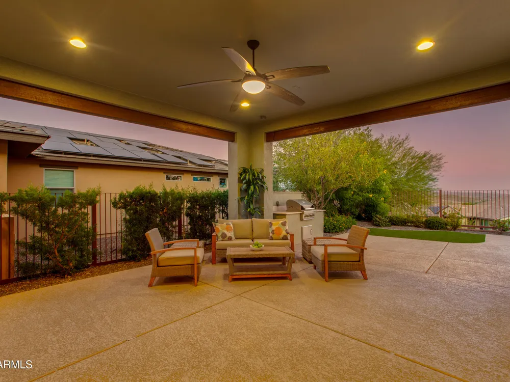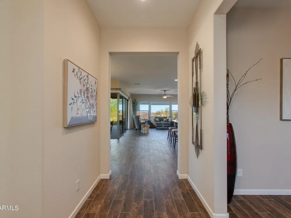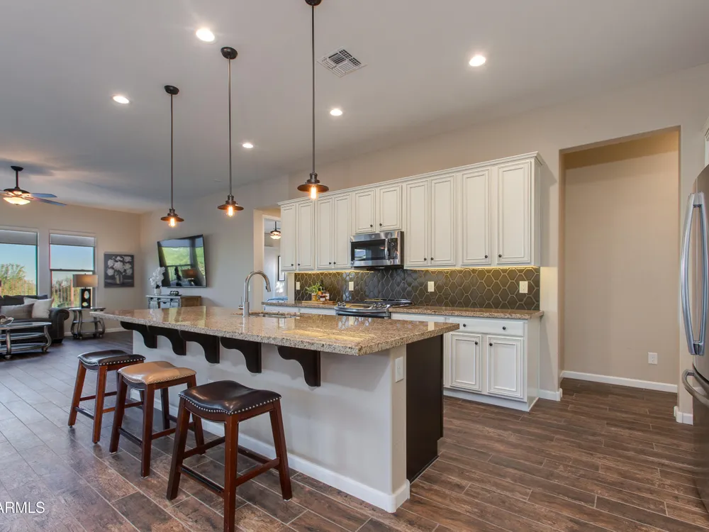 You've struck gold at 3675 Gold Ridge Road with this Latigo Model on an elevated corner lot! Luxury desert living where western charm meets refined elegance. Designed with an eye for timeless style, this home offers wide-open spaces with Casita for extra guests, top-tier finishes, and a seamless flow from indoors to outdoor living space. That is what Arizona living is all about. The heart of the home is a chef's dream kitchen, a grand island built for gathering, storytelling, and good ol' fashioned hospitality. Step out to the back patio through the sliding glass walls to throw a steak on the grill in your own slice of paradise. Mountain views, a resort-style pool with a calming water feature, all wrapped in professionally designed landscaping. With PAID OFF SOLAR, you'll stay cool & & efficient under the desert sun. And when you're ready to roam, Wickenburg Ranch has you covered with championship golf, fine dining, a full-service spa, top-notch fitness center, and a calendar full of lively community events. This is how the west is won nowadays!